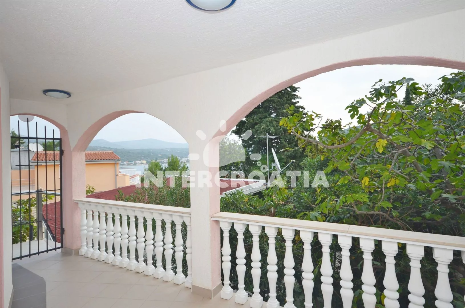 Apartmánový dům s terasou s výhledem na blízkou zátoku (50 m), přímo ve městě Rogoznica.