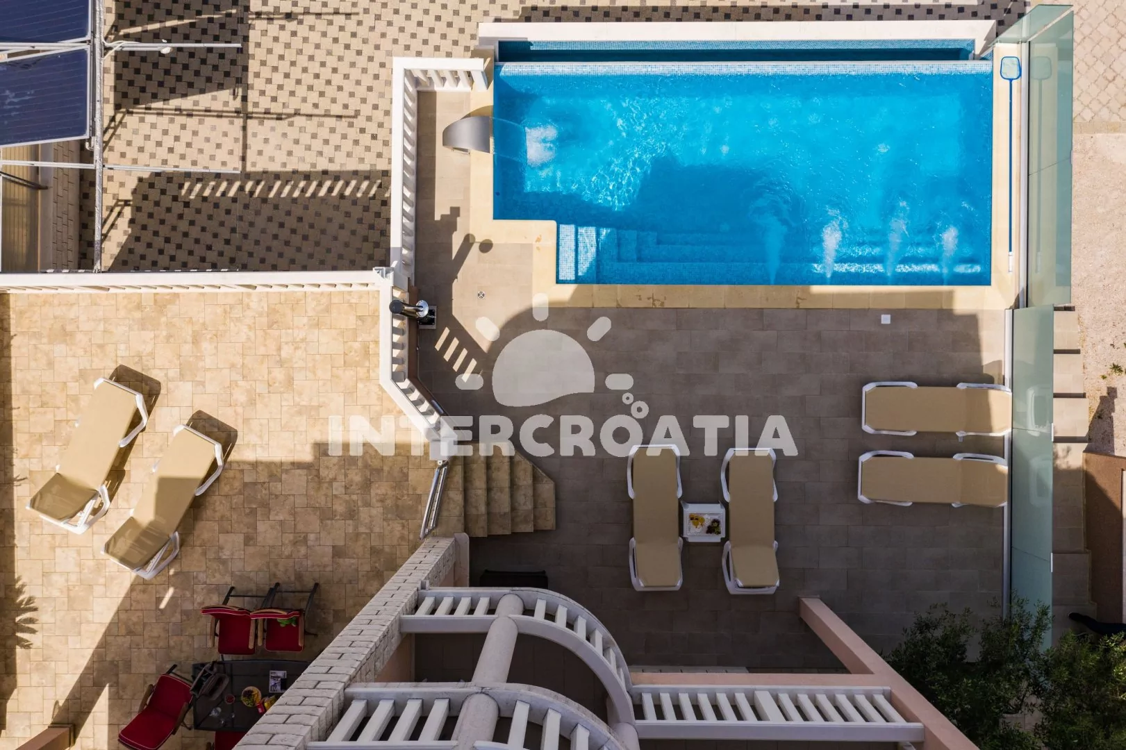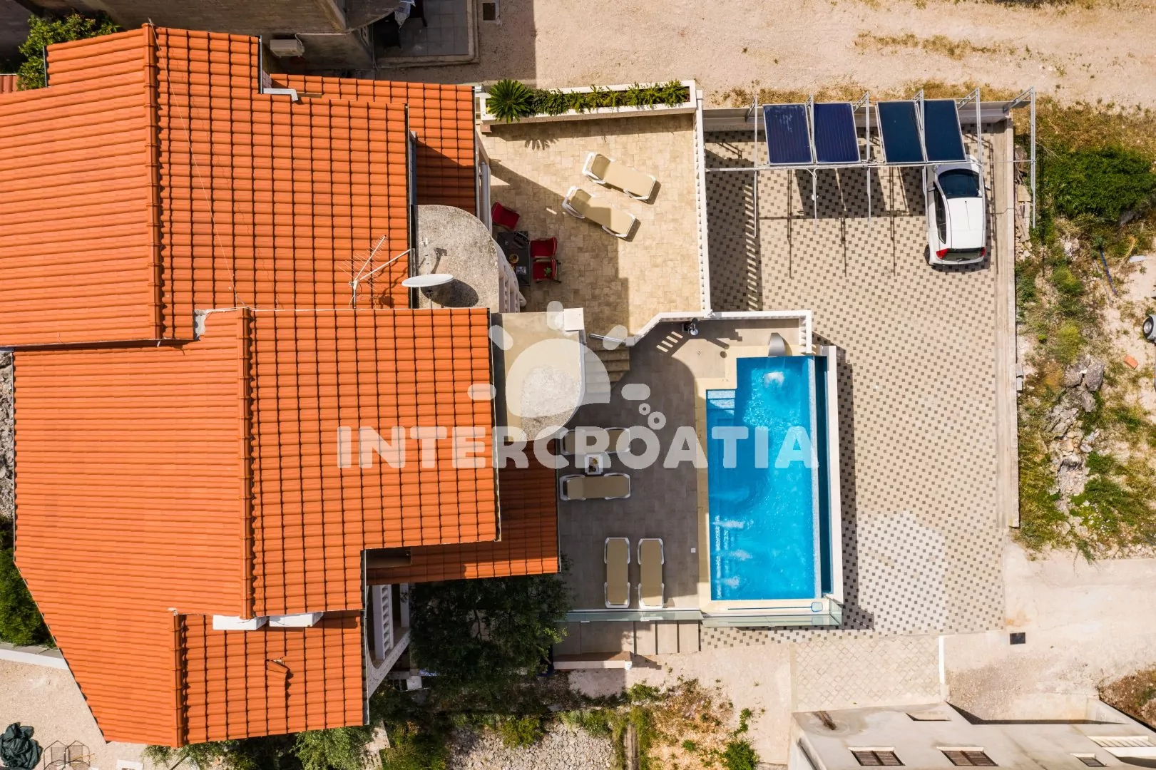 Velmi hezky zařízená vila s bazénem, terasou se zahradní kuchyní, grilem, udírnou a venkovním posezením. Vila nabízí dostatek možností k relaxaci ať už u bazénu na lehátkách, nebo pouze pár kroků na oblázkové pláži s nádherně čistým mořem. Parkovací místa pro automobily přímo u vily.