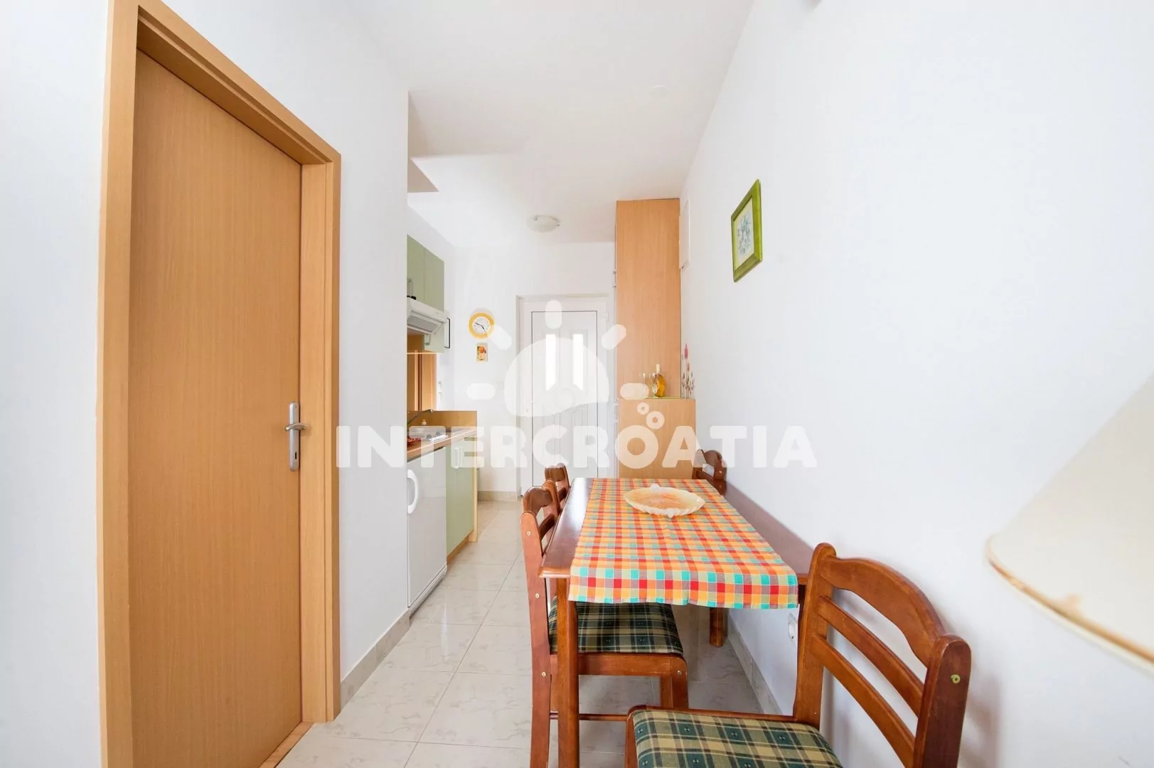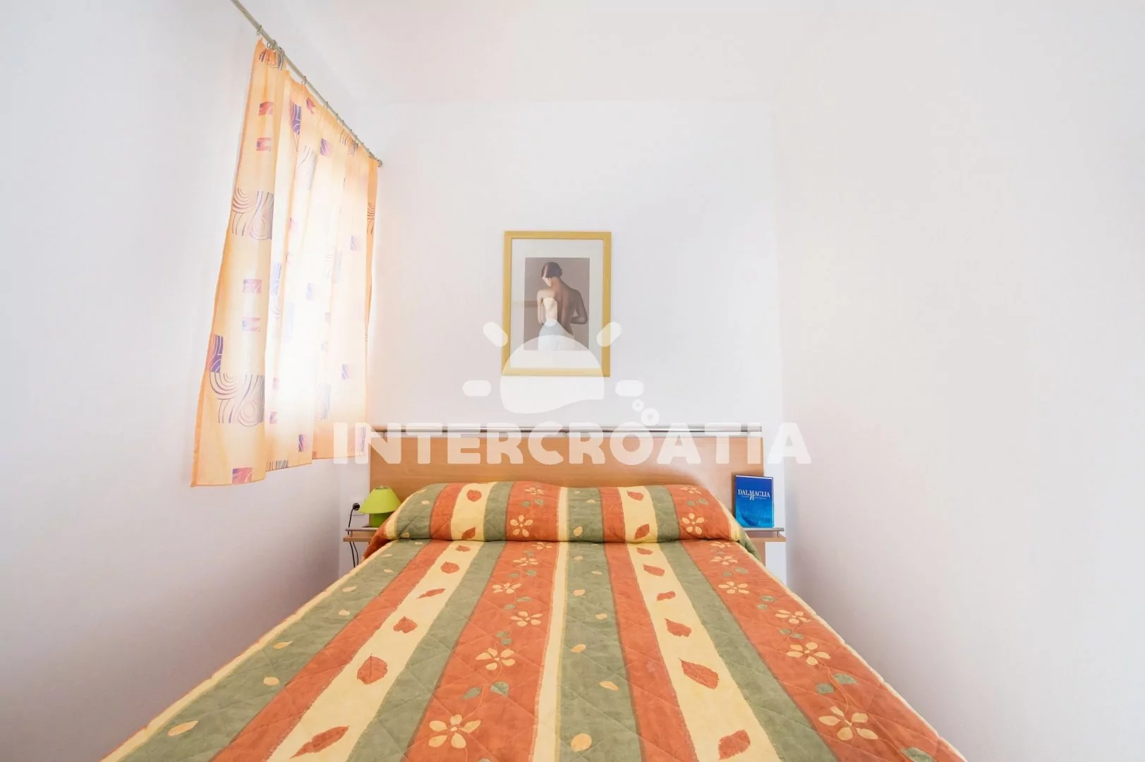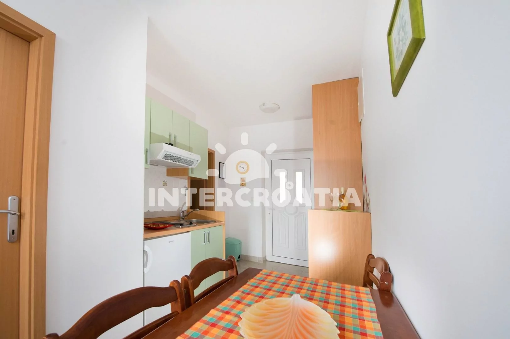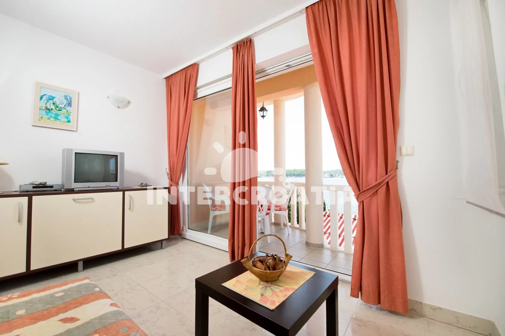 Apartmán s vlastním balkonem a výhledem na moře se nachází v prvním patře vily a je vhodný pro 2 až 4 osoby. Obývací pokoj je spojený s kuchyní. Kuchyňská linka je vybavena dvouplotýnkovým sporákem, digestoří, myčkou na nádobí, rychlovarnou konvicí, nádobím a lednicí s mrazákem. Obývací pokoj s jídelním stolem pro 4 osoby, pohovkou (rozložitelná na extra lůžko pro 2 osoby), televizí se satelitním programem, klimatizací a vstupem na balkon. Ložnice s jedním dvoulůžkem. Koupelna se sprchovým koutem, umyvadlem a wc. Hostům je k dispozici parkování u objektu zdarma.