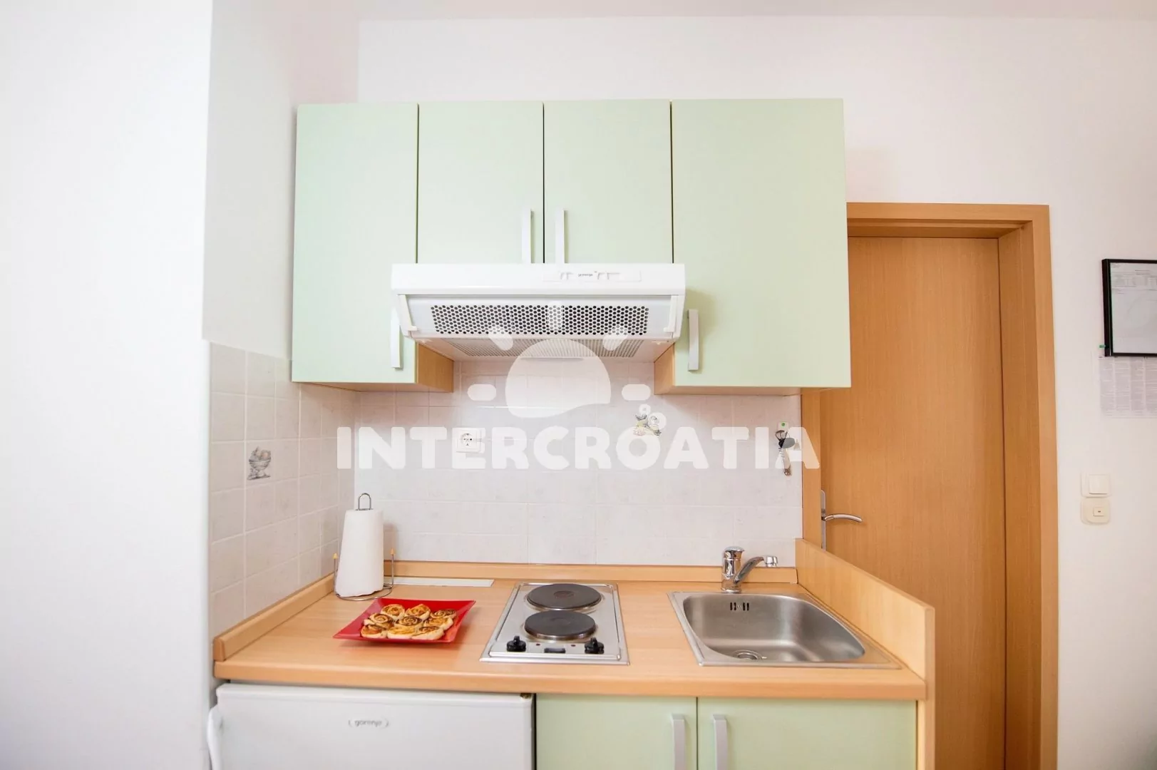 Apartmán s vlastním balkonem a výhledem na moře se nachází v prvním patře vily a je vhodný pro 2 až 4 osoby. Obývací pokoj je spojený s kuchyní. Kuchyňská linka je vybavena dvouplotýnkovým sporákem,…
