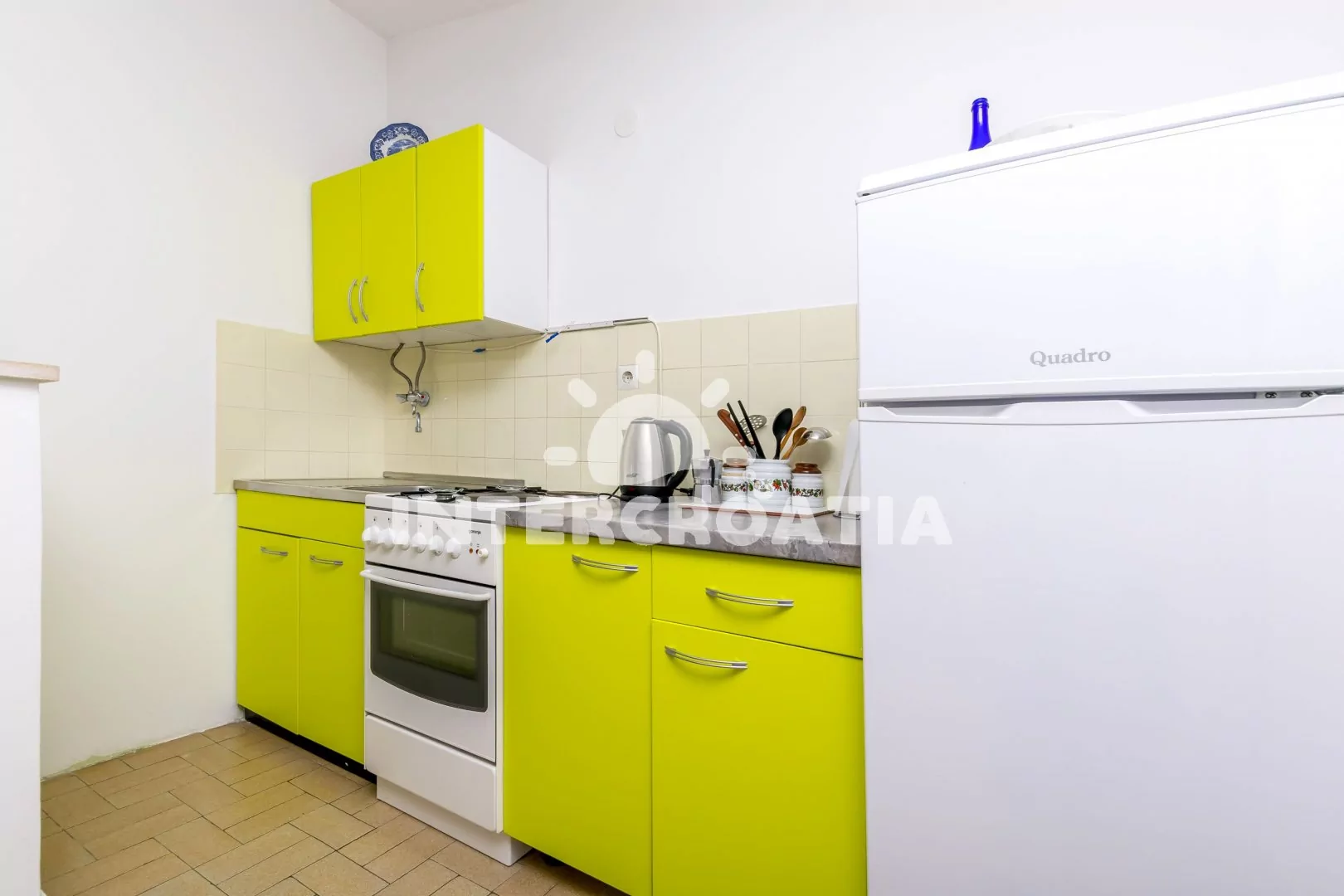 Apartmán (35 m2) s výhledem na moře a sdílenou terasou, se nachází v 1. patře domu a je vhodný pro 2 až 3 osoby. Obývací pokoj je spojený s kuchyní. Kuchyňská linka je vybavena varnou deskou, troubou…