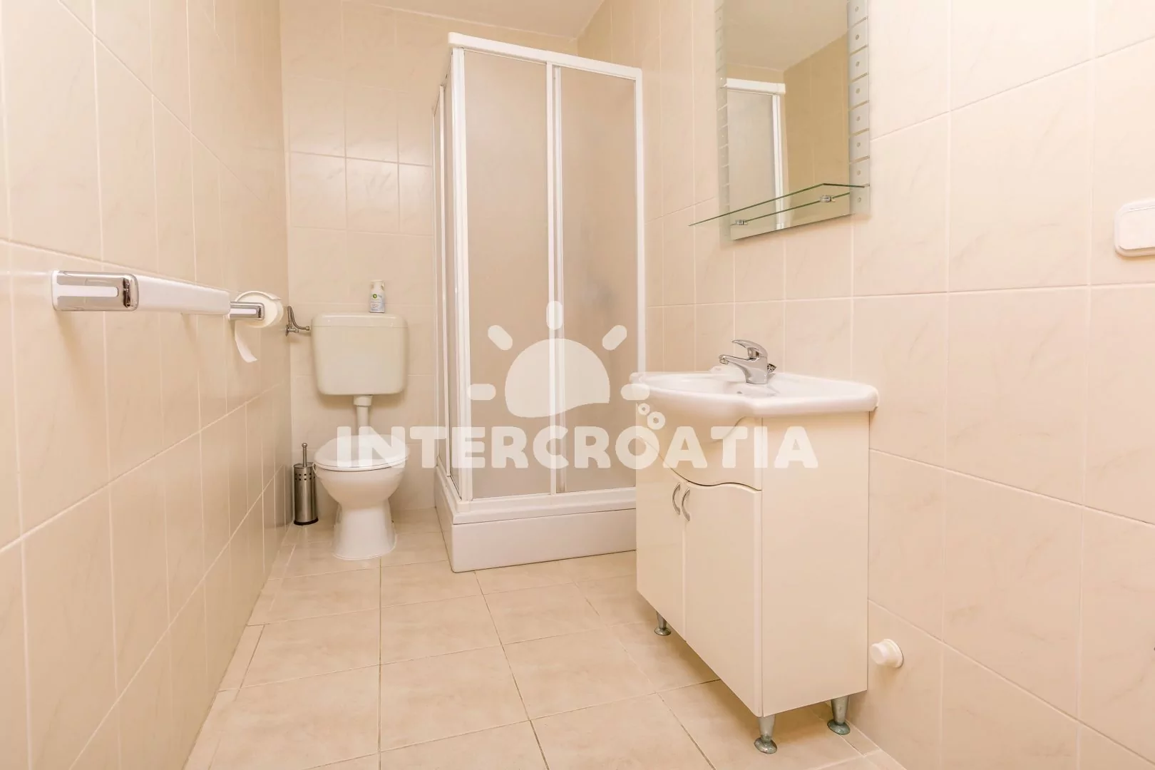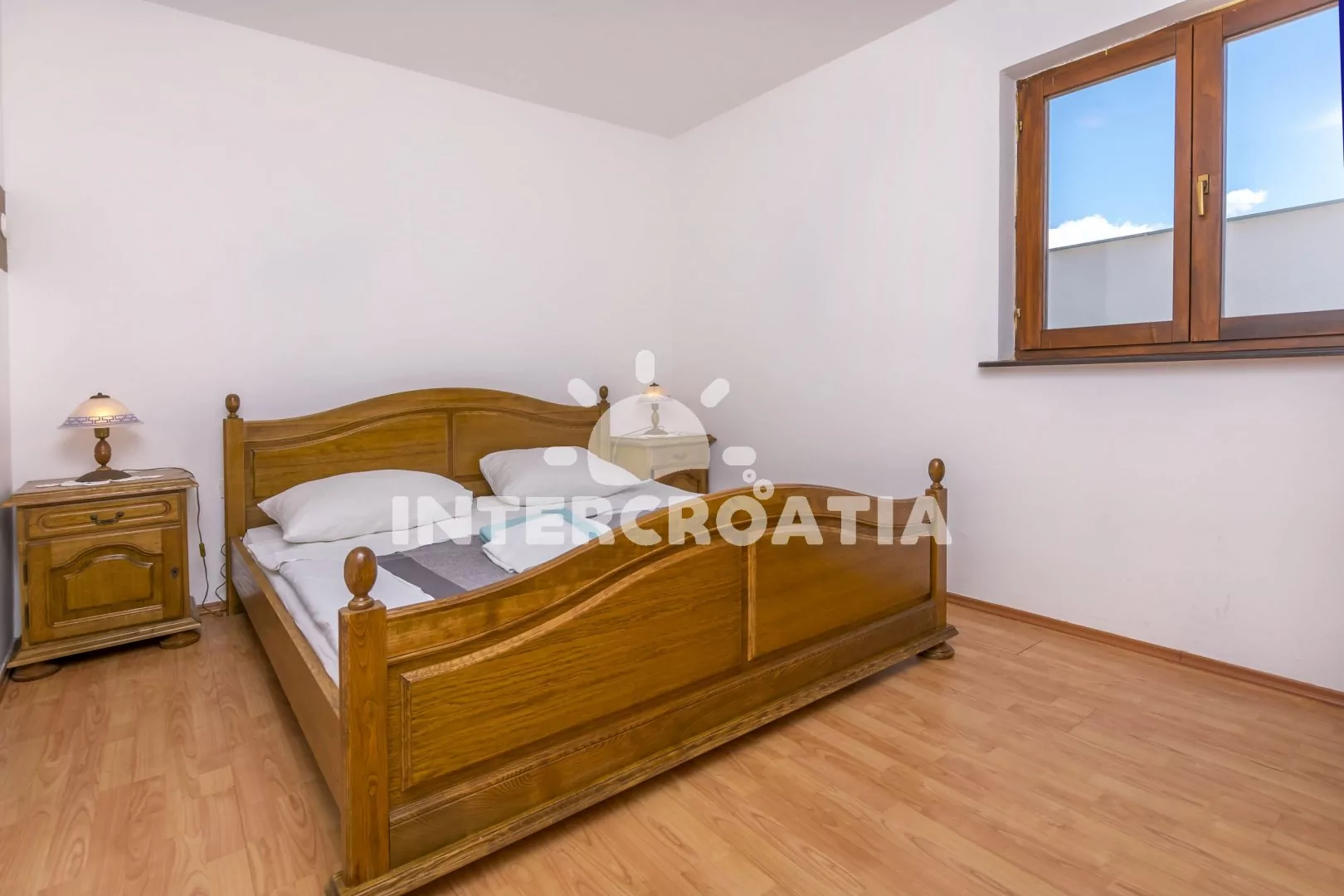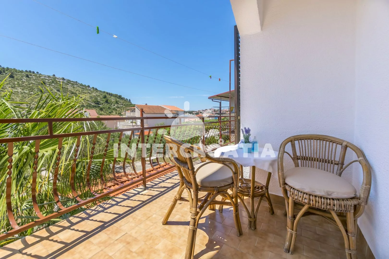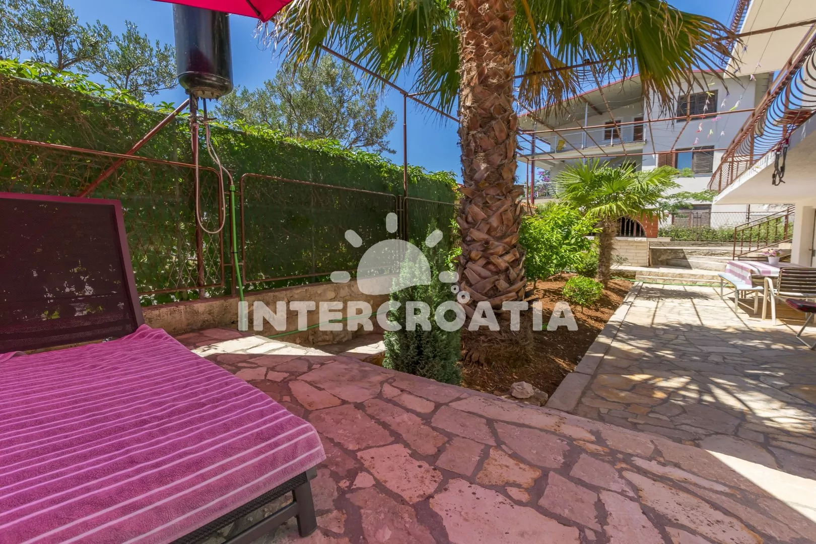 Apartmán (36 m2) se sdíleným balkonem, výhledem na moře a do klidné ulice se nachází v 1. patře domu a je vhodný pro 2 až 4 osoby. Obývací pokoj je spojený s kuchyní. Kuchyňská linka je vybavena sporákem s troubou, digestoří, rychlovarnou konvicí, nádobím a lednicí s mrazákem. Obývací pokoj s jídelním stolem pro 4 osoby, pohovkou (rozložitelná na extra lůžko pro 2 osoby, televizí se satelitním programem, klimatizací a vstupem na balkon. Ložnice s dvoulůžkem. Koupelna se sprchovým koutem, umyvadlem a wc. Hostům je k dispozici parkování u objektu zdarma.