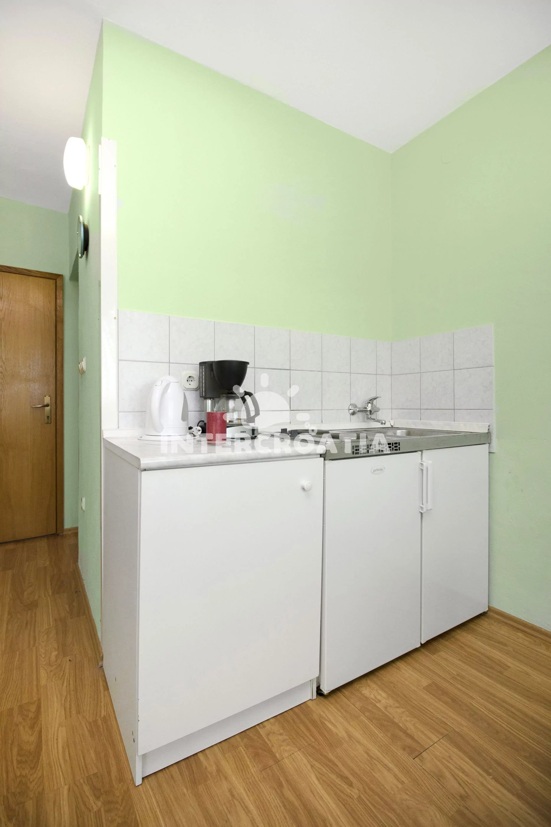 Vzdálenosti: Moře a oblázková pláž 30 m, supermarket, veřejná doprava 500 m, centrum, restaurace, bar, směnárna, půjčovna cyklistických kol 1,5 km, ambulance, lékárna 1,7 km, přístav 2 km, diskotéka, čerpací stanice 8 km, muzeum 25 km, letiště 30 km, trajekt 35 km.