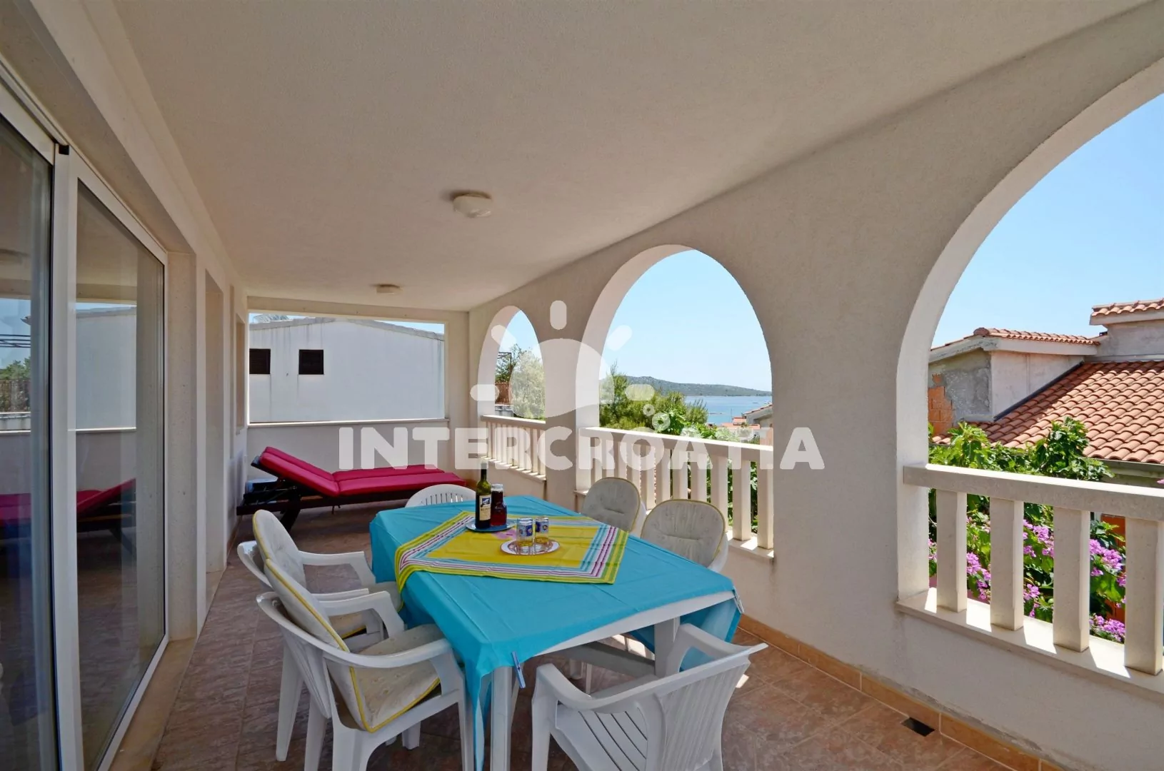 Skvelá terasa. Pekná priestranná terasa s pekným výhľadom na more, milí a ústretoví domáci, kľudné a tiché miesto neďaleko centra, na výber je niekoľko rôznych pláží, všetky sú čisté. Najbližšia pláž cca 200m z betónových platní nám veľmi nevyhovovala. Štrkové pláže sú vzdialené cca 400 - 800 m.