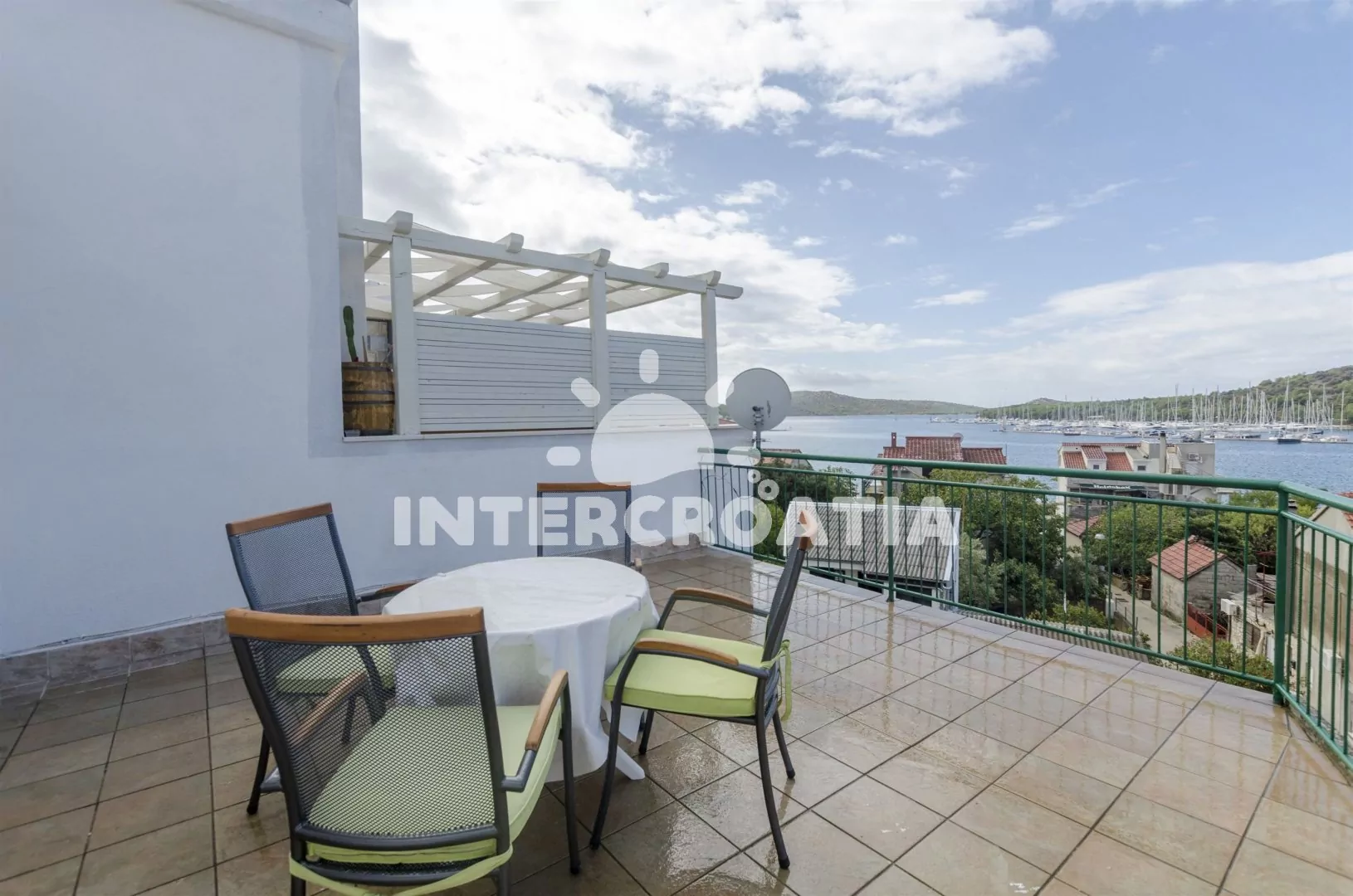 Apartmán (50 m2) s terasou, venkovním posezením a výhledem na moře se nachází ve 3. patře domu a je vhodný pro 2 až 4 osoby. Obývací pokoj je spojený s kuchyní. Kuchyňská linka je vybavena sporákem s troubou, rychlovarnou konvicí, nádobím a lednicí s mrazákem. Obývací pokoj s jídelním stolem pro 4 osoby, sedací soupravou s pohovkou (rozložitelná na extra lůžko pro 2 osoby), televizí, klimatizací a vstupem na terasu. Ložnice s dvoulůžkem. Koupelna se sprchovým koutem, umyvadlem a wc. Hostům je k dispozici parkování u objektu zdarma.
