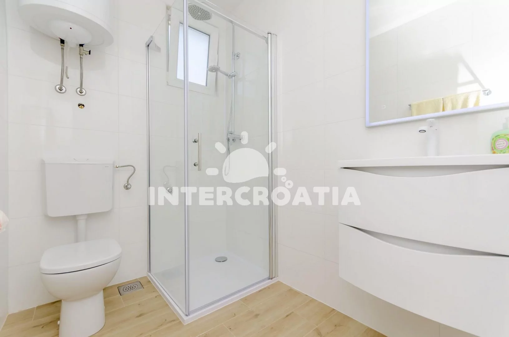 Krásný apartmán přímo na pláži. Prostorná terasa s nádherným výhledem a výborným sezením. K dispozici byla i lehátka na plaz. Plaz strková a čistá s pozvolným vstupem. Moře průzračně. Na pláži malý bufet s palačinkami, pizzou, nápoji... Menší obchod cca 10 min pesí. Velký obchod autem 3 min. Do Rogoznice je to peso cca 40 min., autem par minut.