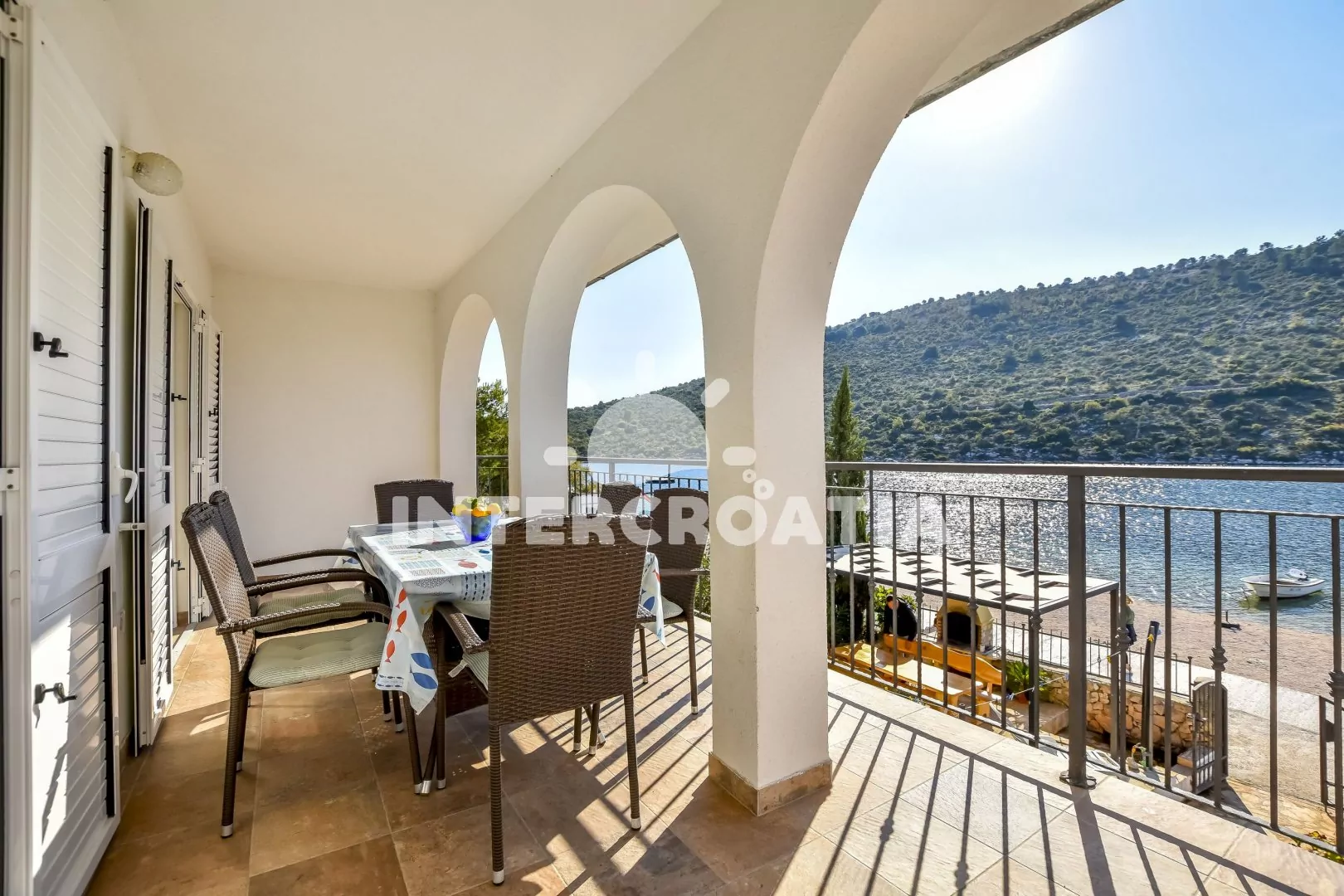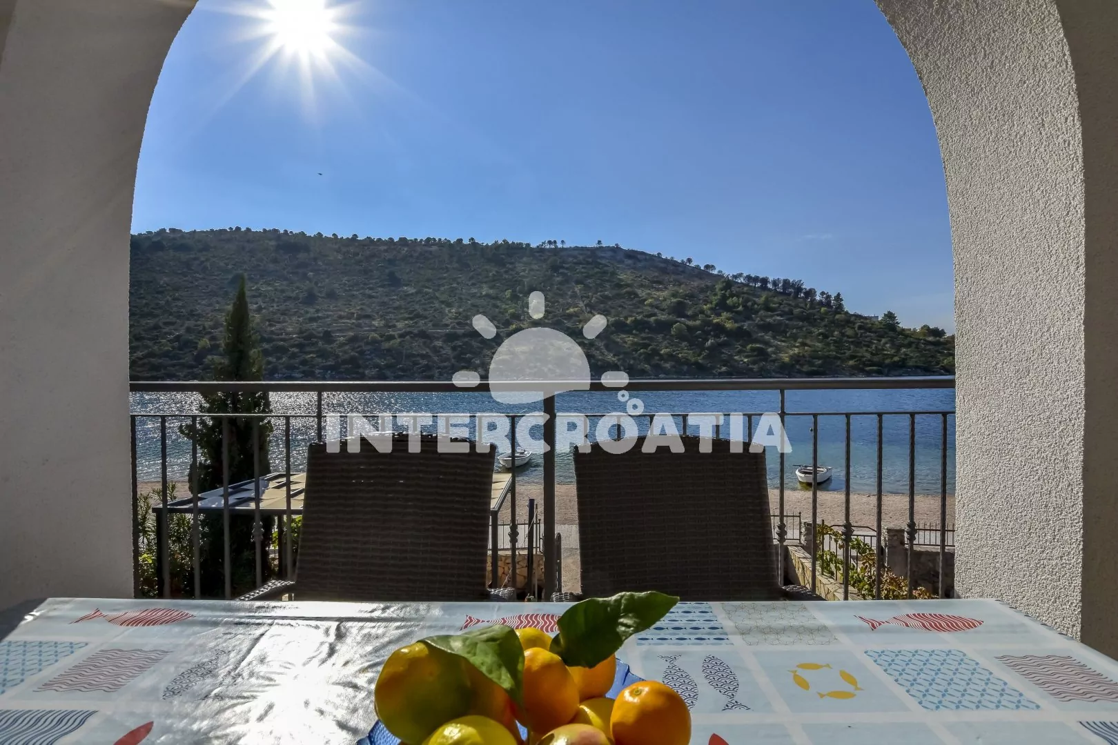 Apartmán přímo u moře (zátoka). s lehátky a sprchou hned za bránou (velmi užitečné). Velmi milí hostitelé, pěkná terasa, i když v sezóně na pláži trochu hlučná, hned vedle malého plážového baru, je to trochu nepohodlné, stojí za to doporučit