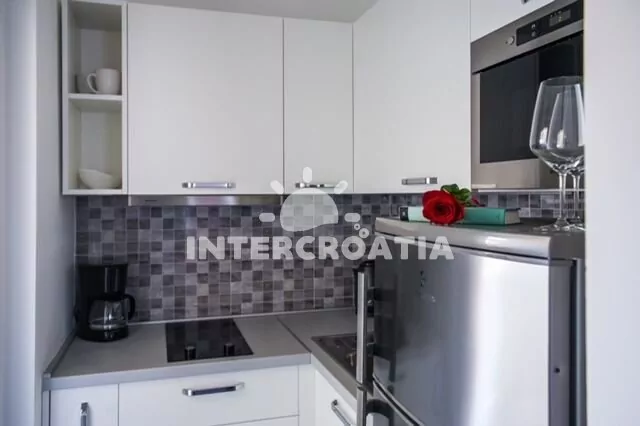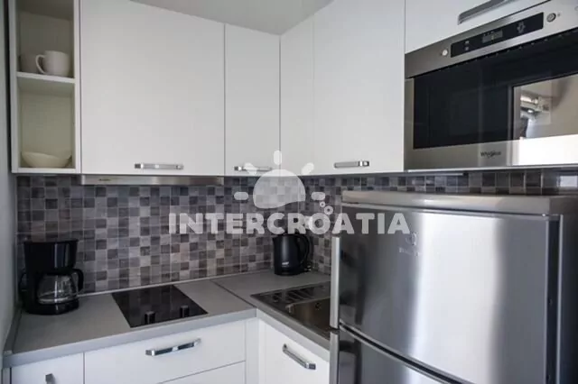 Apartmán (32 m2) s balkonem a výhledem do dvora se nachází v 1. patře domu. Apartmán má 1 ložnici a je vhodný pro 2 osoby. Obývací pokoj je spojený s kuchyní. Kuchyňská linka je vybavena dvouplotýnkovou varnou deskou, digestoří, mikrovlnnou troubou, rychlovarnou konvicí, kávovarem, nádobím a lednicí s mrazákem. Obývací pokoj s jídelním stolem, křeslem, televizí se satelitním programem, klimatizací a vstupem na balkon. Ložnice s jedním dvoulůžkem. Koupelna se sprchovým koutem, umyvadlem, fénem a wc. Hostům je k dispozici parkování u objektu zdarma.