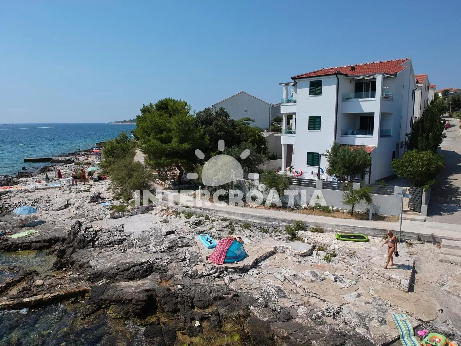Rogoznica leží 38 km od historického Šibeniku a 26 km od Trogiru. Vybrané ubytování má unikátní výhled na azurové moře. Pěšky přijdete po 5 m od apartmánu k moři a skalnaté-betonové pláži.