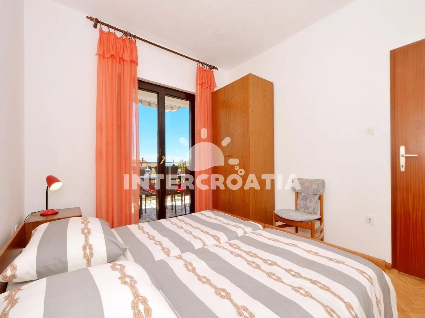 Apartmán (60 m2) s balkonem, venkovním posezením, výhledem do dvora a na moře se nachází v 1. patře domu. Apartmán má 2 ložnice a je vhodný pro až 4 osoby. Obývací pokoj je spojený s kuchyní.…
