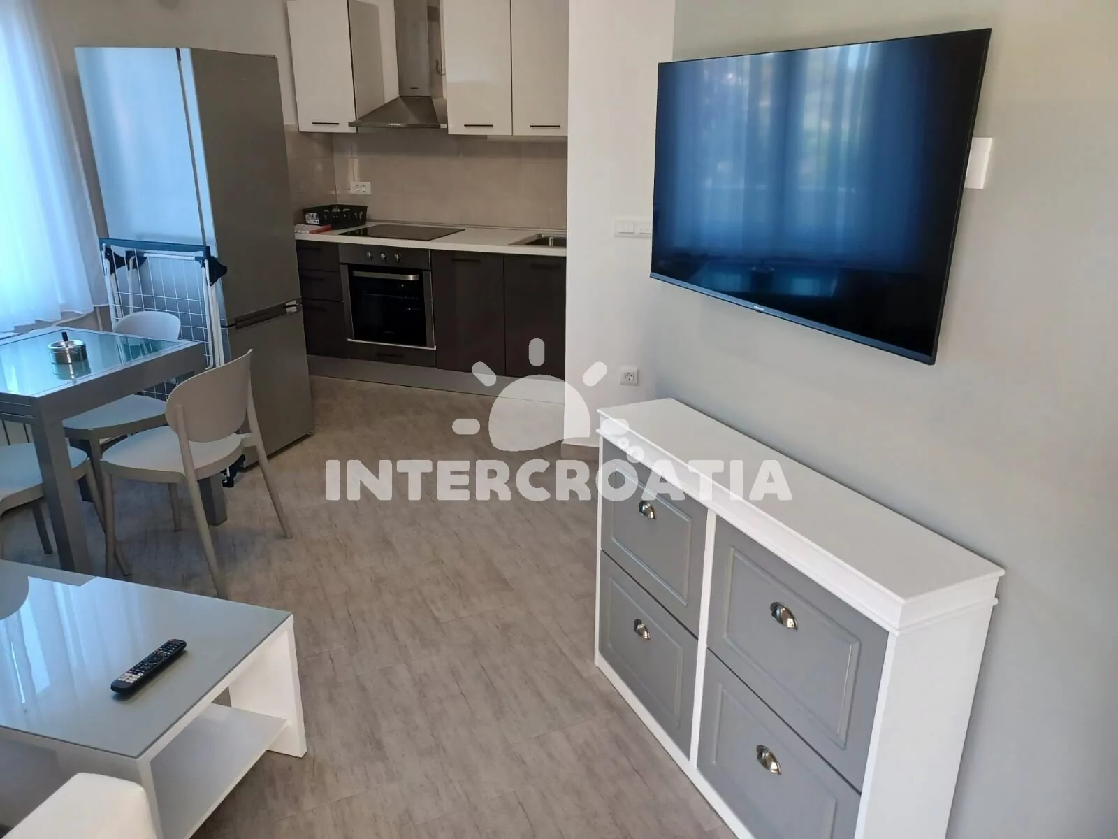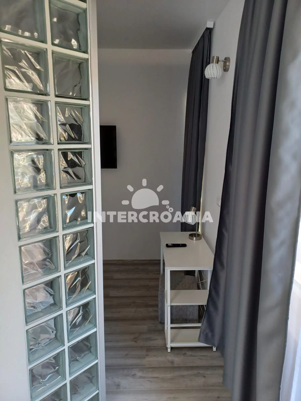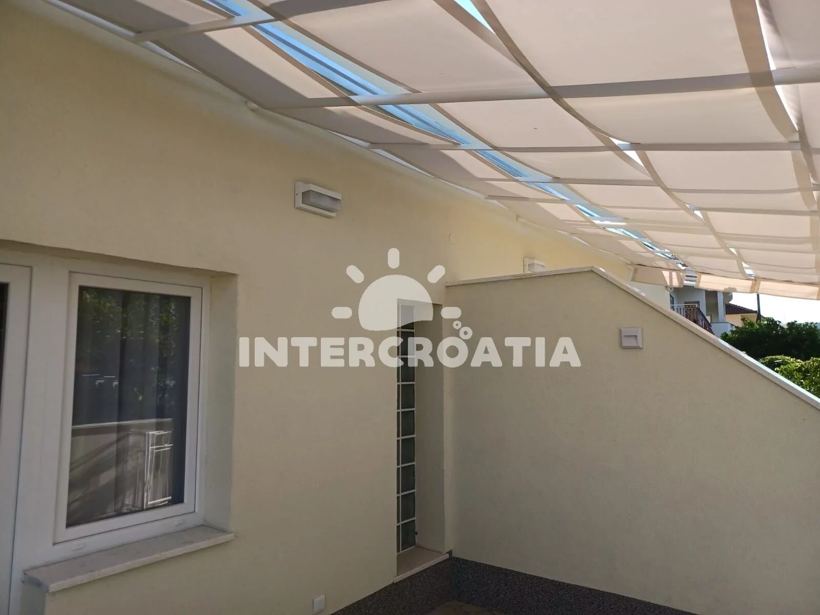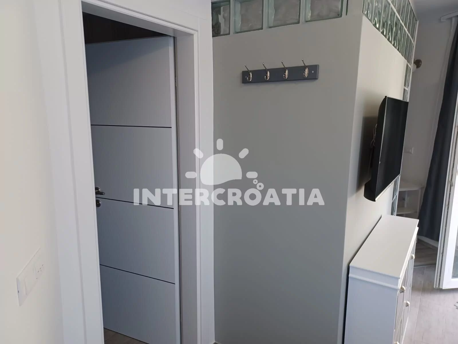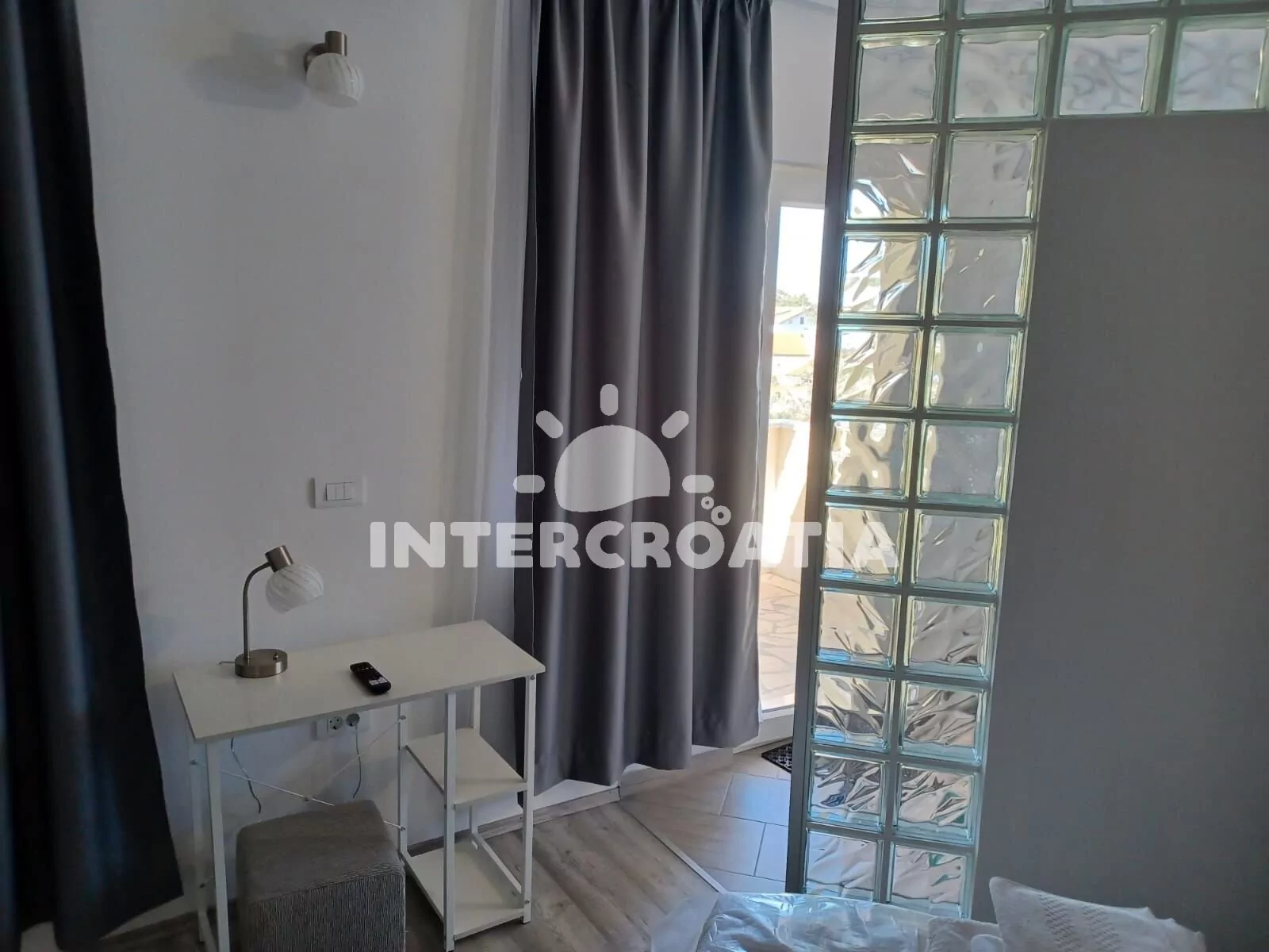 Apartmán (35 m2) s terasou a částečným výhledem na moře se nachází v přízemí domu. Apartmán má 1 ložnici a je vhodný pro 2 až 3 osoby. Obývací pokoj je spojený s kuchyní. Kuchyňská linka je vybavena sklokeramickou varnou deskou, digestoří, vestavěnou troubou, myčkou na nádobí, mikrovlnnou troubou, rychlovarnou konvicí, nádobím a lednicí s mrazákem. Obývací pokoj s jídelním stolem, pohovkou (rozložitelná na extra lůžko pro 1 osobu), televizí se satelitním programem a klimatizací. Ložnice s jedním dvoulůžkem. Koupelna se sprchovým koutem, umyvadlem, pračkou, fénem a wc. Hostům je k dispozici parkování u objektu zdarma.