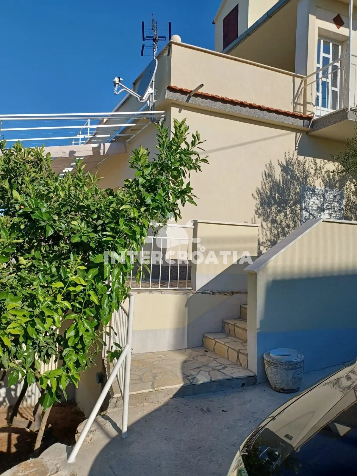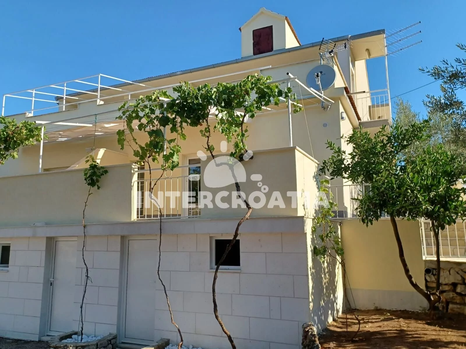 Vzdálenosti: Moře a oblázková pláž 250 m, veřejná doprava 100 m, market 50 m, centrum, restaurace, bar, pošta, směnárna, ambulance, lékárna a přístav 2 km, banka, čerpací stanice, diskotéka 9 km, muzeum 25 km, letiště (Split) 30 km, trajekt 35 km.