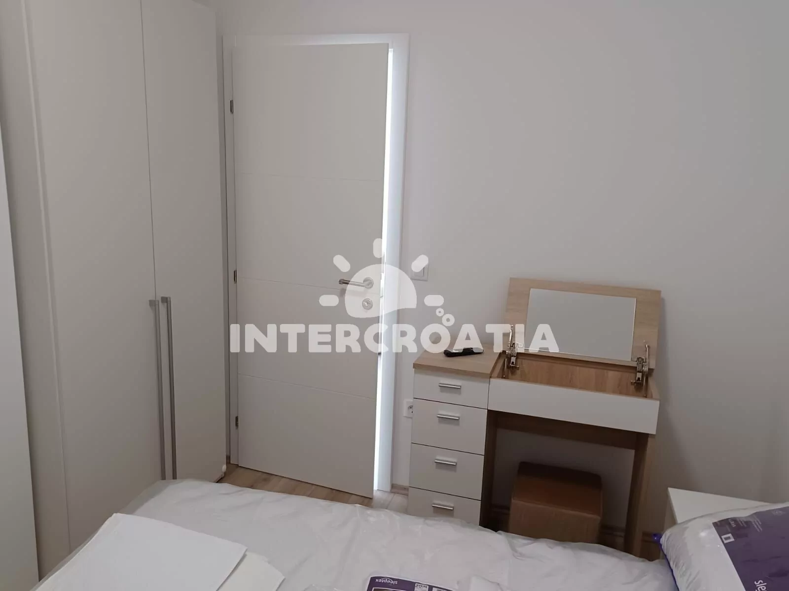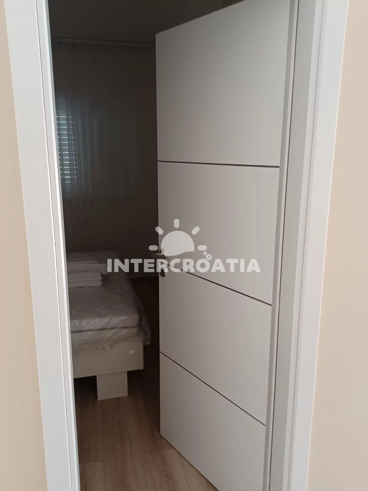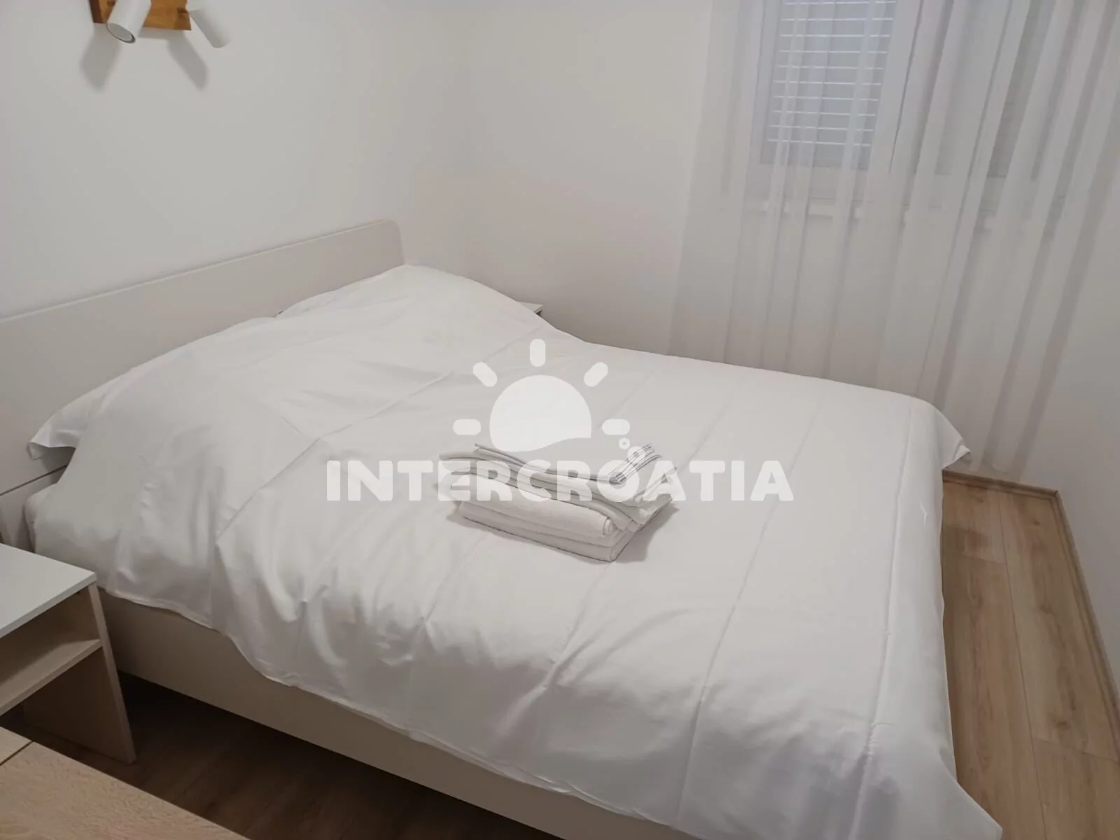 Apartmán (35 m2) s terasou a částečným výhledem na moře se nachází v přízemí domu. Apartmán má 1 ložnici a je vhodný pro 2 až 3 osoby. Obývací pokoj je spojený s kuchyní. Kuchyňská linka je vybavena sklokeramickou varnou deskou, digestoří, vestavěnou troubou, myčkou na nádobí, mikrovlnnou troubou, rychlovarnou konvicí, nádobím a lednicí s mrazákem. Obývací pokoj s jídelním stolem, pohovkou (rozložitelná na extra lůžko pro 1 osobu), televizí se satelitním programem a klimatizací. Ložnice s jedním dvoulůžkem. Koupelna se sprchovým koutem, umyvadlem, pračkou, fénem a wc. Hostům je k dispozici parkování u objektu zdarma.