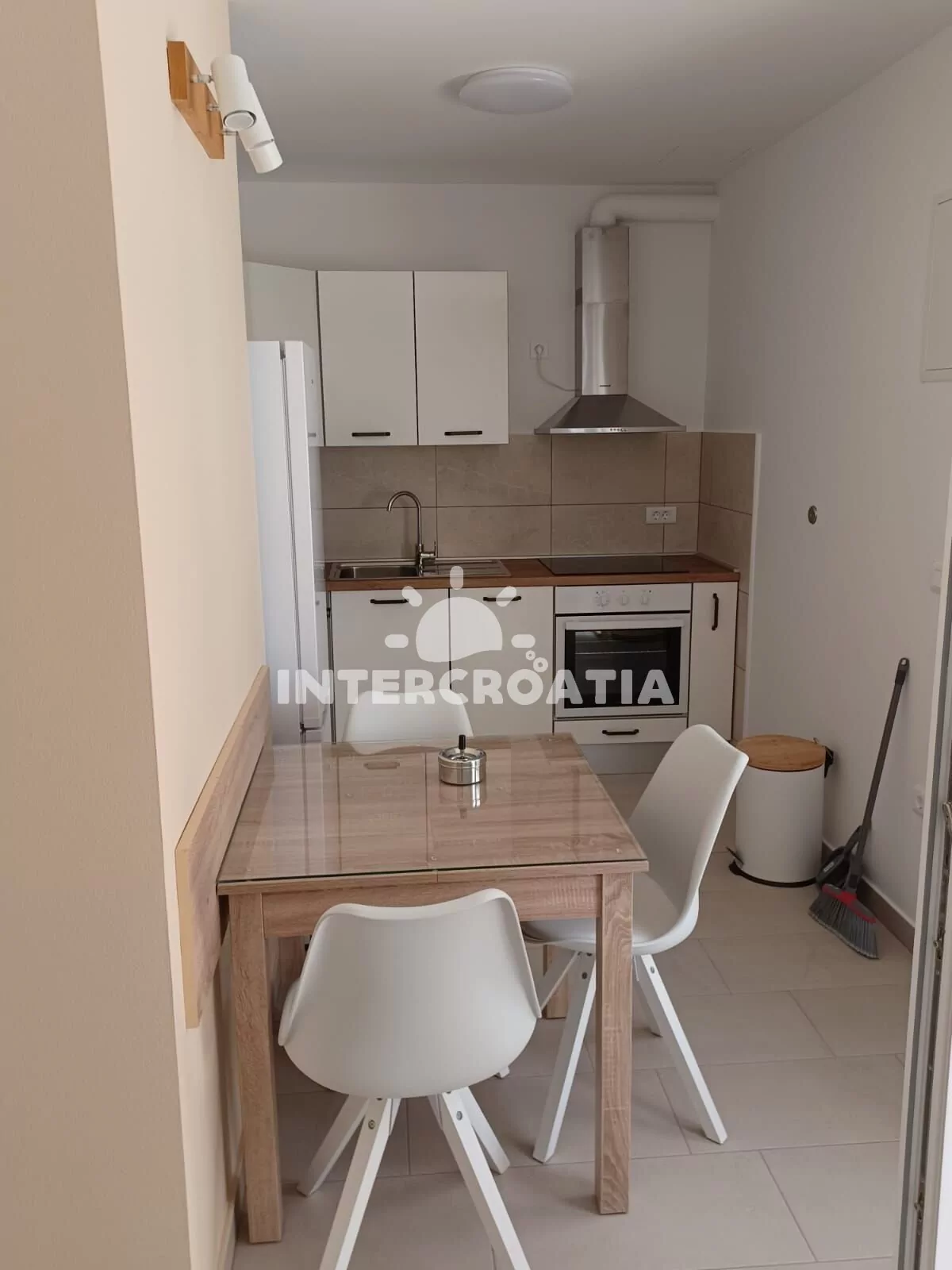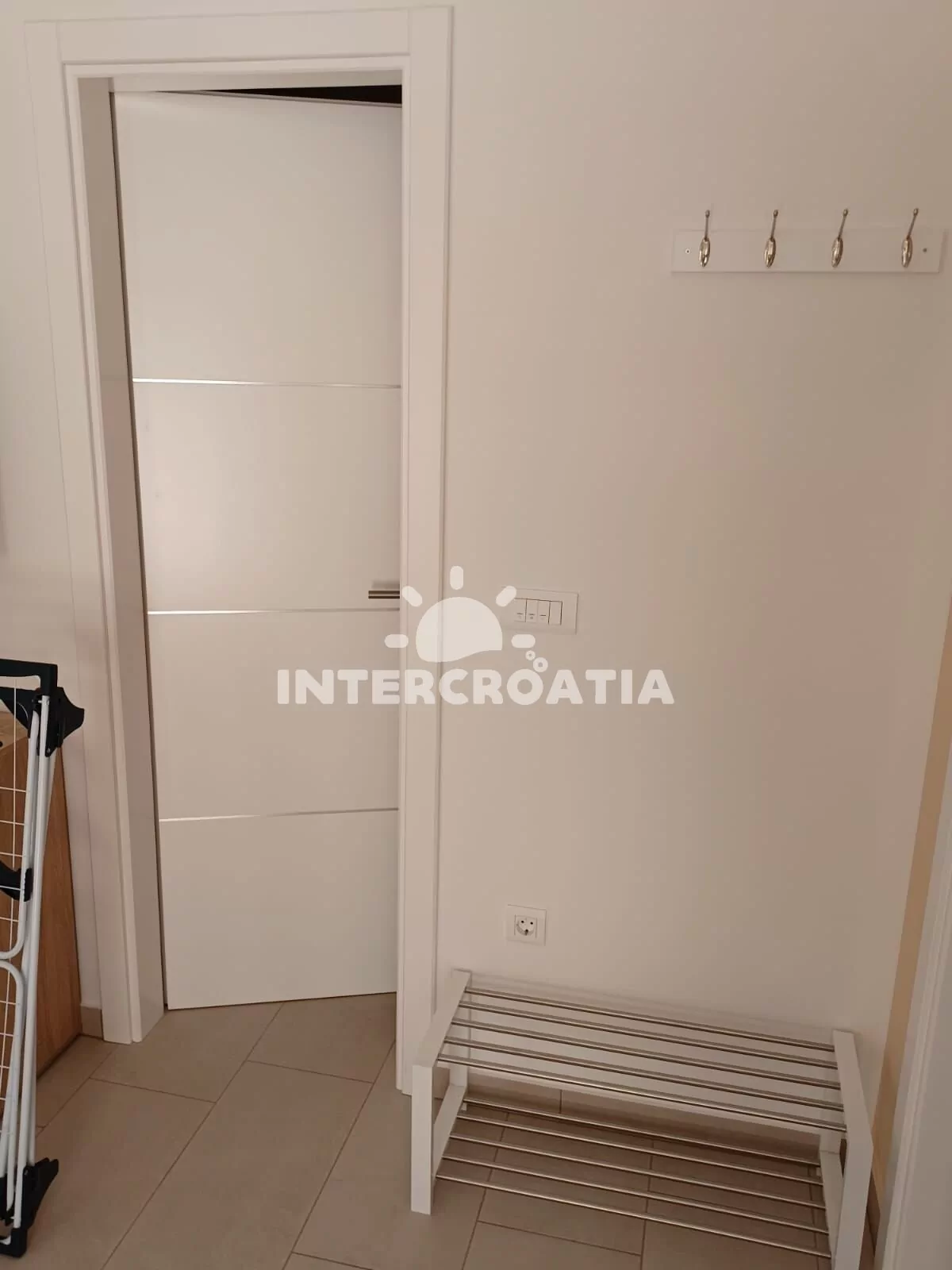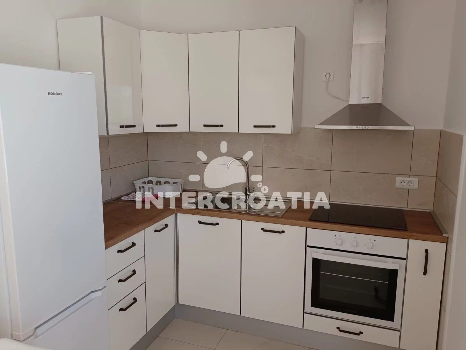 Apartmán (35 m2) s terasou a částečným výhledem na moře se nachází v přízemí domu. Apartmán má 1 ložnici a je vhodný pro 2 až 3 osoby. Obývací pokoj je spojený s kuchyní. Kuchyňská linka je vybavena sklokeramickou varnou deskou, digestoří, vestavěnou troubou, myčkou na nádobí, mikrovlnnou troubou, rychlovarnou konvicí, nádobím a lednicí s mrazákem. Obývací pokoj s jídelním stolem, pohovkou (rozložitelná na extra lůžko pro 1 osobu), televizí se satelitním programem a klimatizací. Ložnice s jedním dvoulůžkem. Koupelna se sprchovým koutem, umyvadlem, pračkou, fénem a wc. Hostům je k dispozici parkování u objektu zdarma.
