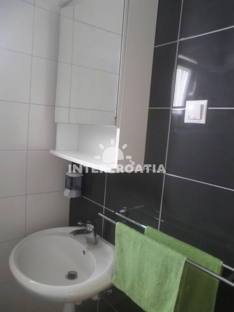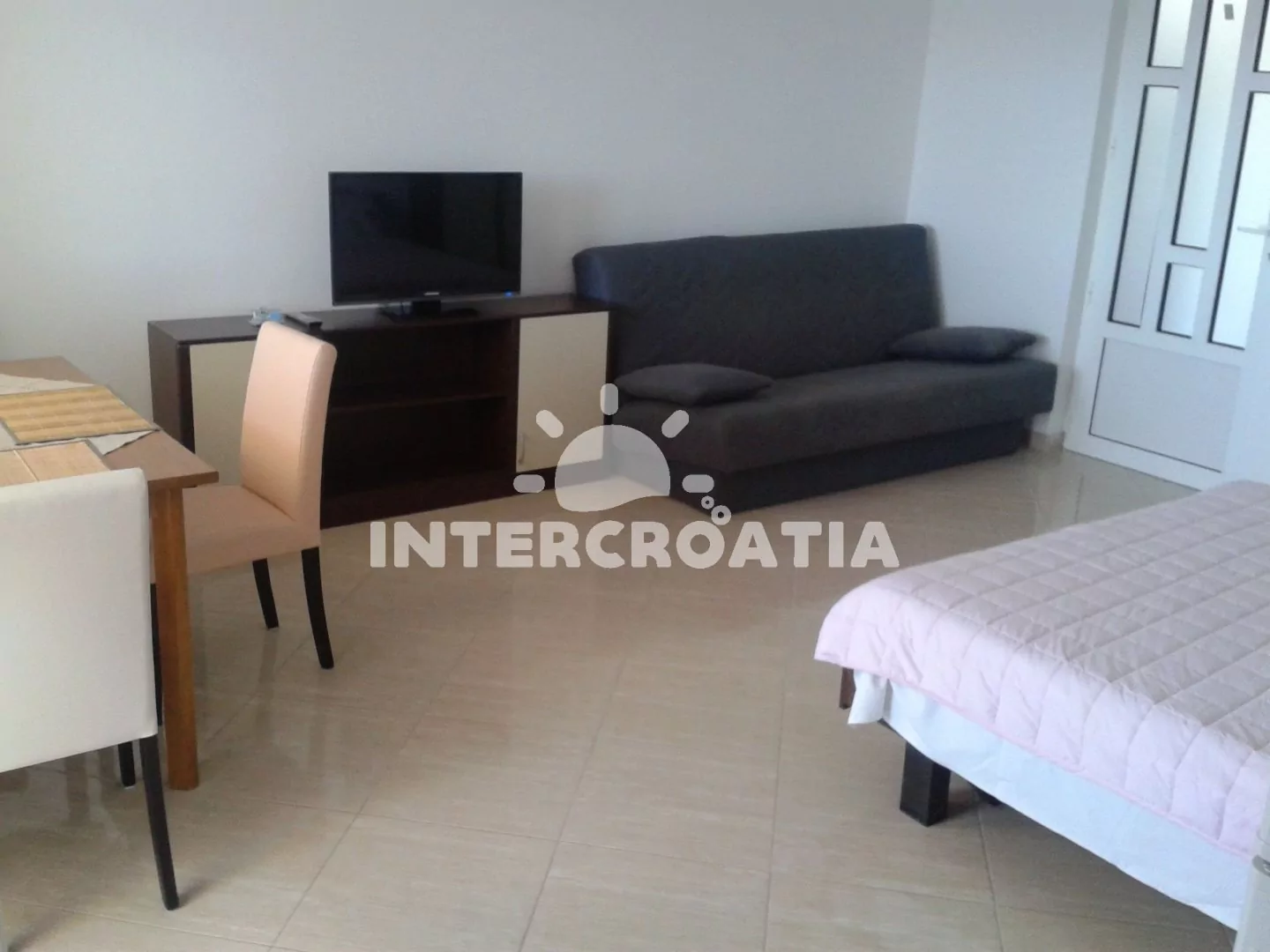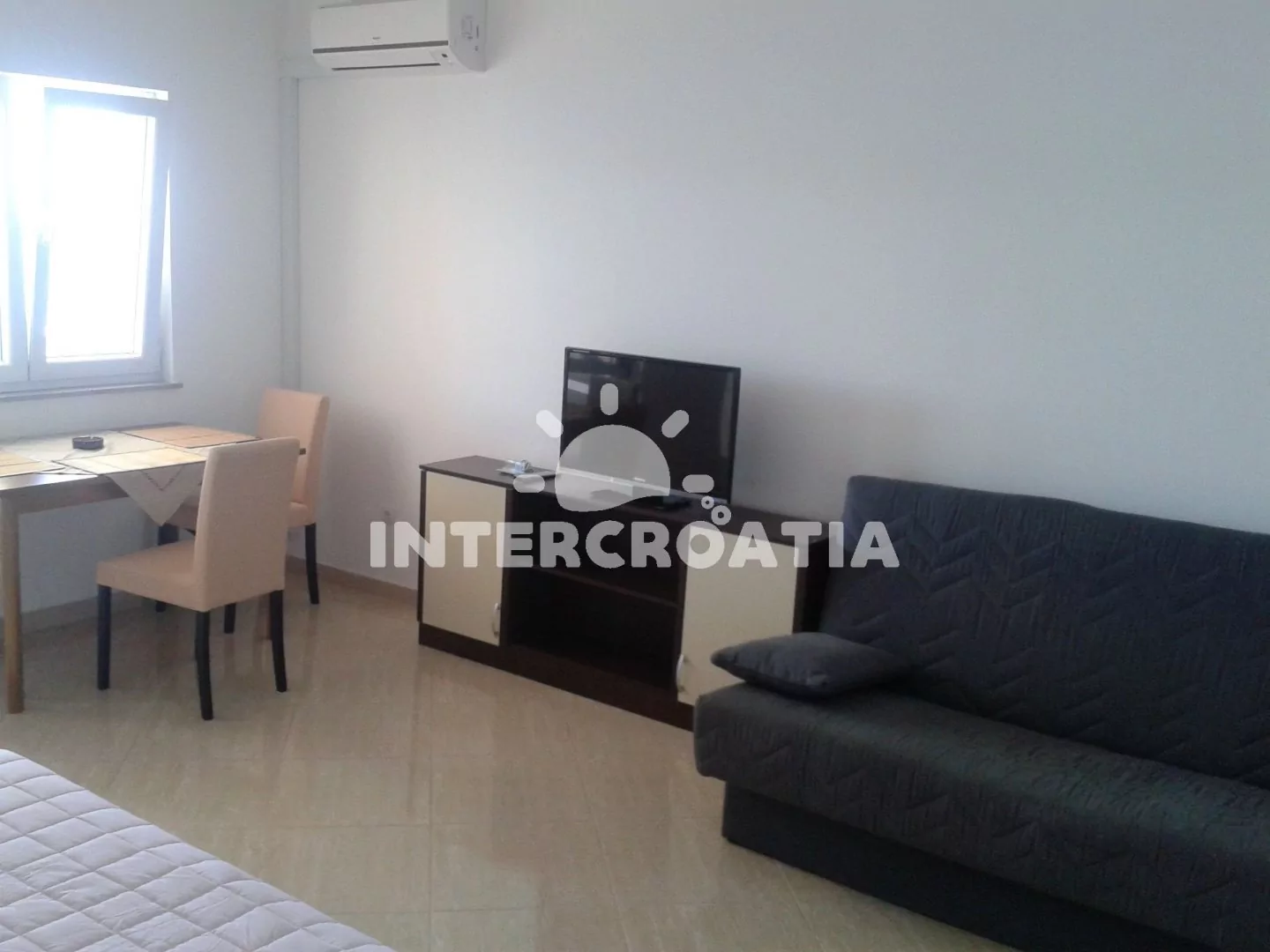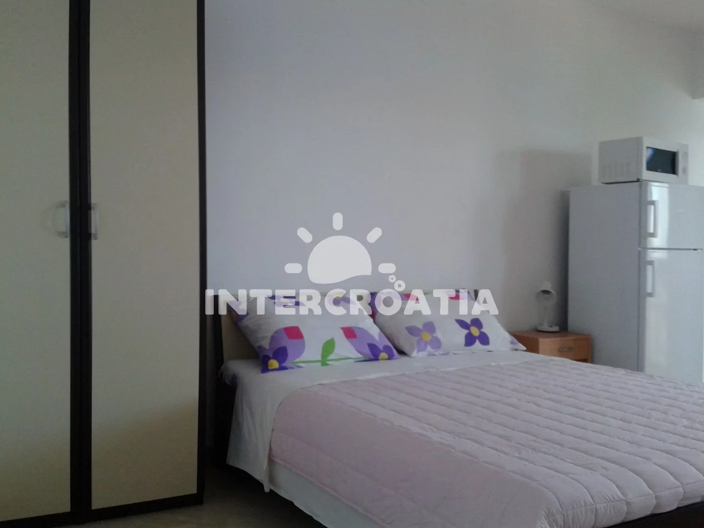 Apartmán (35 m2) typu studio s terasou a výhledem na moře se nachází ve 2. patře domu. Apartmán je vhodný pro 2 až 3 osoby. Obývací místnost je spojena s kuchyní. Kuchyňská linka je vybavena dvouplotýnkovým vařičem, digestoří, mikrovlnnou troubou, rychlovarnou konvicí, nádobím a lednicí s mrazákem. Obývací místnost s jídelním stolem, pohovkou (rozložitelná na extra lůžko pro 1 osobu), televizí se satelitním programem, dvoulůžkem, klimatizací a vstupem na terasu. Koupelna se sprchovým koutem, umyvadlem, fénem a wc. Hostům je k dispozici parkování u objektu zdarma.