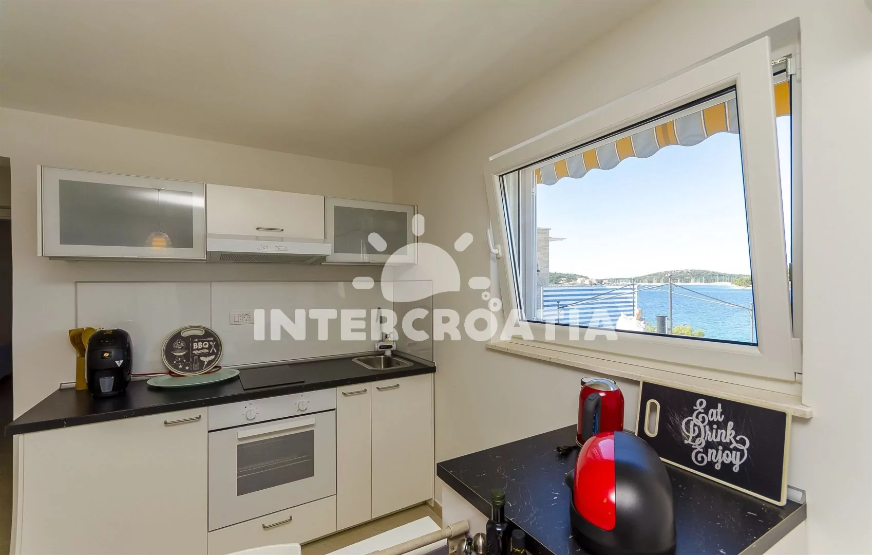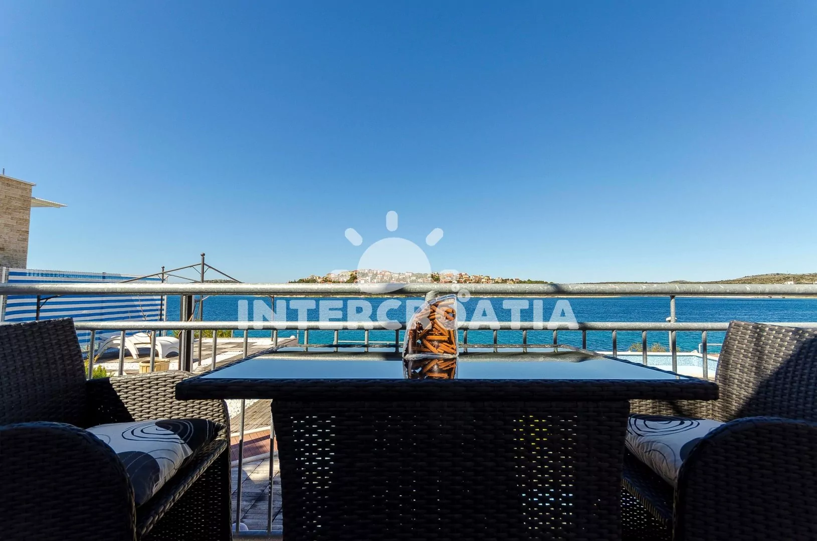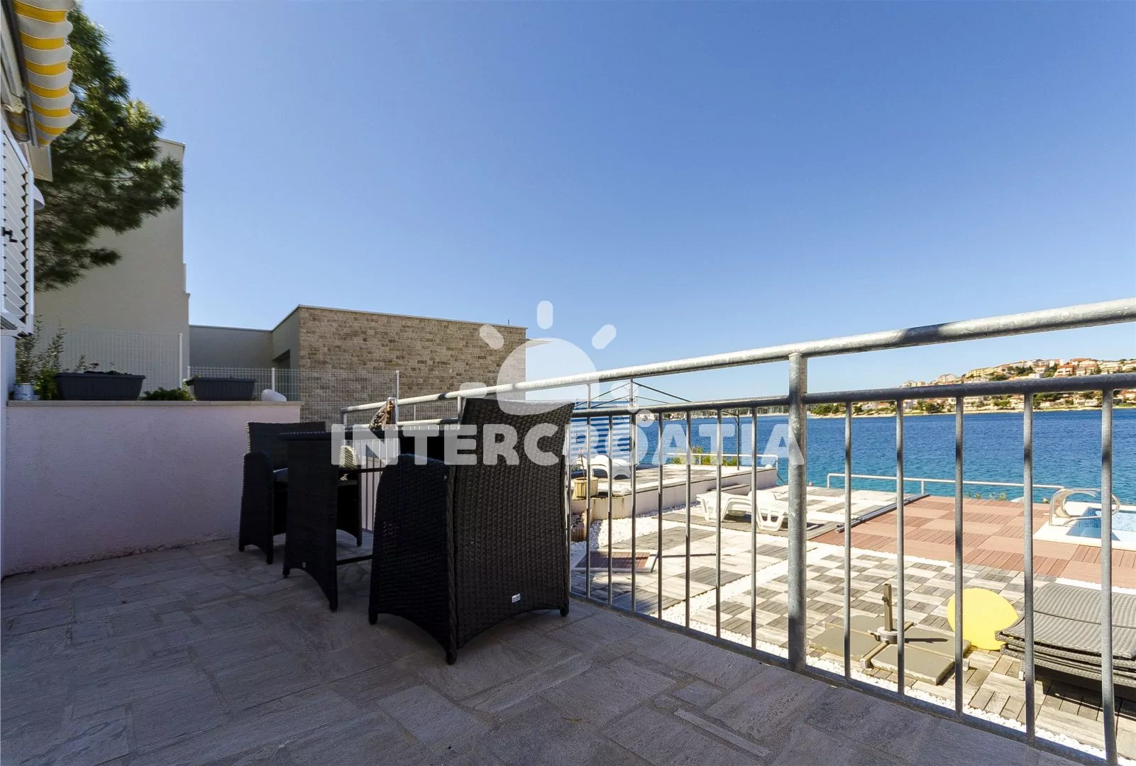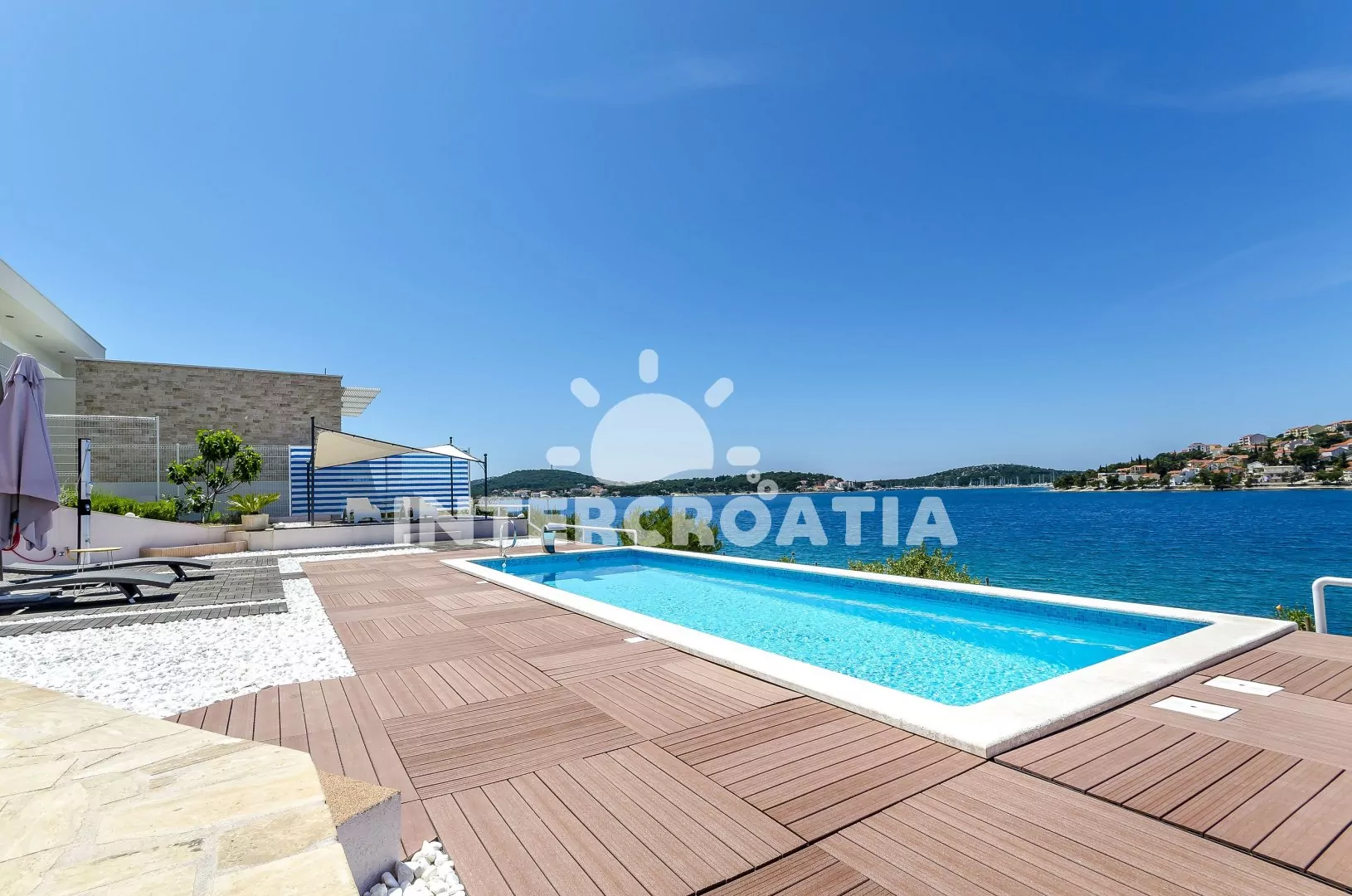 Moderně zařízená vila s venkovním bazénem se nachází přímo u břehu moře a pláže. Vila nabízí ubytování v klimatizovaných apartmánech s lodžiemi a venkovním posezením. K dispozici je společná terasa s pergolou, posezením, grilem a venkovní sprchou. Parkovací místa pro automobily jsou k dispozici u vily.