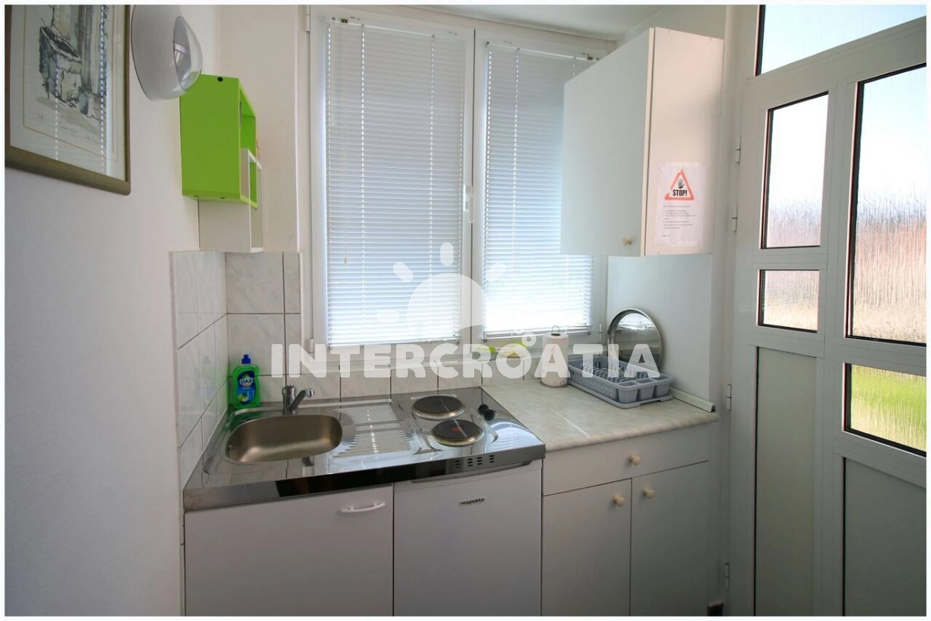 Apartmán se nachází 150 m od moře a pláže. Pláž je oblázková a betonové desky. U objektu je k dispozici společná zahrada s posezením a grilem. Parkování je 150m - 300 m od domu.