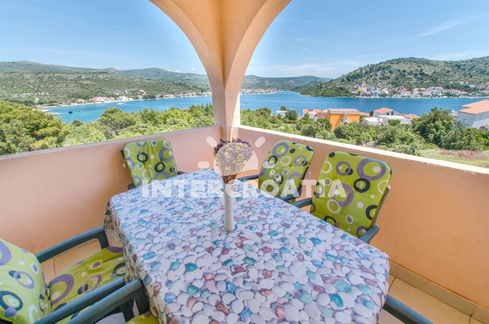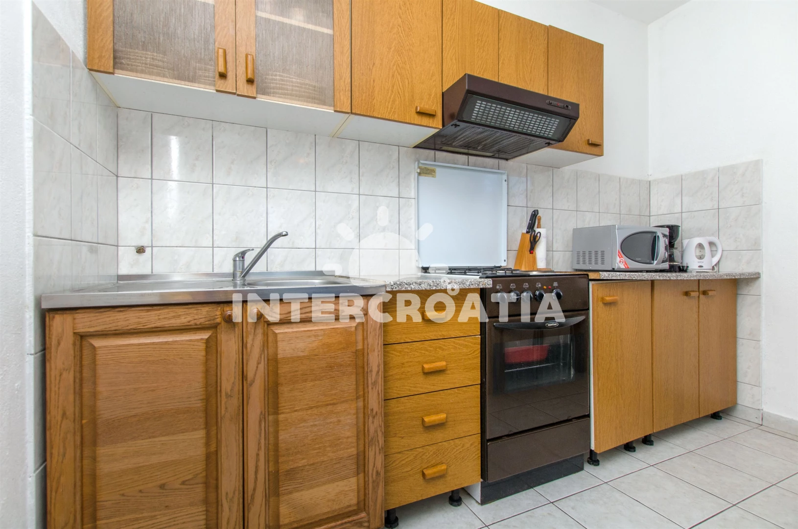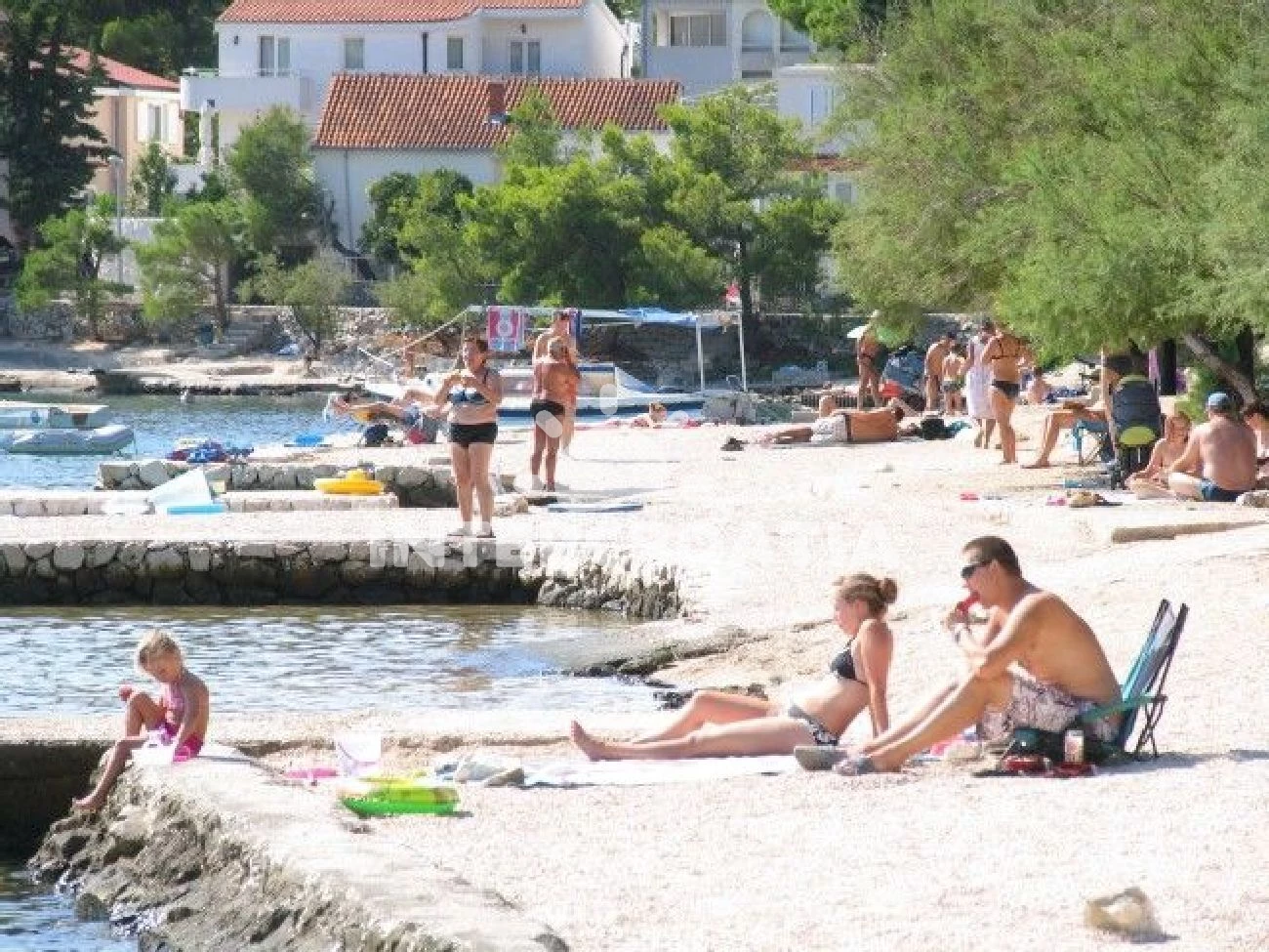 Vzdálenosti: Moře 100 m, pláž 100 m (oblázková a betonové desky), potápění 100 m, supermarket 800 m, centrum 1 km, směnárna 1 km, veřejná doprava 1 km, bar 1 km, banka 1 km, půjčovna kol 1 km, restaurace 1 km, pošta 1,2 km, ambulance 1,2 km, lékárna 1,3 km, marina 1,5 km, tenisové kurty 1,5 km, čerpací stanice 7 km, diskotéka 7 km, letiště (Split) 30 km, trajekt (Split) 50 km,