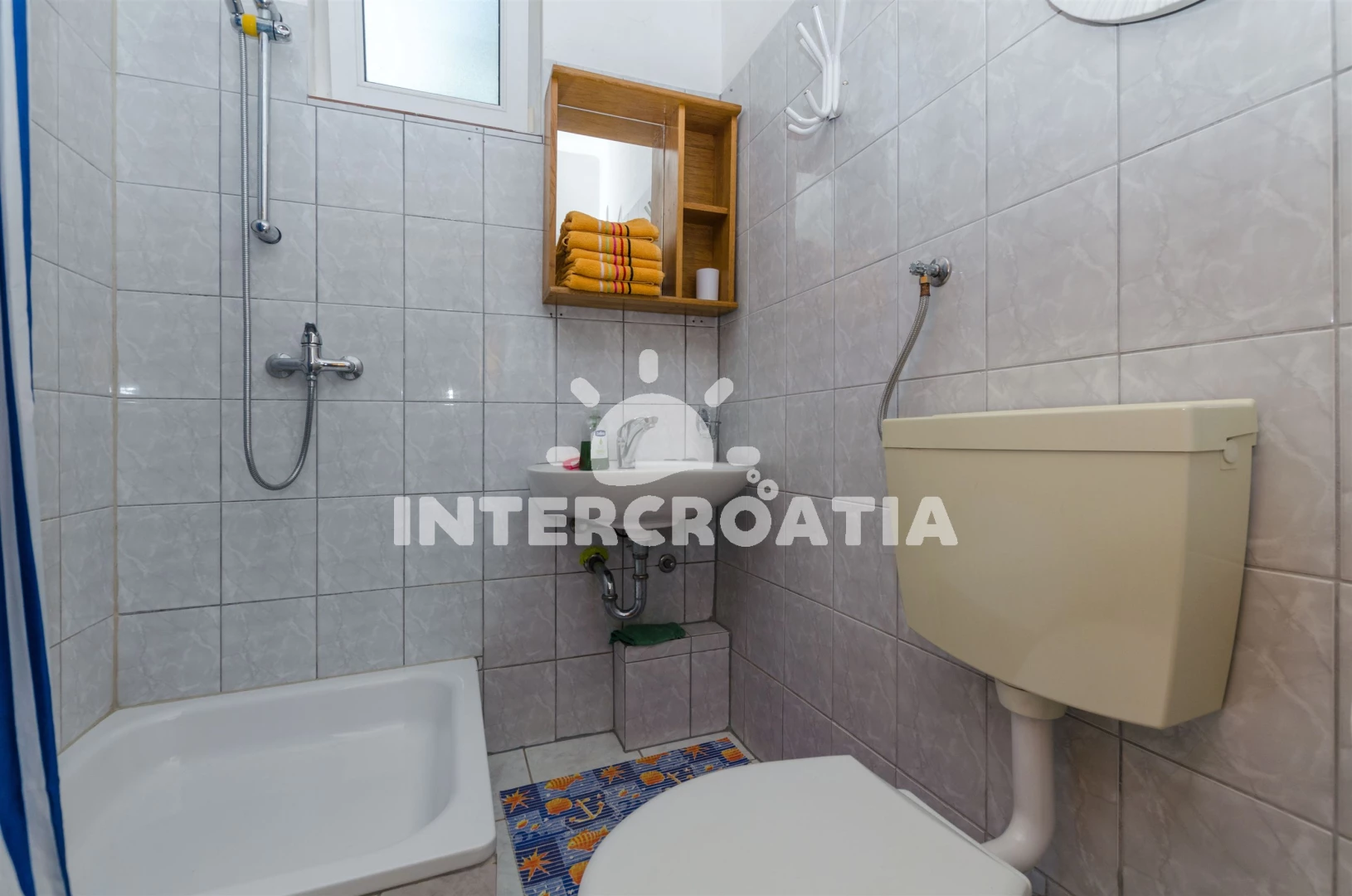 Vzdálenosti: Moře 200 m, pláž 300 m (oblázková a betonové desky), supermarket 50 m, centrum 200 m, bar 200 m, veřejná doprava 200 m, půjčovna kol 200 m, směnárna 200 m, banka 200 m, restaurace 300 m, pošta 500 m, potápění 600 m, ambulance 600 m, tenisové kurty 800 m, lékárna 800 m, marina 800 m, čerpací stanice 7 km, diskotéka 7 km, letiště (Split) 25 km, trajekt (Split) 50 km,