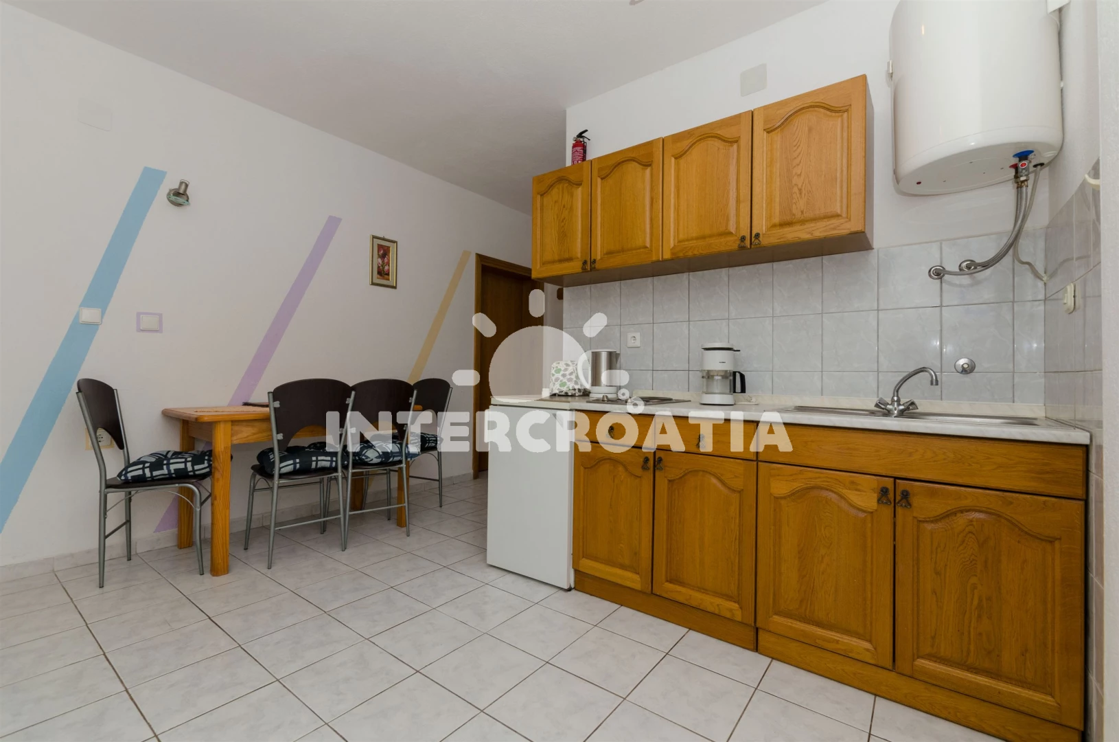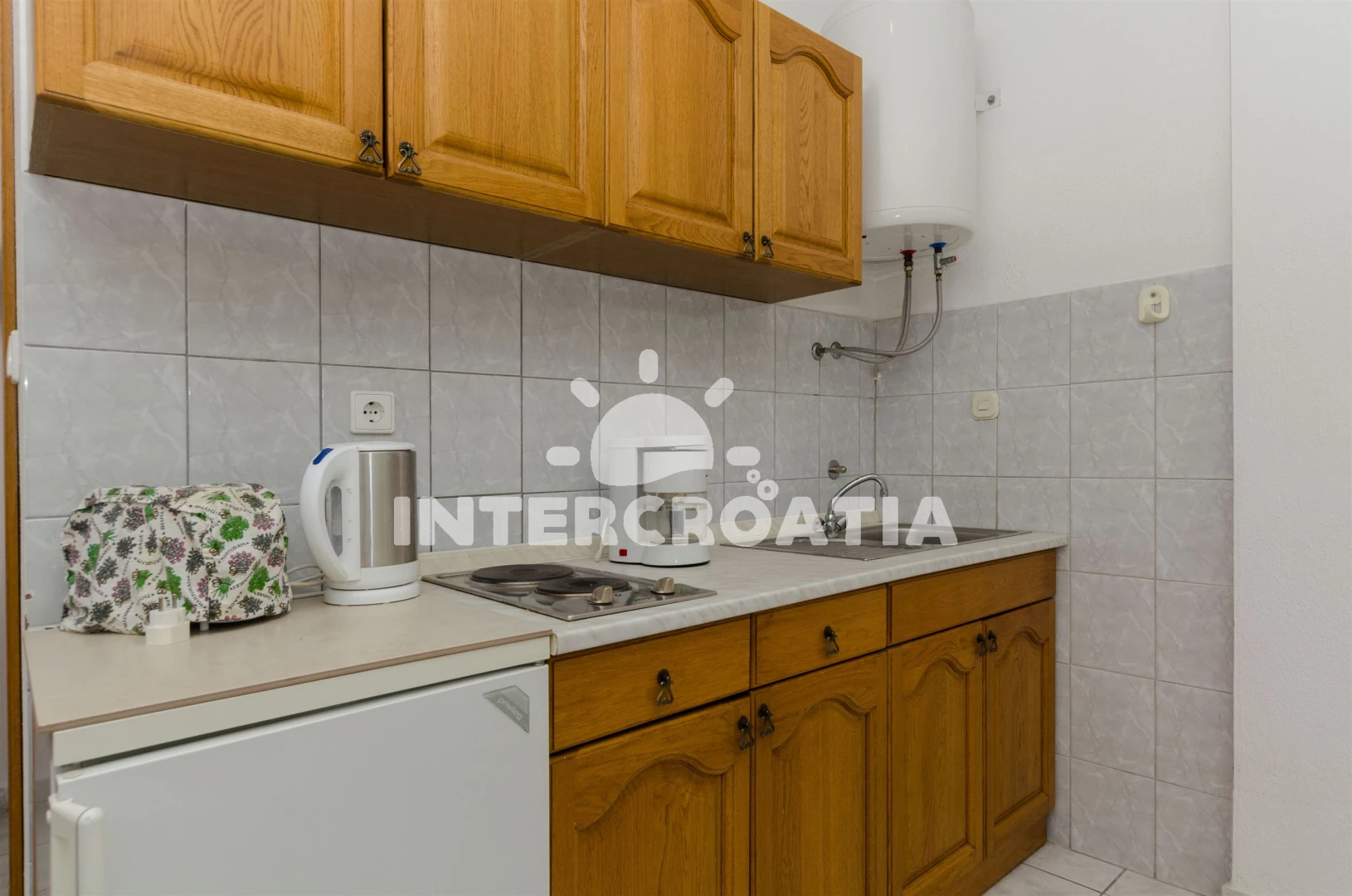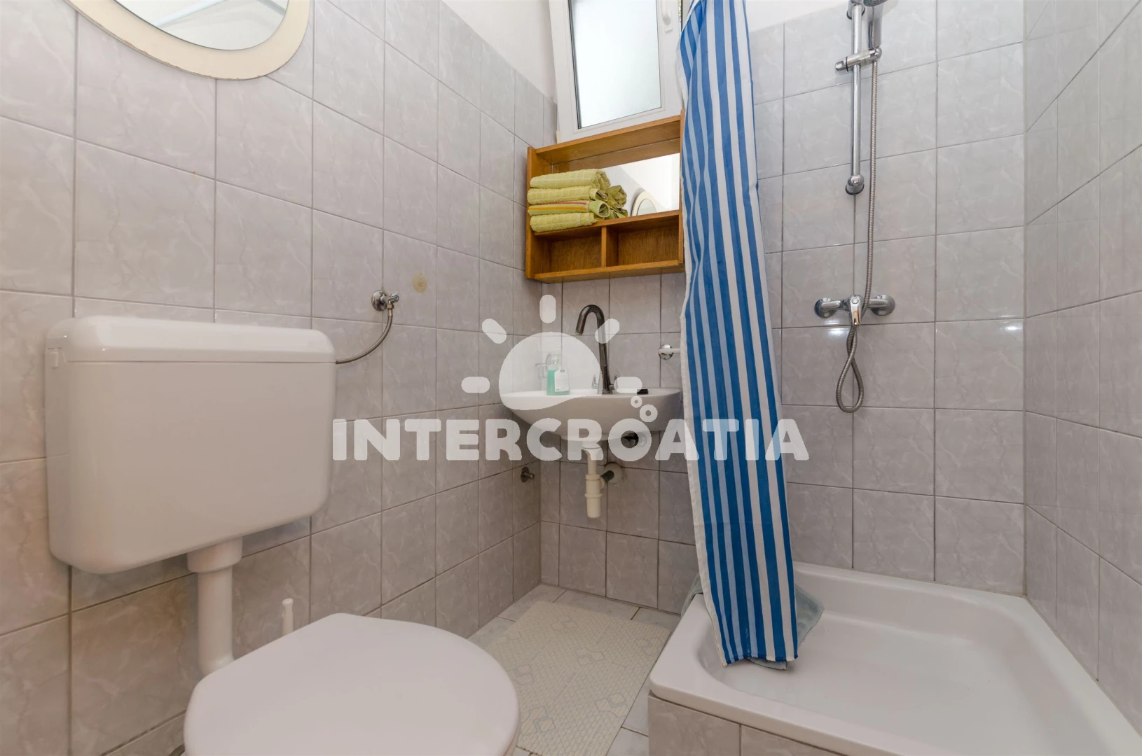 Vzdálenosti: Moře 200 m, pláž 300 m (oblázková a betonové desky), supermarket 50 m, centrum 200 m, bar 200 m, veřejná doprava 200 m, půjčovna kol 200 m, směnárna 200 m, banka 200 m, restaurace 300 m, pošta 500 m, potápění 600 m, ambulance 600 m, tenisové kurty 800 m, lékárna 800 m, marina 800 m, čerpací stanice 7 km, diskotéka 7 km, letiště (Split) 25 km, trajekt (Split) 50 km,
