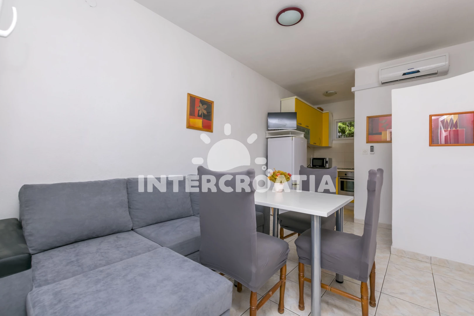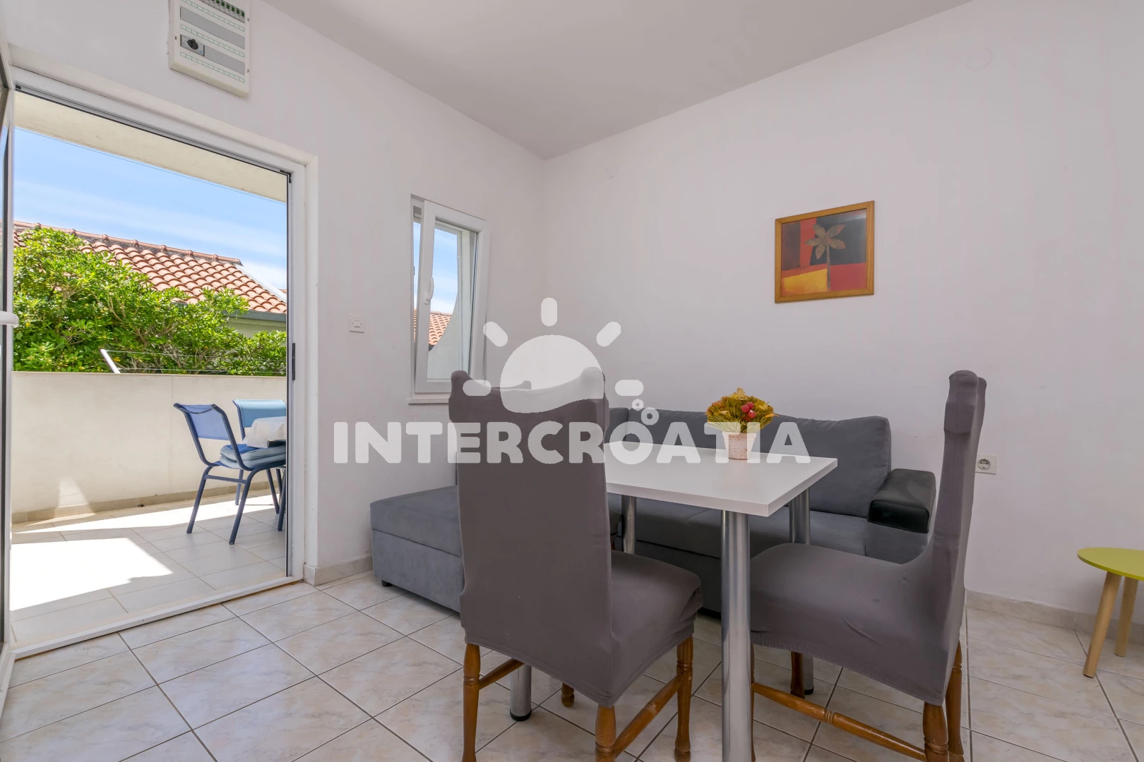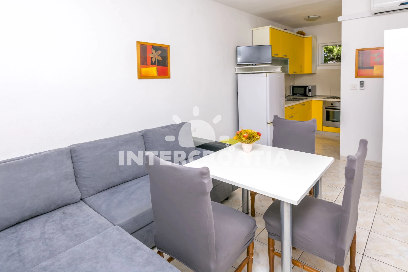 Vzdálenosti: Moře 50 m, pláž 60 m (oblázková a betonové desky), supermarket 300 m, veřejná doprava 300 m, marina 2 km, bar 2 km, restaurace 2 km, banka 2 km, lékárna 2 km, směnárna 2 km, půjčovna kol 2 km, tenisové kurty 2 km, centrum 2 km, potápění 2 km, ambulance 2,5 km, pošta 2,5 km, diskotéka 9 km, čerpací stanice 9 km, muzeum 25 km, letiště (Split) 30 km, trajekt (Šibenik) 35 km,