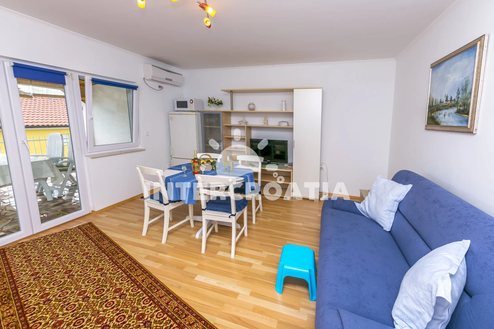 Apartmán se nachází 200 m od moře a pláže. Pláž je oblázková a betonové desky. U objektu je k dispozici společná zahrada s posezením a grilem. Parkování je 50m - 150 m od domu.