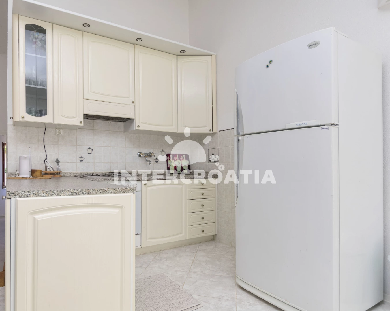 Apartmán se nachází 70 m od moře a pláže. Pláž je skalnatá, oblázková a betonové desky. U objektu je k dispozici společná zahrada s posezením a grilem. Parkování je před domem.