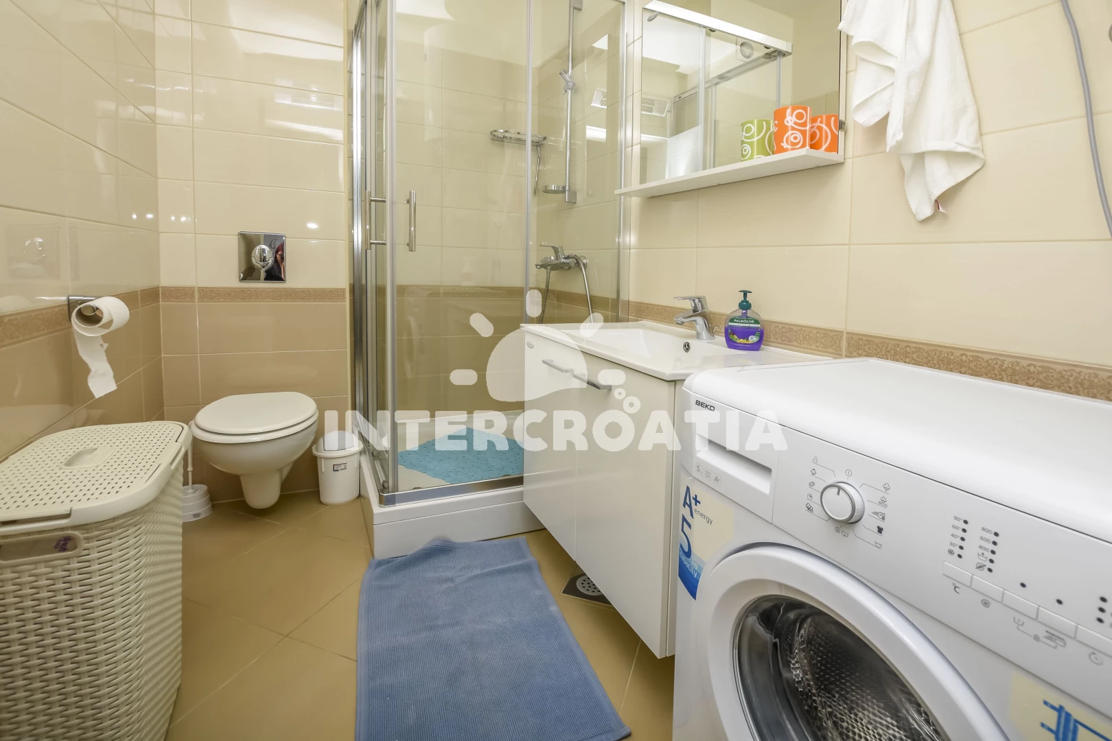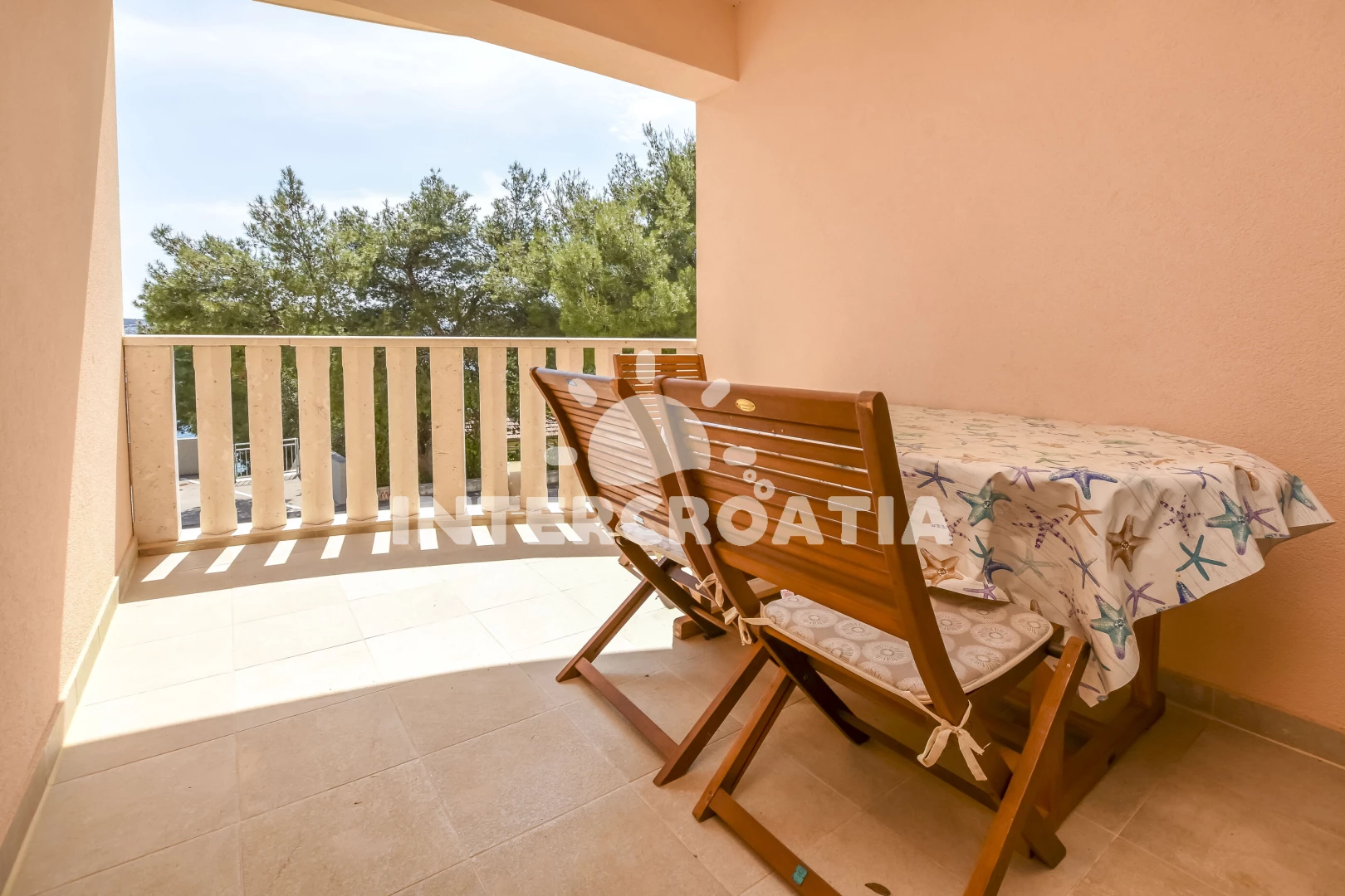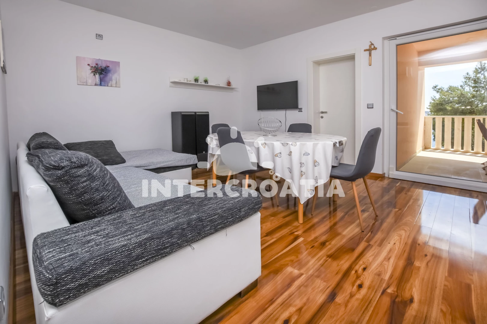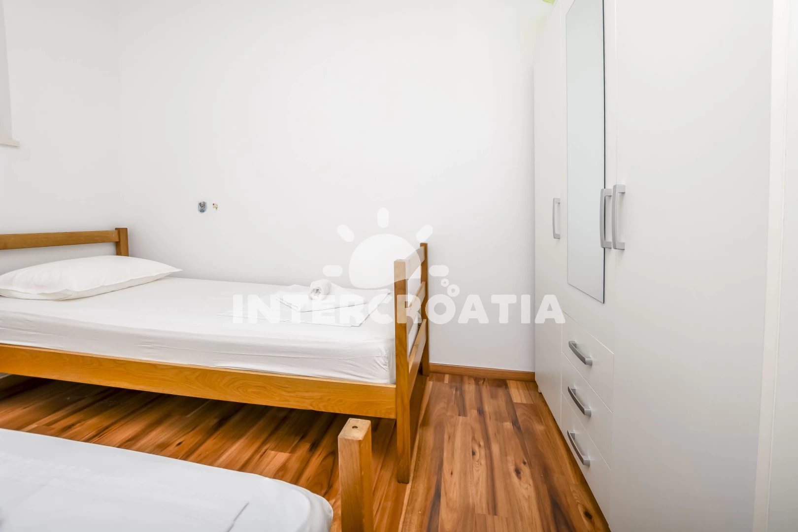 Vzdálenosti: Moře 50 m, pláž 70 m (oblázková a betonové desky), supermarket 300 m, bar 300 m, směnárna 300 m, centrum 300 m, půjčovna kol 500 m, půjčovna motorových člunů 500 m, restaurace 600 m, lékárna 800 m, potápění 800 m, marina 1 km, diskotéka 1,1 km, pošta 1,1 km, banka 1,1 km, ambulance 1,1 km, veřejná doprava 2 km, čerpací stanice 5 km, muzeum 30 km, letiště (Split) 33 km, trajekt (Šibenik) 35 km, park Plitvice 50 km,