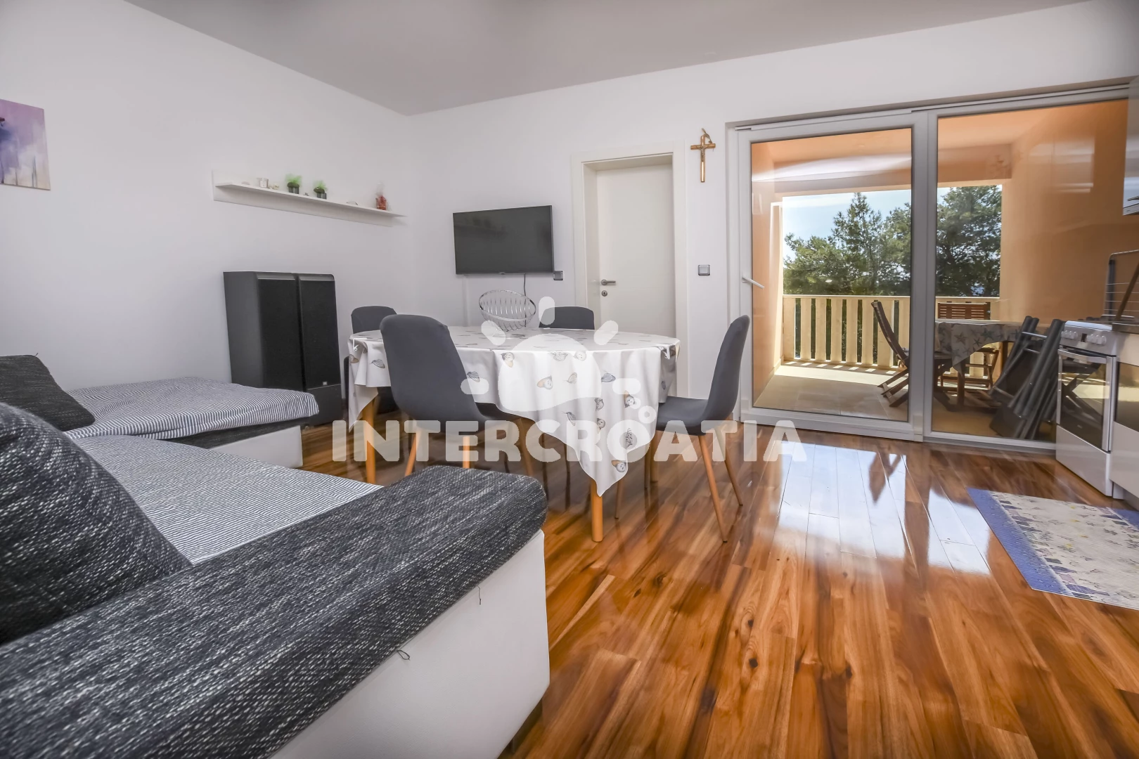 Apartmán se nachází 70 m od moře a pláže. Pláž je oblázková a betonové desky. U objektu je k dispozici společná zahrada s posezením a grilem. Parkování je před domem.