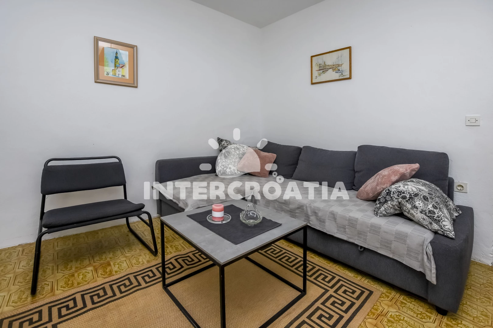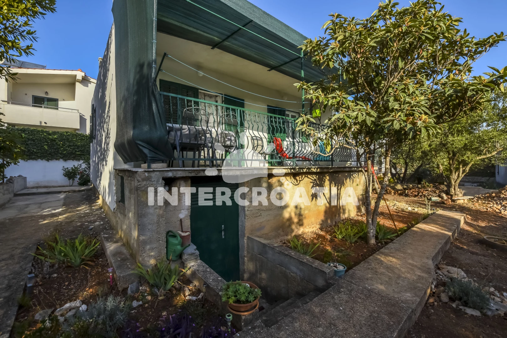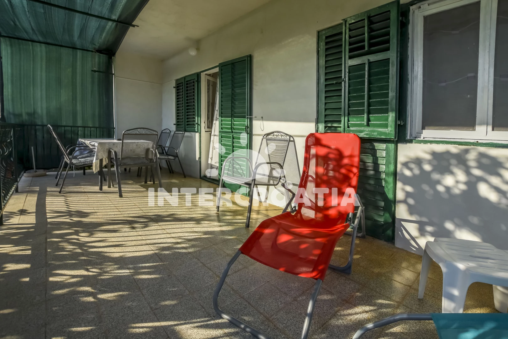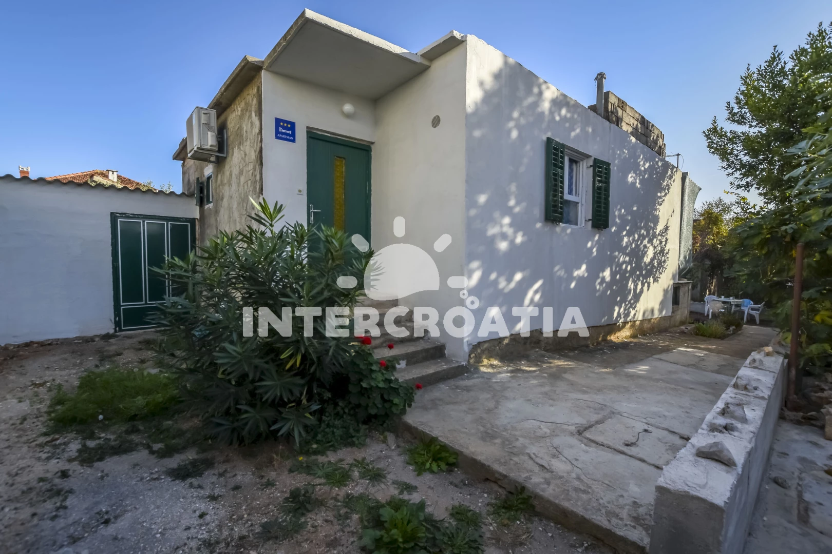 Apartmán se nachází 70 m od moře a pláže. Pláž je skalnatá, oblázková, větší kamení a betonové desky. U objektu je k dispozici společná zahrada s posezením a grilem. Parkování je před domem.