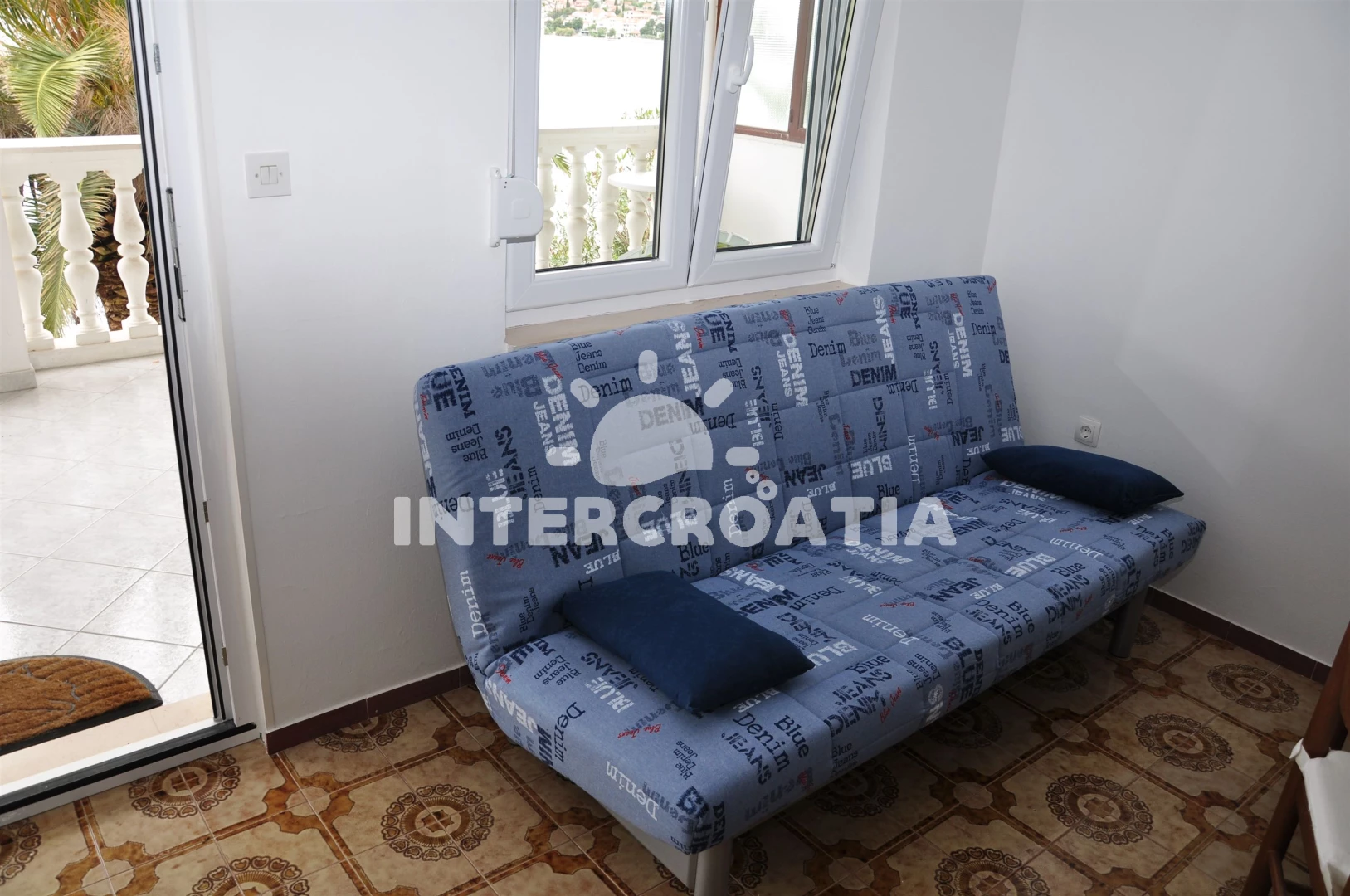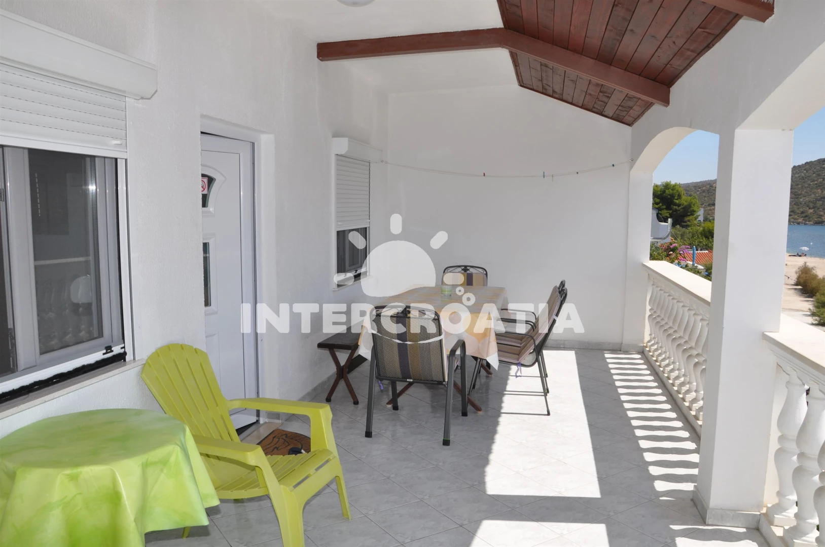 Apartmán se nachází 10 m od moře a pláže. Pláž je oblázková a betonové desky. U objektu je k dispozici společná zahrada s posezením a grilem. Parkování je před domem.