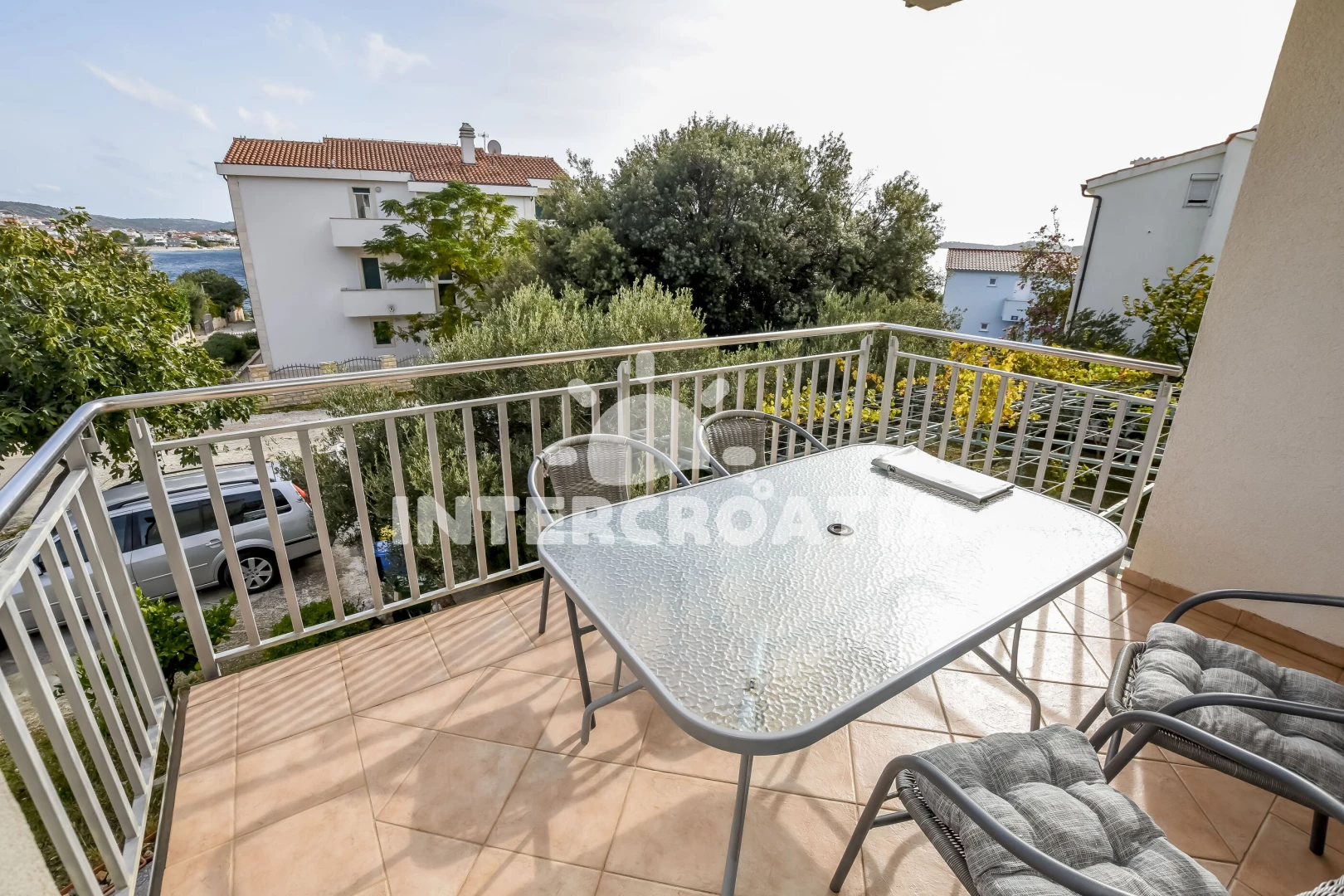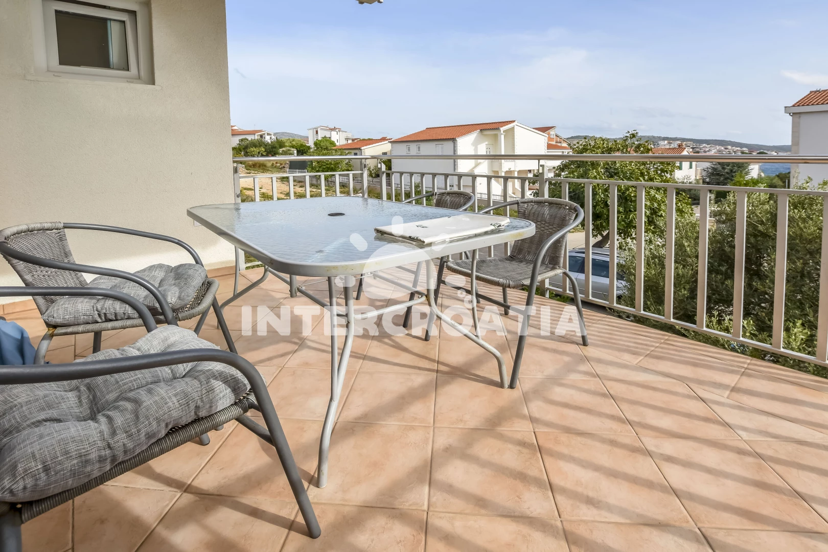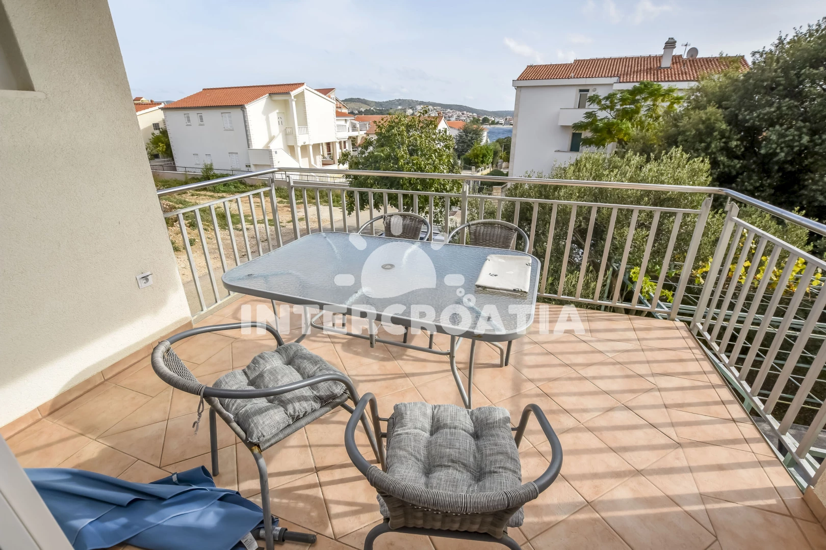 Vzdálenosti: Moře 50 m, pláž 50 m (skalnatá, oblázková a betonové desky), bar 300 m, restaurace 300 m, centrum 2 km, supermarket 2 km, lékárna 2 km, marina 2 km, ambulance 2,5 km, pošta 2,5 km, veřejná doprava 3 km, směnárna 9 km, čerpací stanice 9 km, banka 9 km, letiště 30 km, trajekt 40 km,