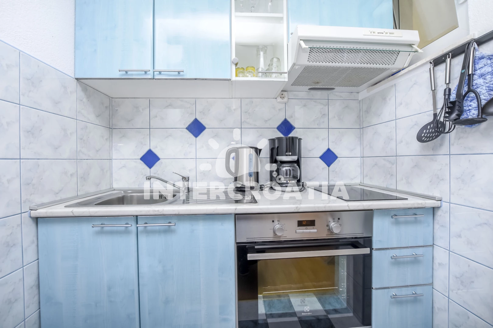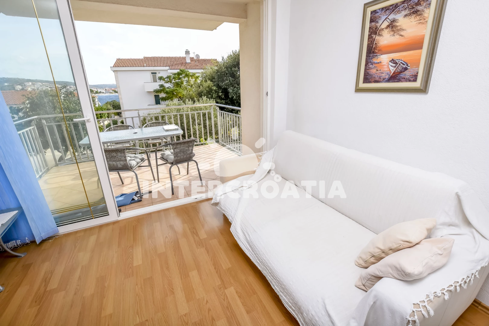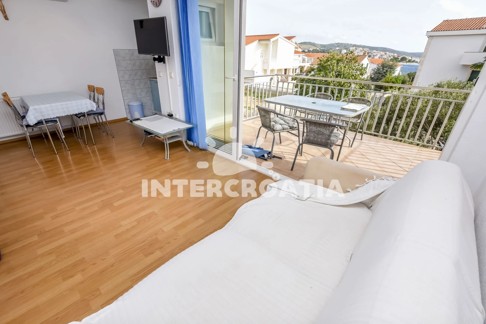 Vzdálenosti: Moře 50 m, pláž 50 m (skalnatá, oblázková a betonové desky), bar 300 m, restaurace 300 m, centrum 2 km, supermarket 2 km, lékárna 2 km, marina 2 km, ambulance 2,5 km, pošta 2,5 km, veřejná doprava 3 km, směnárna 9 km, čerpací stanice 9 km, banka 9 km, letiště 30 km, trajekt 40 km,