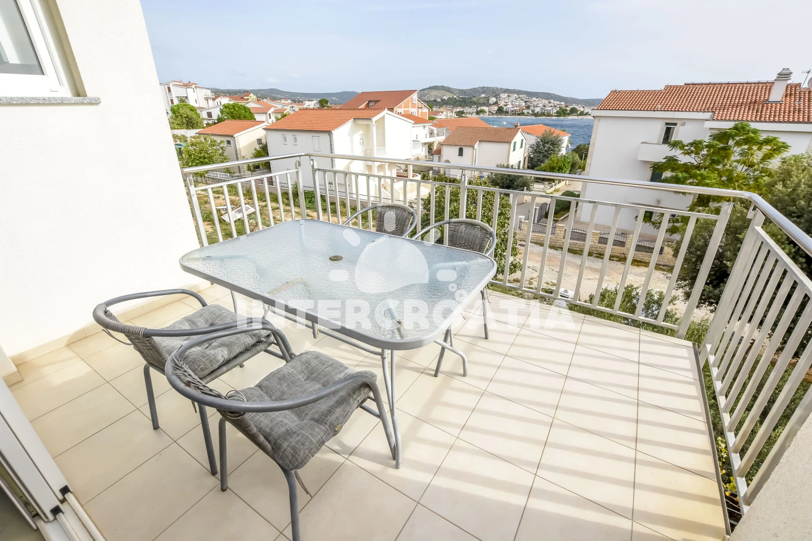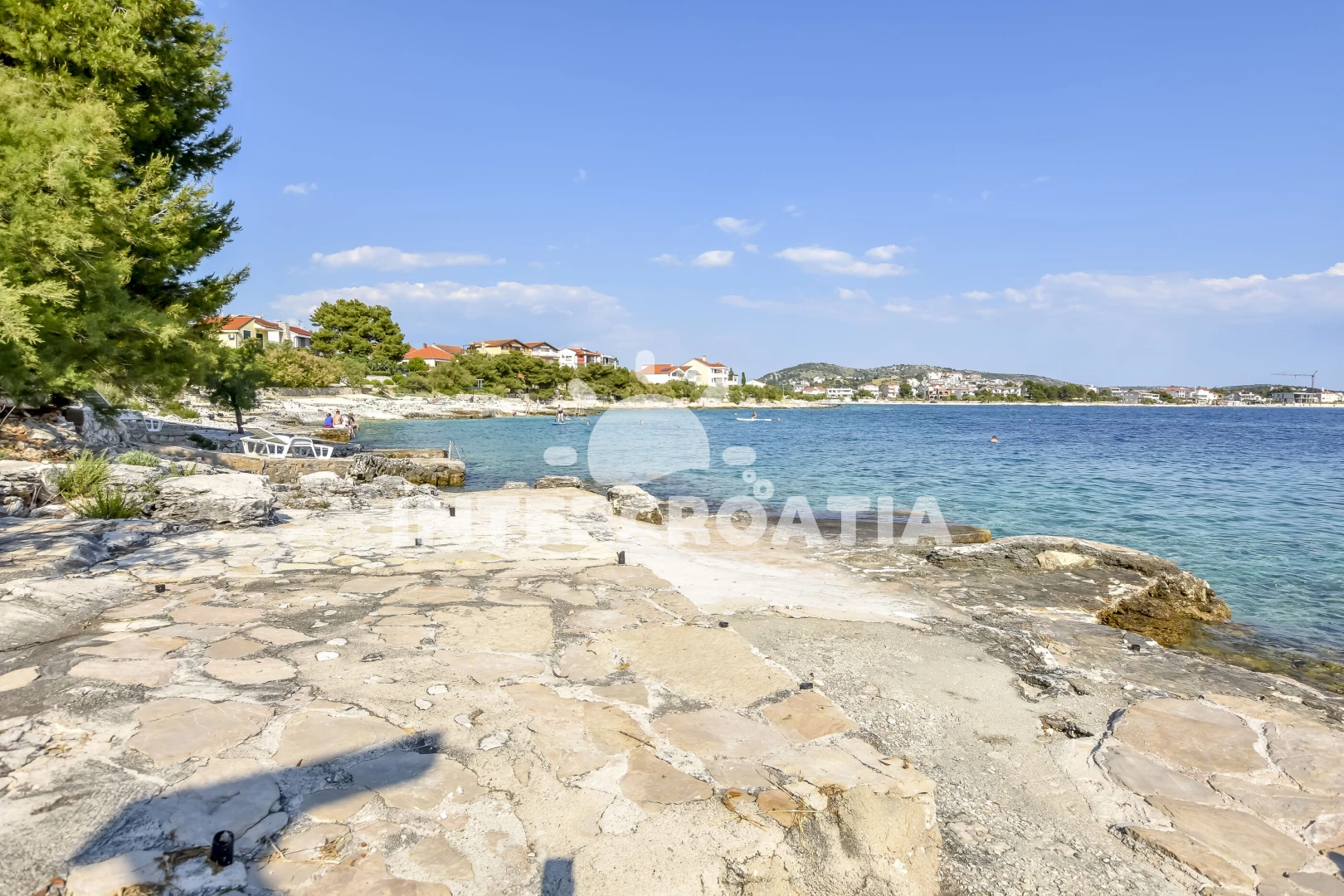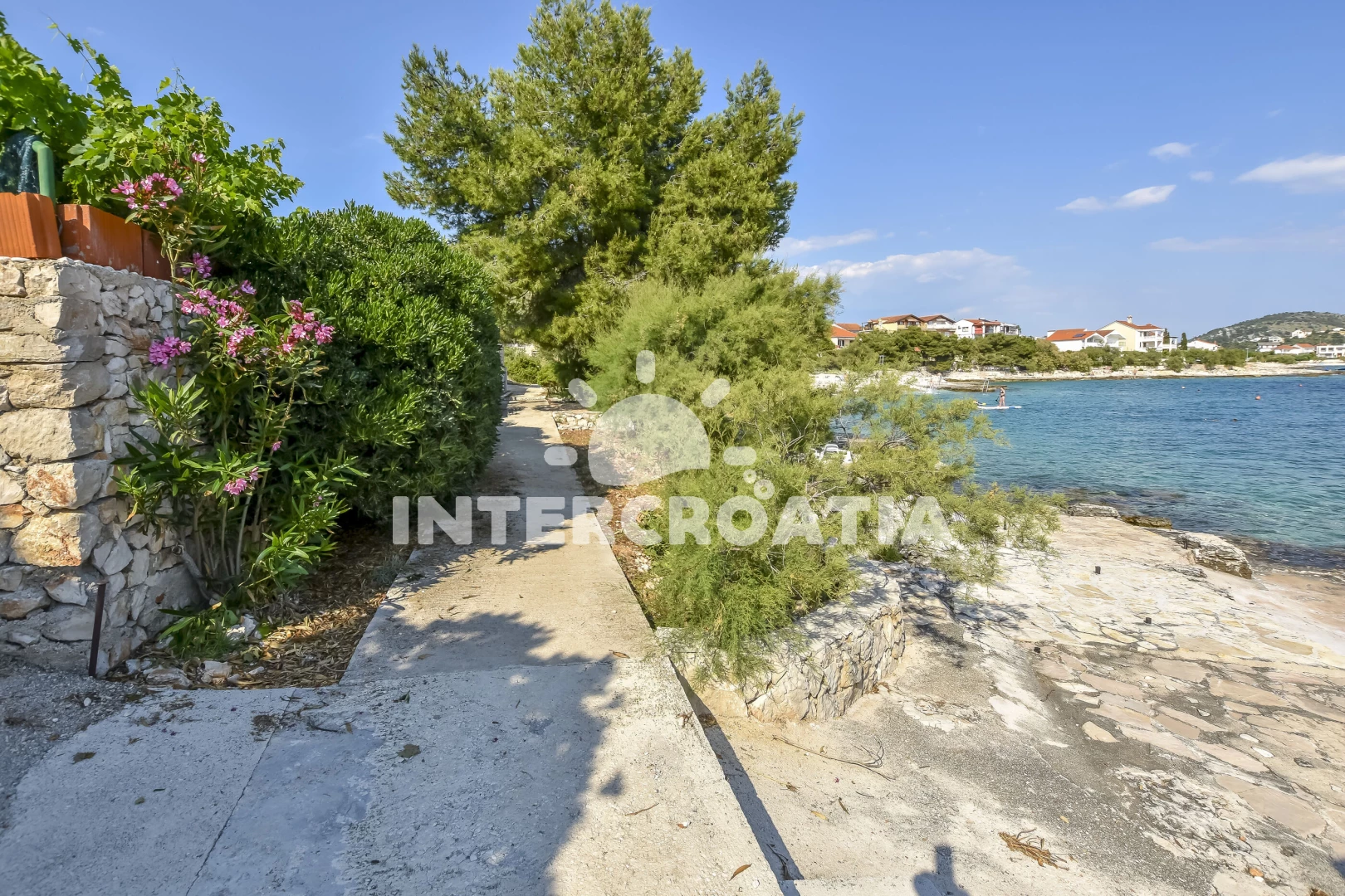 Vzdálenosti: Moře 50 m, pláž 50 m (skalnatá, oblázková a betonové desky), bar 300 m, restaurace 300 m, centrum 2 km, supermarket 2 km, lékárna 2 km, marina 2 km, ambulance 2,5 km, pošta 2,5 km, veřejná doprava 3 km, směnárna 9 km, čerpací stanice 9 km, banka 9 km, letiště 30 km, trajekt 40 km,