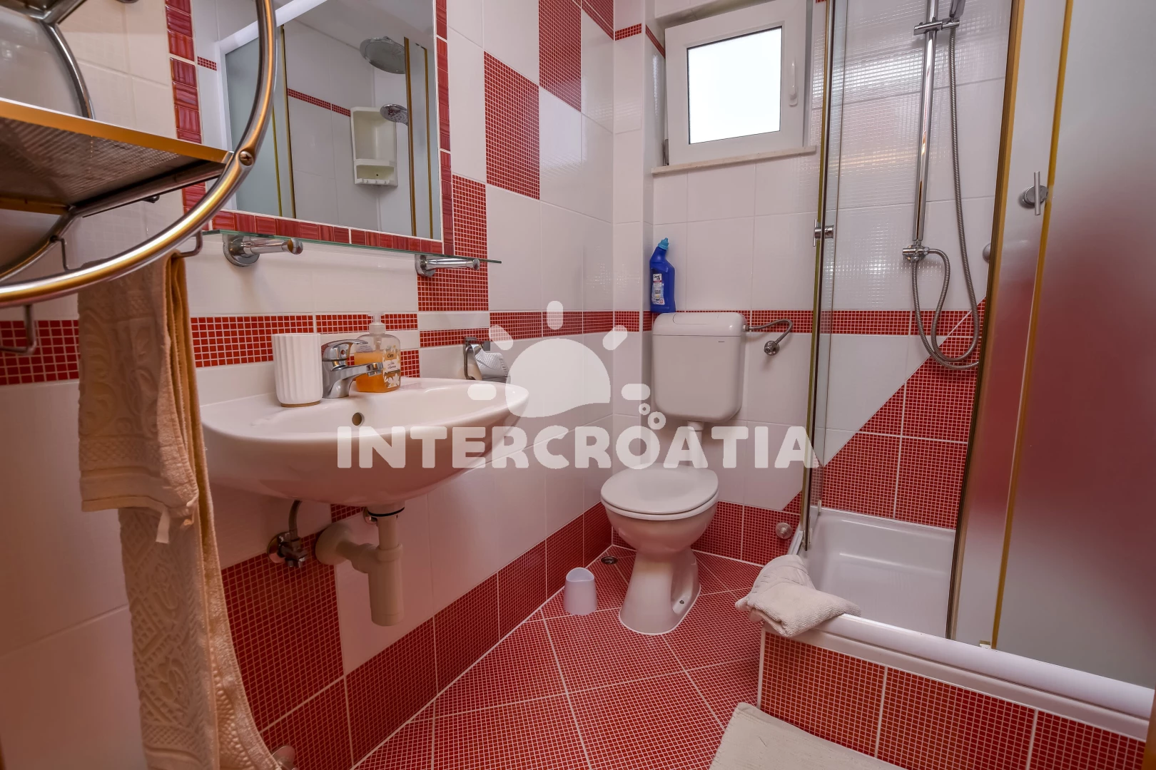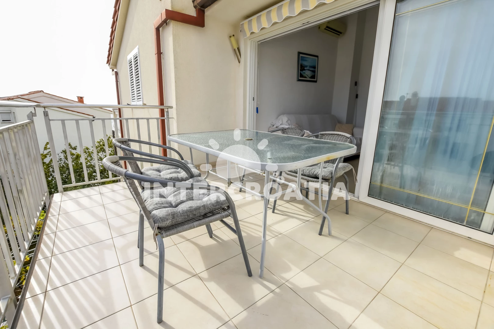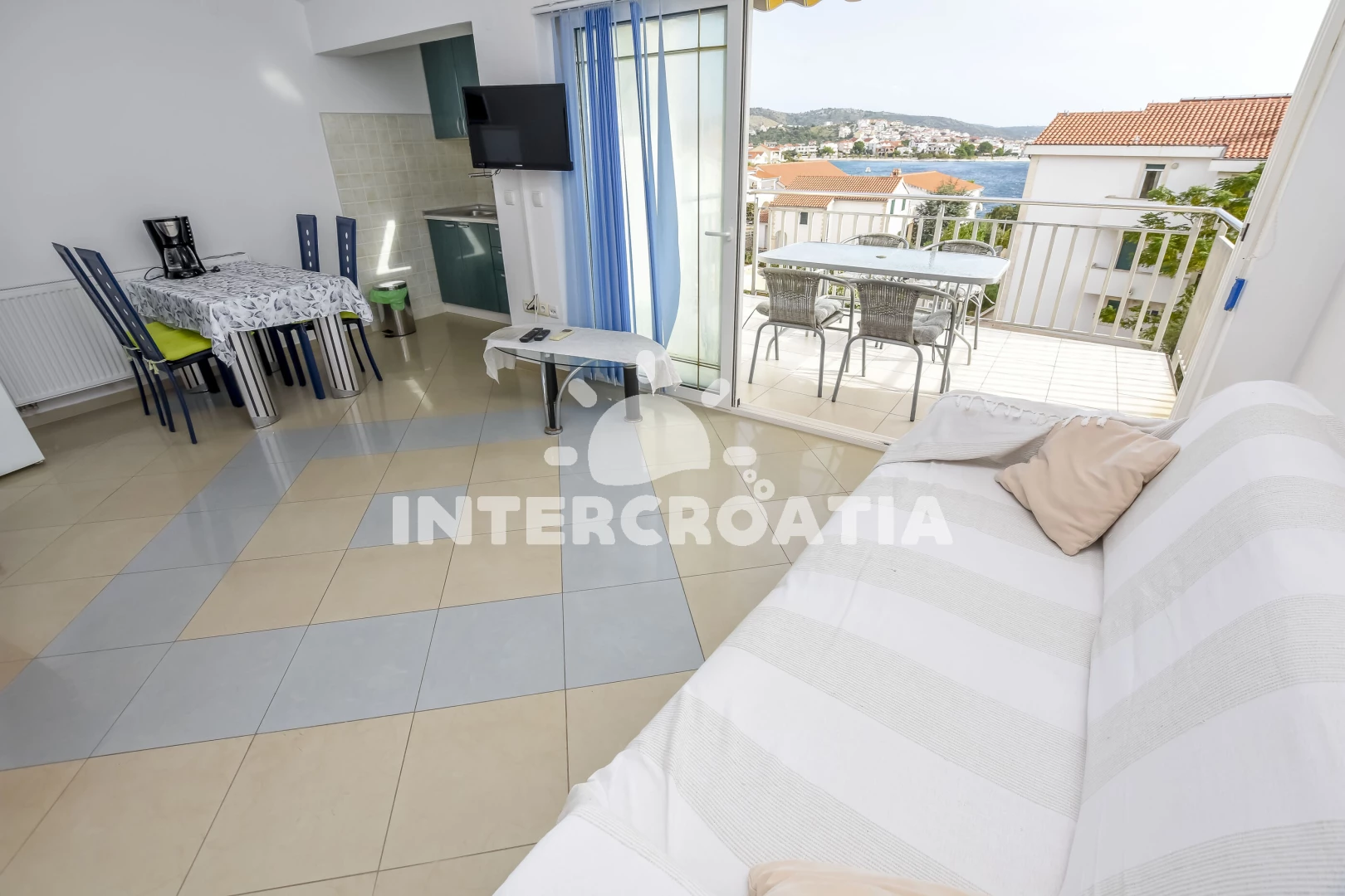 Vzdálenosti: Moře 50 m, pláž 50 m (skalnatá, oblázková a betonové desky), bar 300 m, restaurace 300 m, centrum 2 km, supermarket 2 km, lékárna 2 km, marina 2 km, ambulance 2,5 km, pošta 2,5 km, veřejná doprava 3 km, směnárna 9 km, čerpací stanice 9 km, banka 9 km, letiště 30 km, trajekt 40 km,