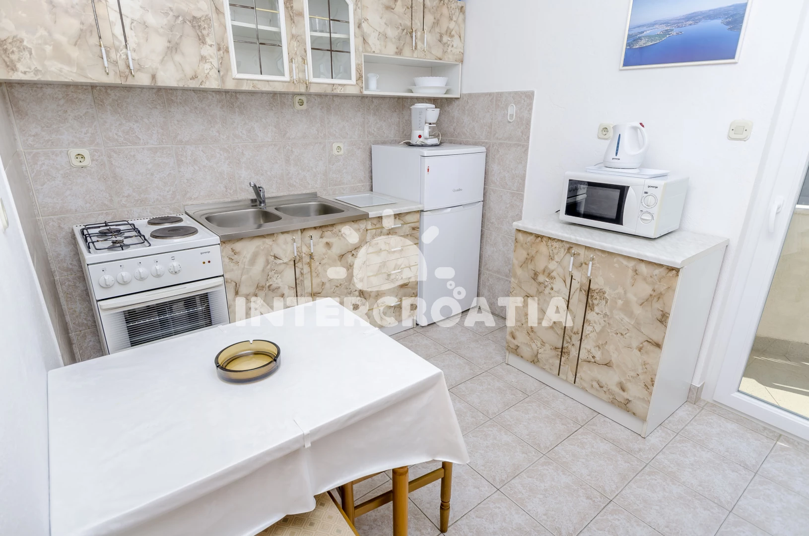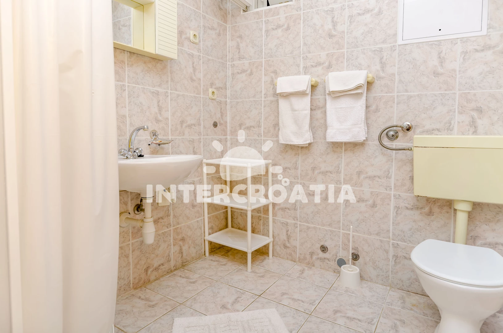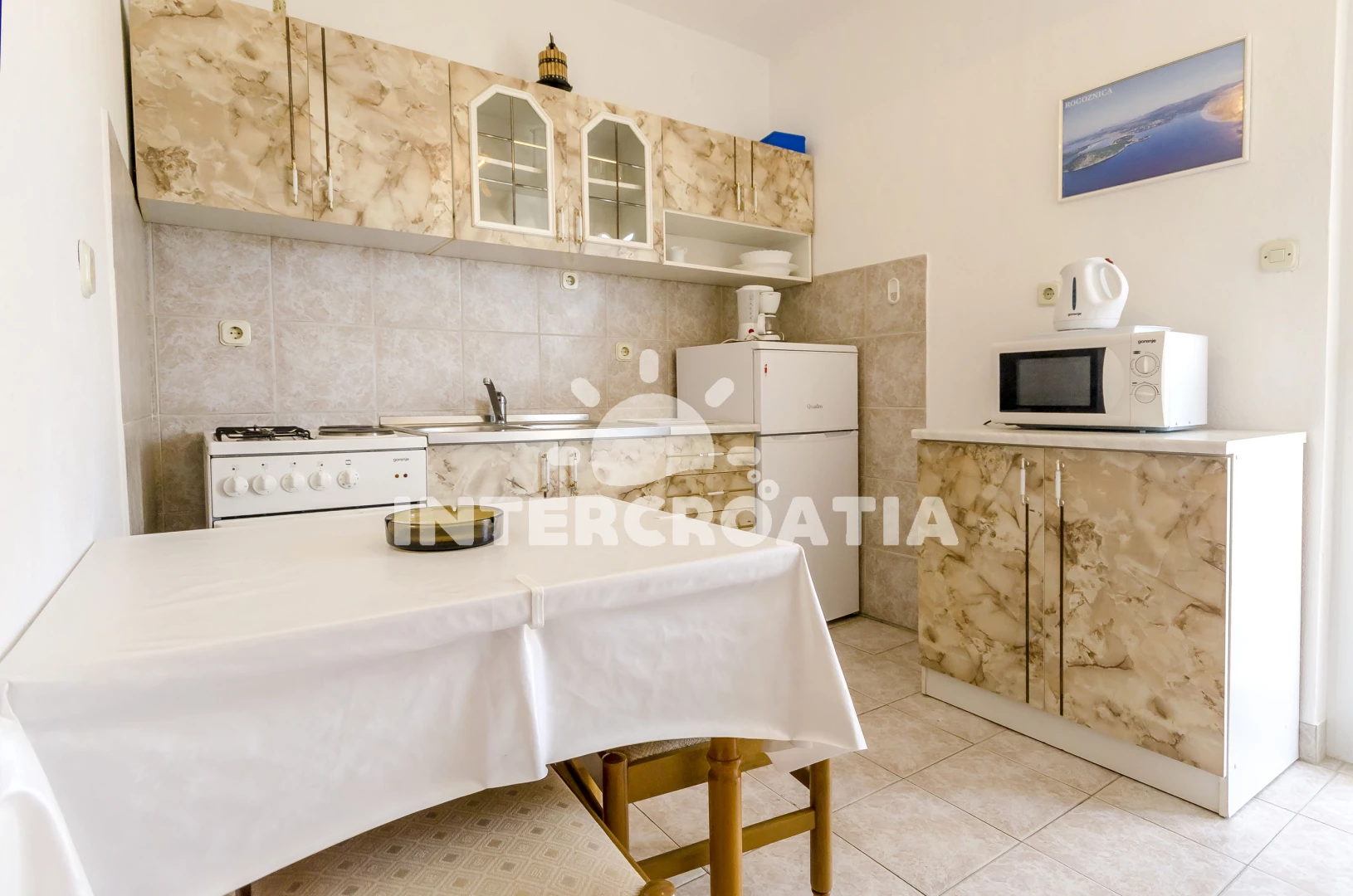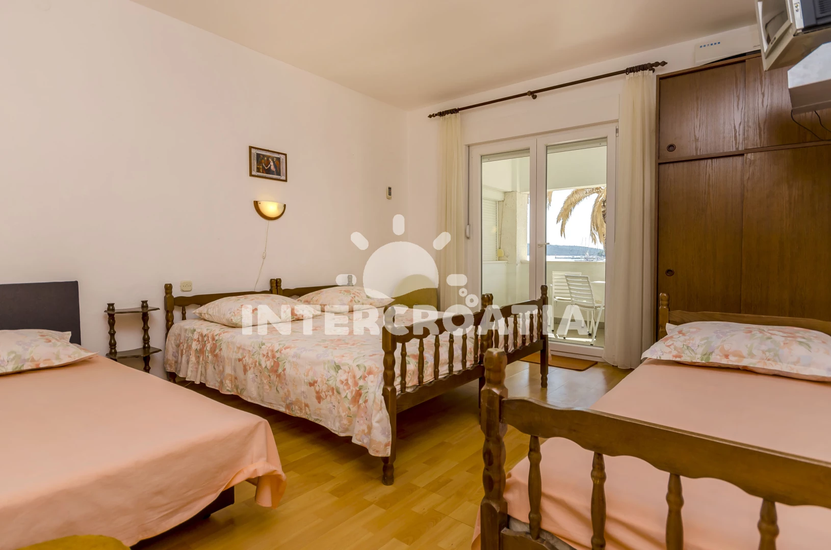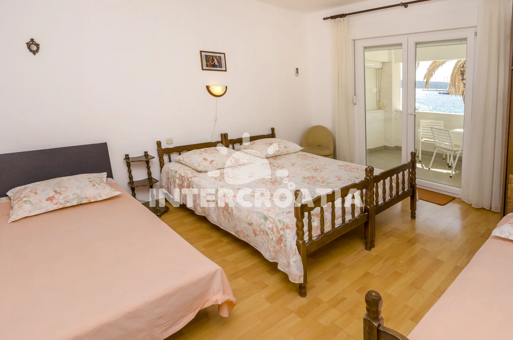 Vzdálenosti: Moře 20 m, pláž 50 m (oblázky), restaurace 50 m, centrum 100 m, banka 100 m, bar 100 m, směnárna 100 m, půjčovna kol 100 m, lékárna 150 m, supermarket 200 m, marina 200 m, ambulance 400 m, pošta 400 m, veřejná doprava 1,5 km, čerpací stanice 7 km, muzeum 25 km, letiště (Split) 30 km, trajekt (Šibenik) 35 km,