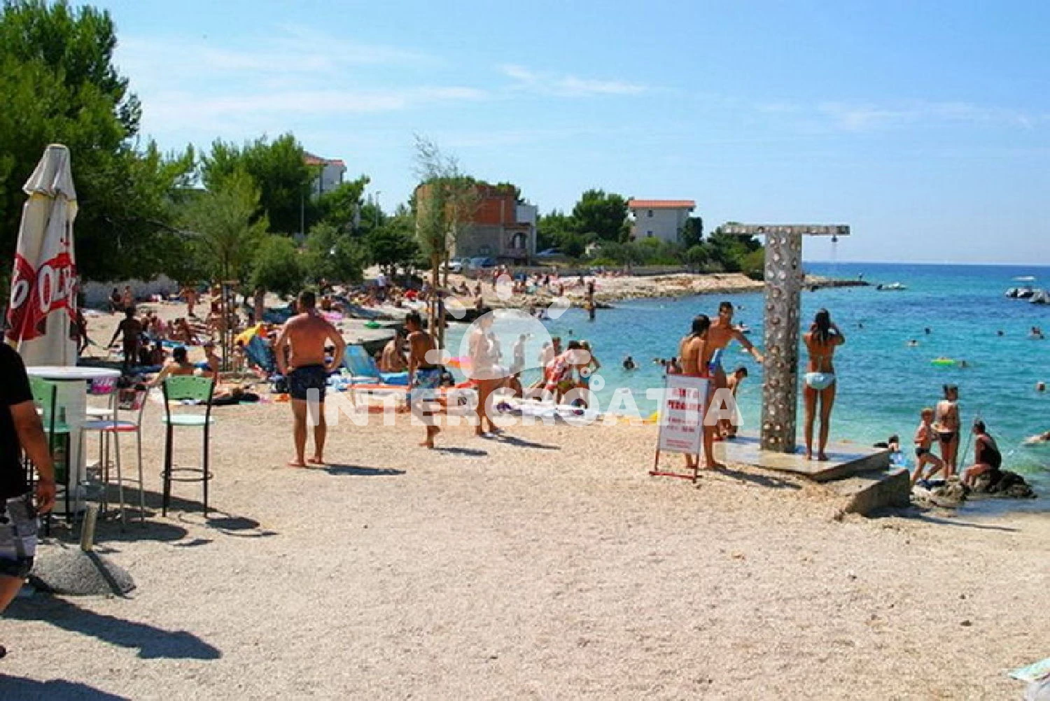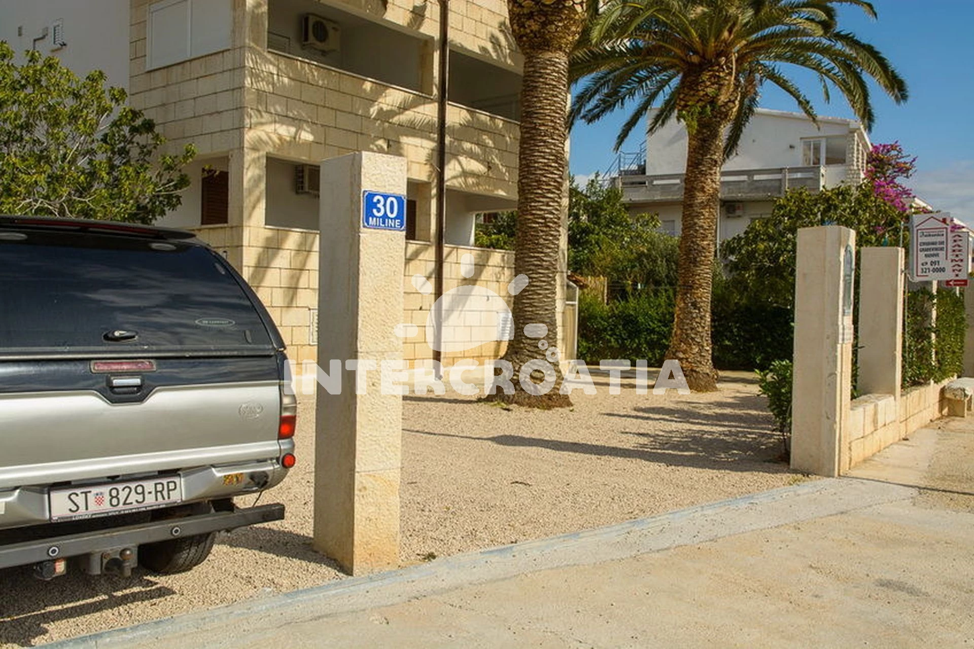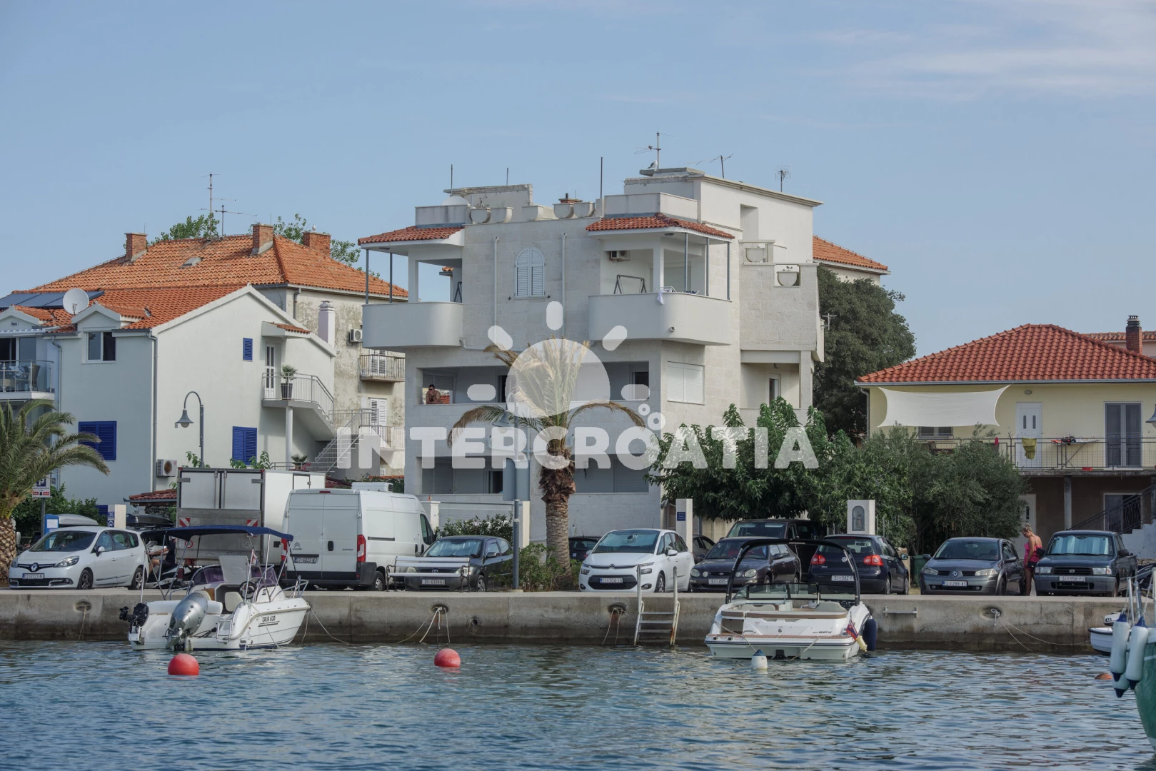 Vzdálenosti: Moře 20 m, pláž 50 m (oblázky), restaurace 50 m, centrum 100 m, banka 100 m, bar 100 m, směnárna 100 m, půjčovna kol 100 m, lékárna 150 m, supermarket 200 m, marina 200 m, ambulance 400 m, pošta 400 m, veřejná doprava 1,5 km, čerpací stanice 7 km, muzeum 25 km, letiště (Split) 30 km, trajekt (Šibenik) 35 km,