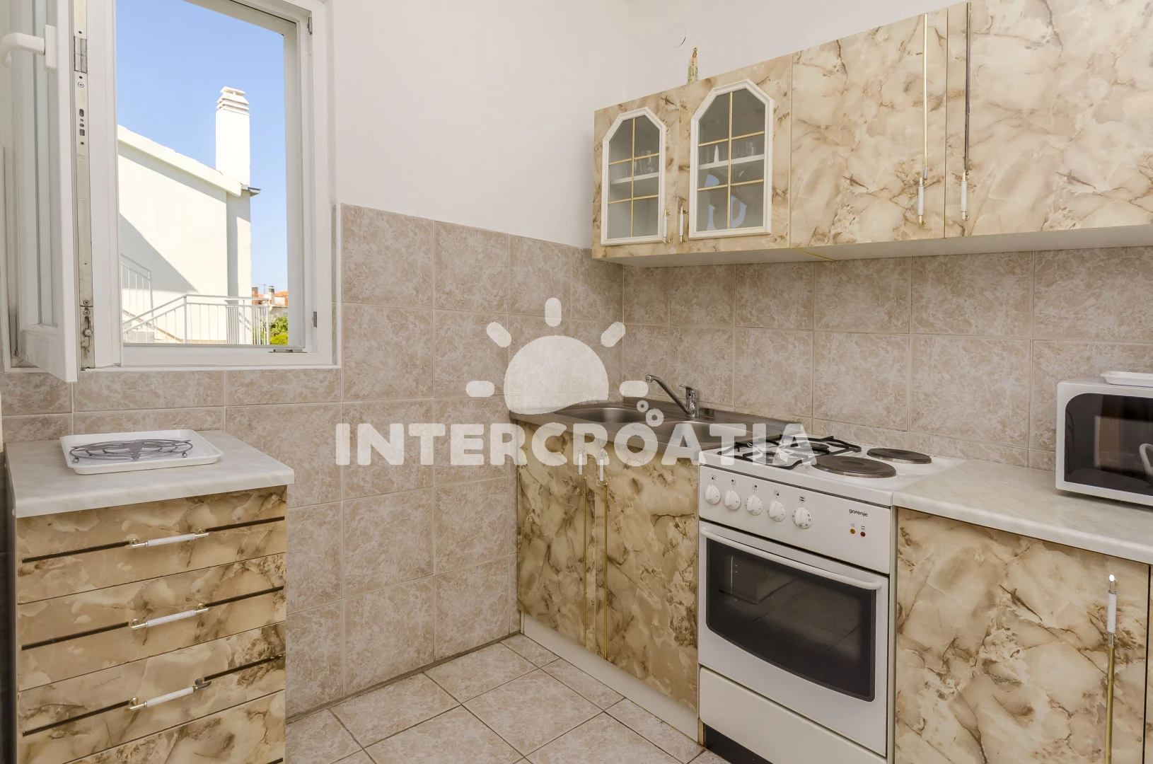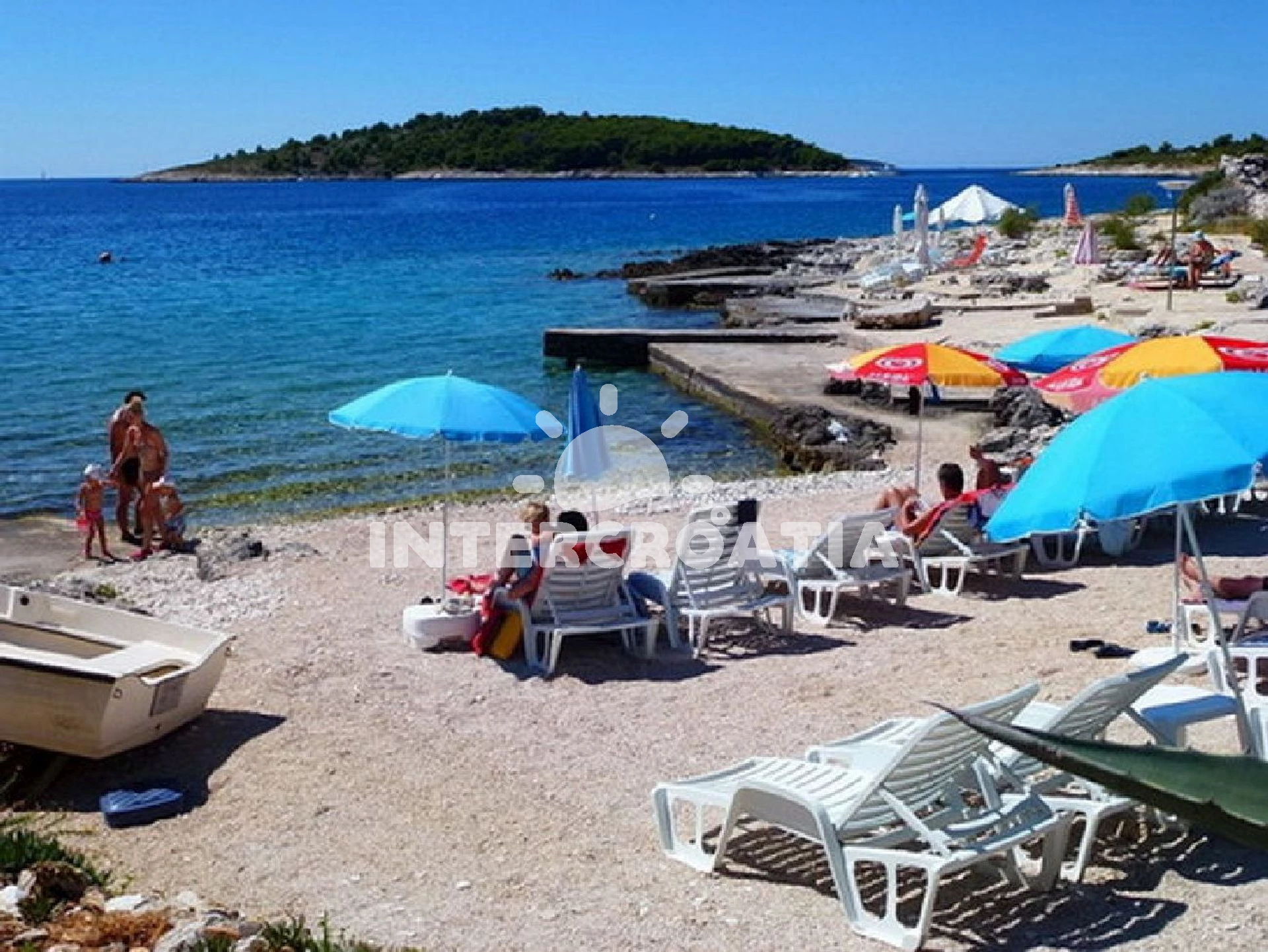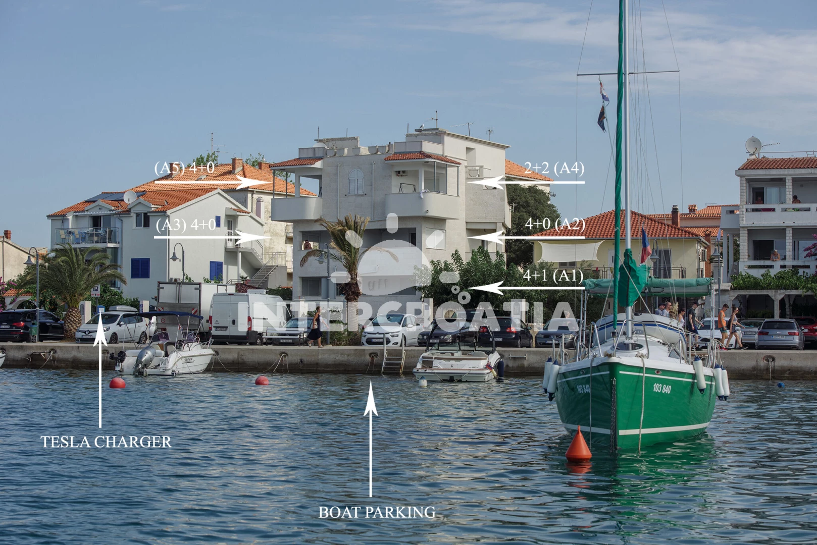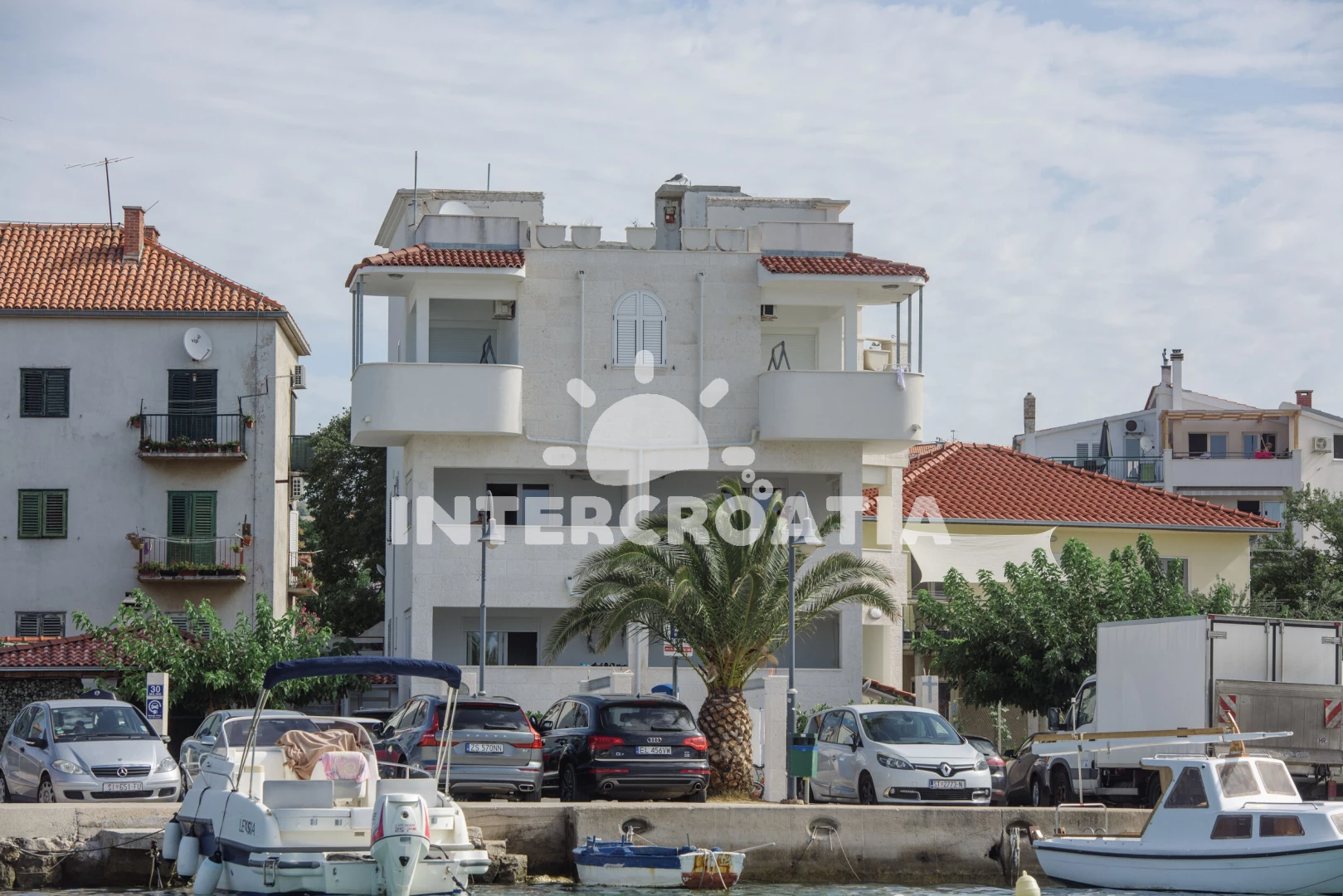 Vzdálenosti: Moře 20 m, pláž 50 m (oblázky), restaurace 50 m, centrum 100 m, banka 100 m, bar 100 m, směnárna 100 m, půjčovna kol 100 m, lékárna 150 m, supermarket 200 m, marina 200 m, ambulance 400 m, pošta 400 m, veřejná doprava 1,5 km, čerpací stanice 7 km, muzeum 25 km, letiště (Split) 30 km, trajekt (Šibenik) 35 km,