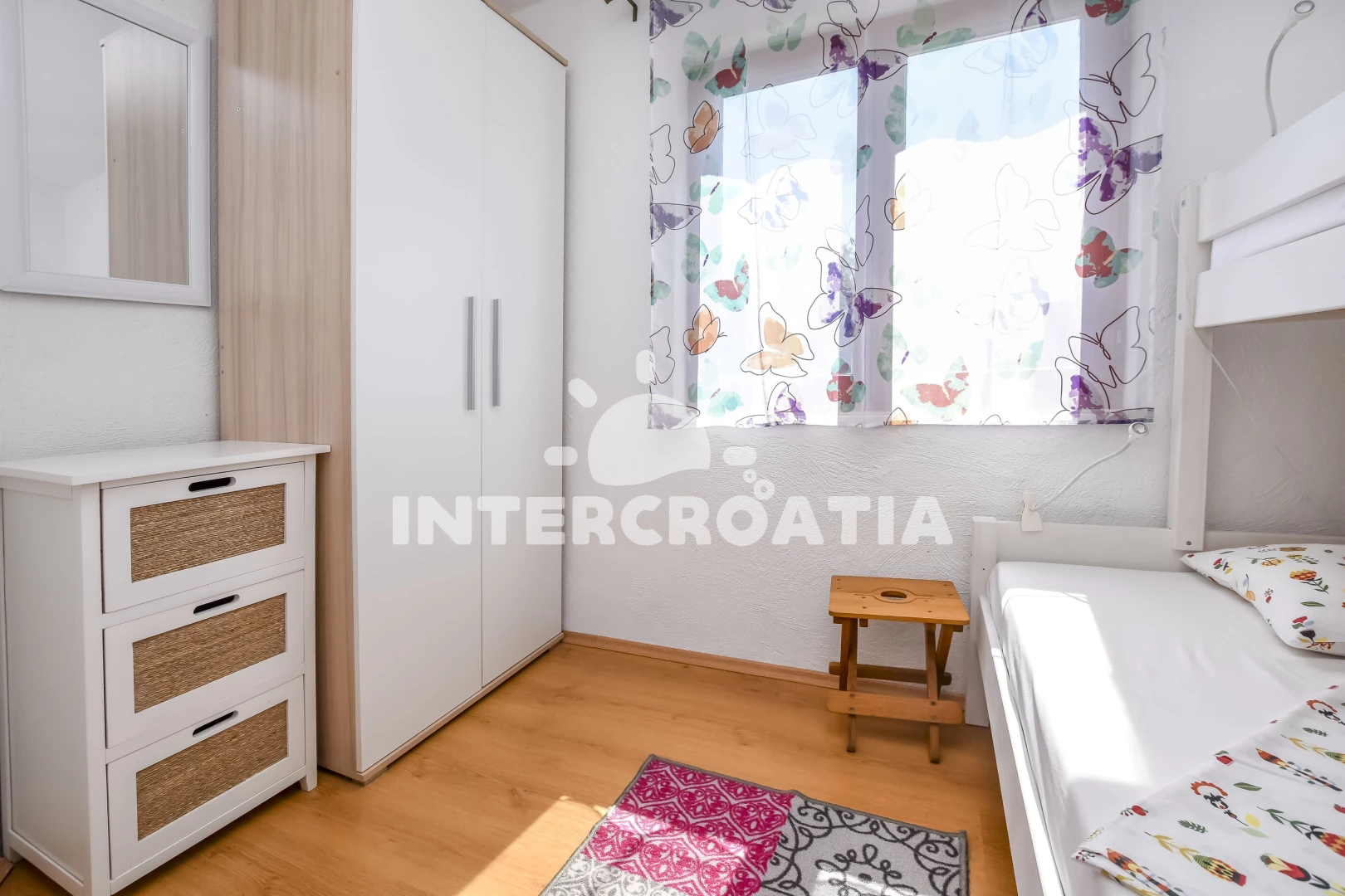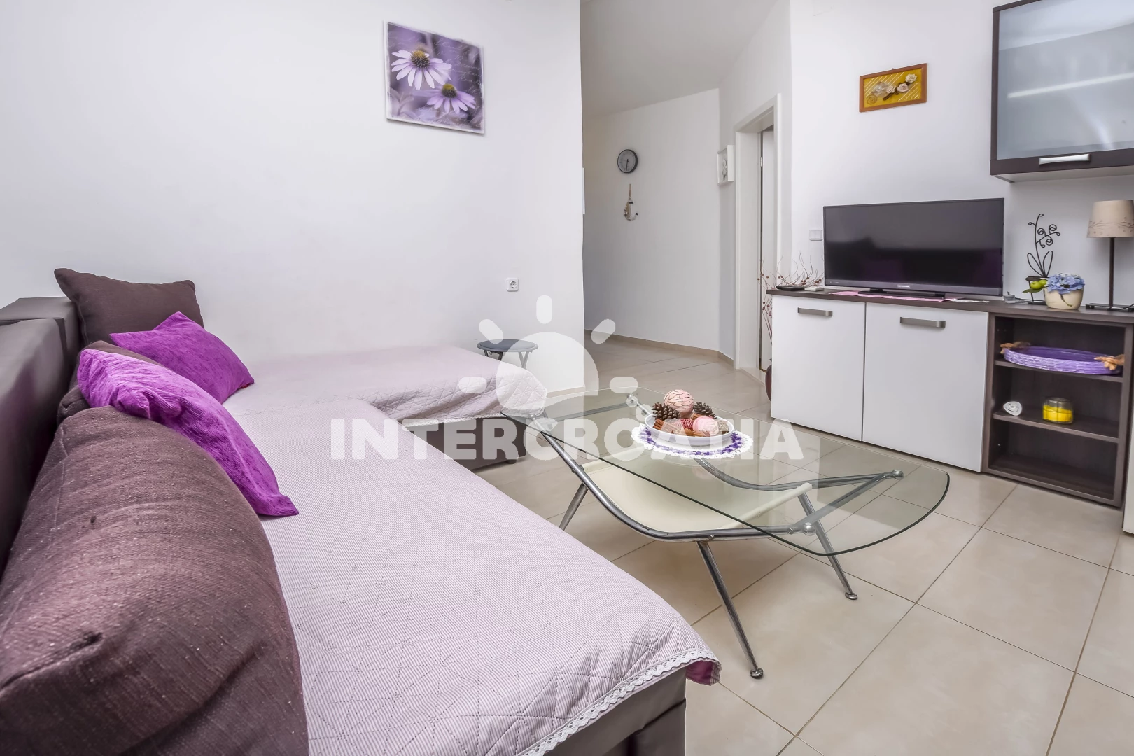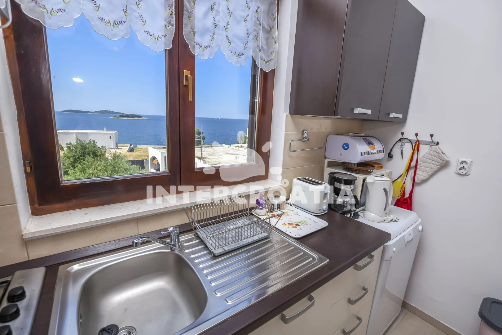 Vzdálenosti: Moře 130 m, pláž 130 m (kamenné a betonové desky), bar 250 m, marina 1,5 km, lékárna 1,8 km, restaurace 2 km, centrum 2 km, supermarket 2 km, směnárna 2 km, pošta 2 km, ambulance 2,5 km, veřejná doprava 3 km, diskotéka 7 km, čerpací stanice 7 km,