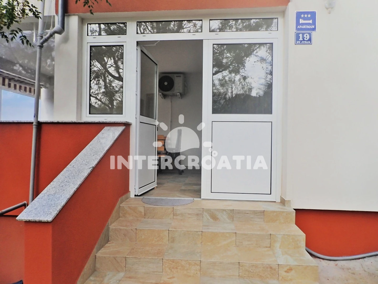 Apartmán se nachází 400 m od moře a pláže. Pláž je oblázková a betonové desky. U objektu je k dispozici společná zahrada s posezením a grilem. Parkování je před domem.