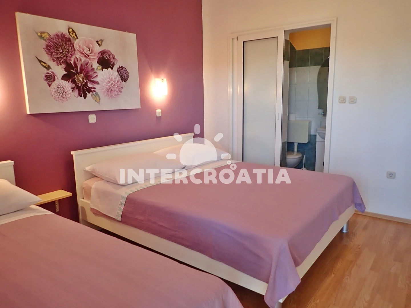 Vzdálenosti: Moře 250 m, pláž 400 m (oblázková a betonové desky), restaurace 340 m, supermarket 350 m, veřejná doprava 350 m, centrum 800 m, bar 800 m, půjčovna motorových člunů 3 km, pošta 5 km, ambulance 5 km, diskotéka 5 km, lékárna 5 km, čerpací stanice 6 km, směnárna 10 km, tenisové kurty 12 km, park Plitvice 12 km, letiště (Zadar) 25 km, potápění 33 km, banka 33 km, muzeum 33 km, trajekt (Zadar) 45 km,