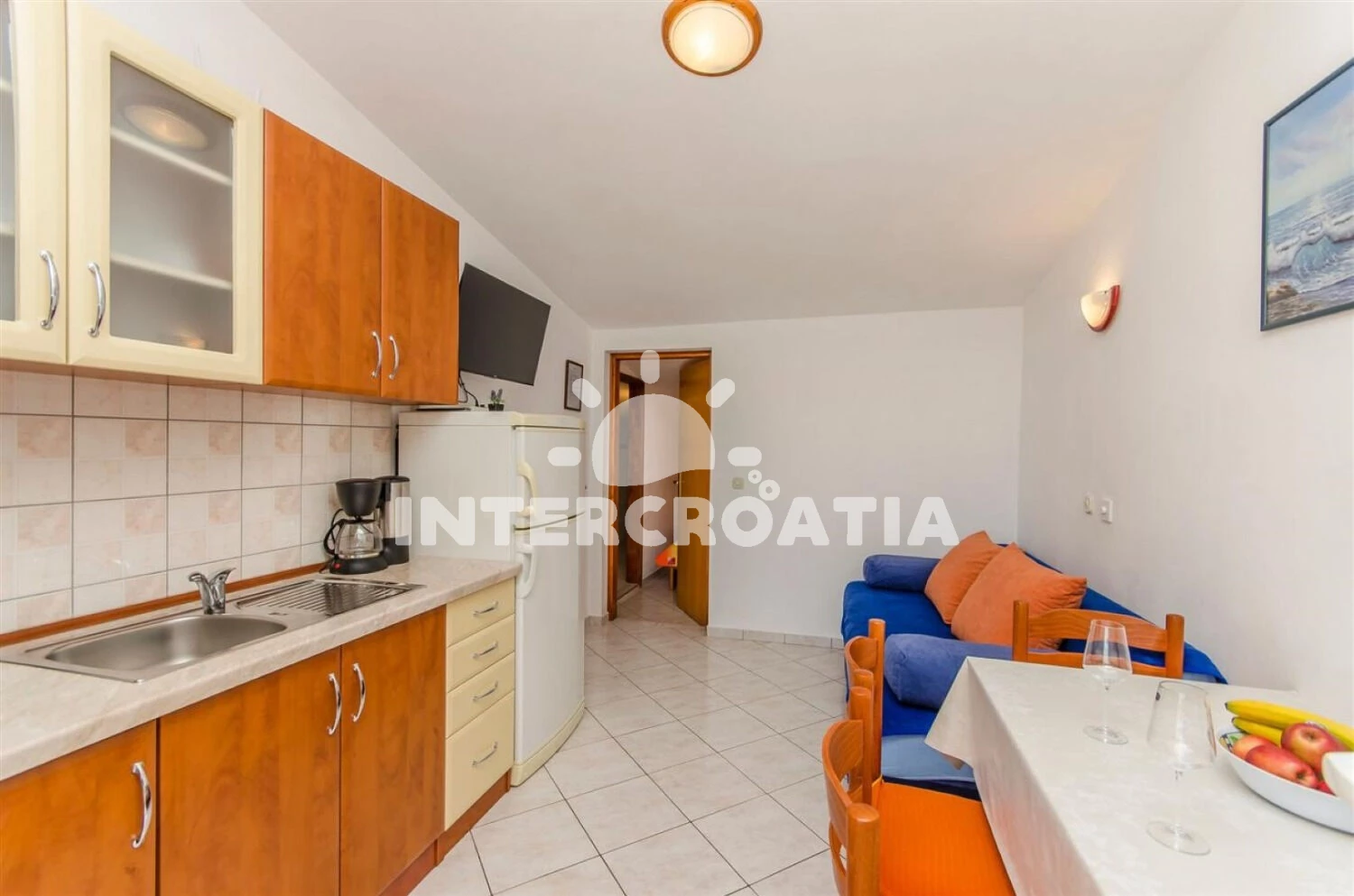 Apartmán (32 m2) s terasou, a výhledem na moře. Nachází se v 1. patře objektu. Apartmán má 1 ložnici a je vhodný pro až 2 osoby. Kuchyňská linka je vybavena varnou deskou, troubou, rychlovarnou…