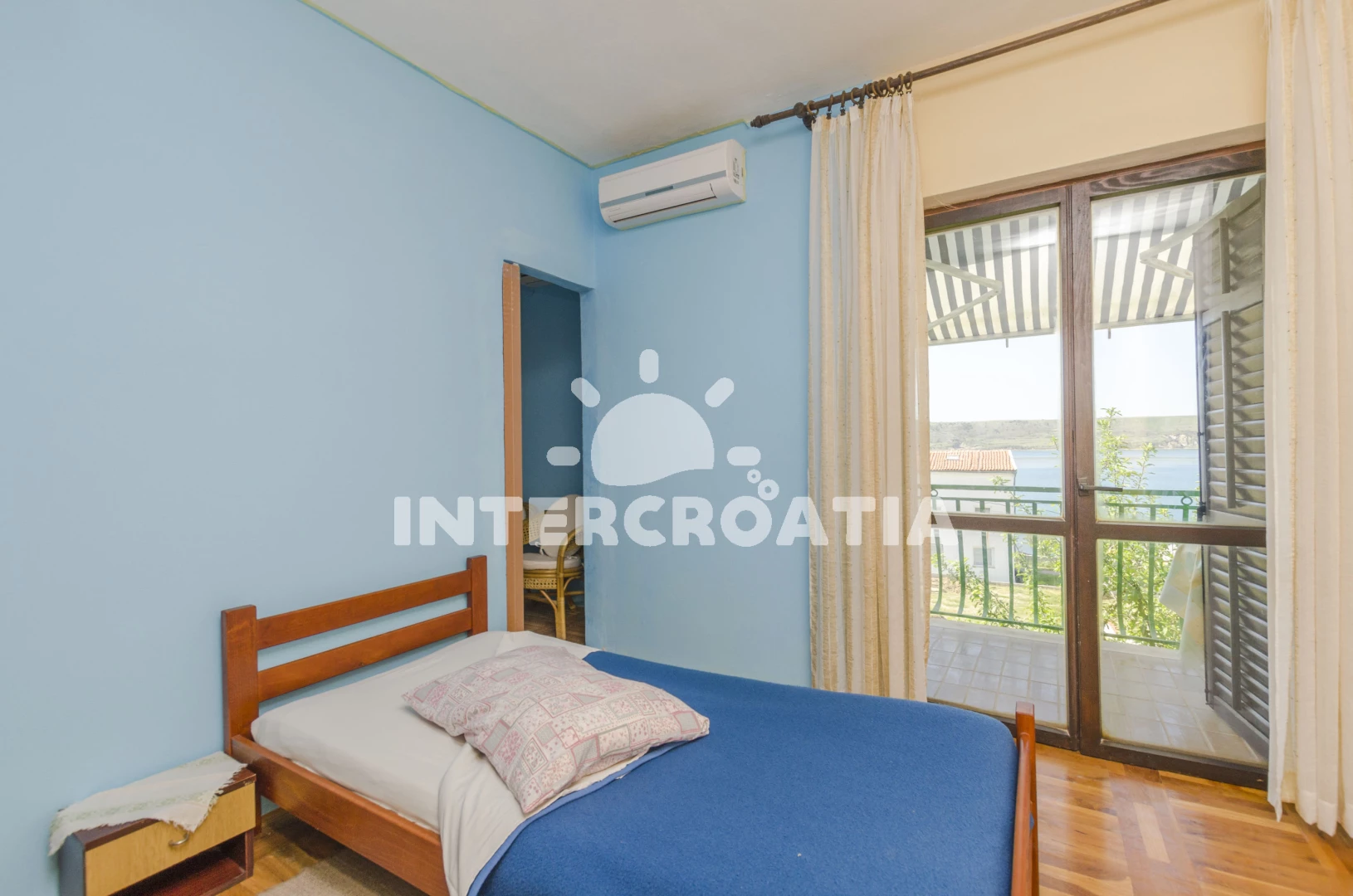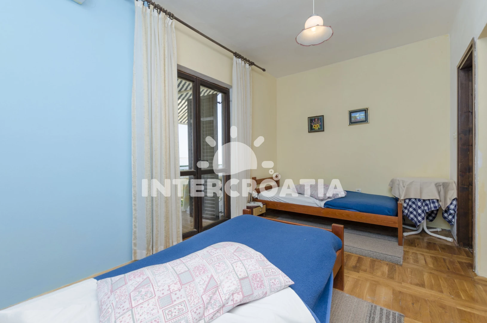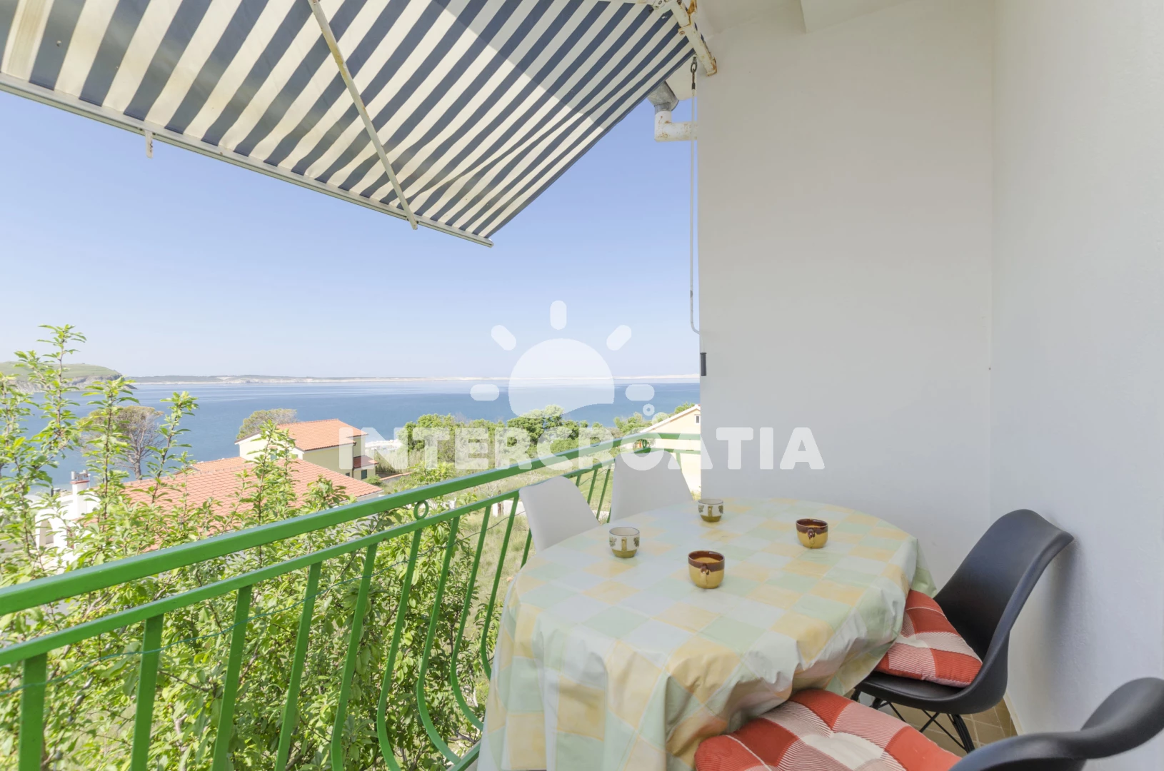 Apartmán (40 m2) s balkonem, posezením a výhledem na moře se nachází v 1. patře domu. Apartmán má 2 místnosti, 2 koupelny a je vhodný pro až 4 osoby. Kuchyňská linka je vybavena dvouplotýnkovým vařičem, rychlovarnou konvicí, mikrovlnnou troubou, nádobím a lednicí s mrazákem. První místnost se dvěma jednolůžky, klimatizací a vstupem na balkon. Druhá místnost s dvoulůžkem a vstupem na balkon. První i druhá koupelna se sprchovým koutem, umyvadlem a wc. Hostům je k dispozici parkování u objektu zdarma.