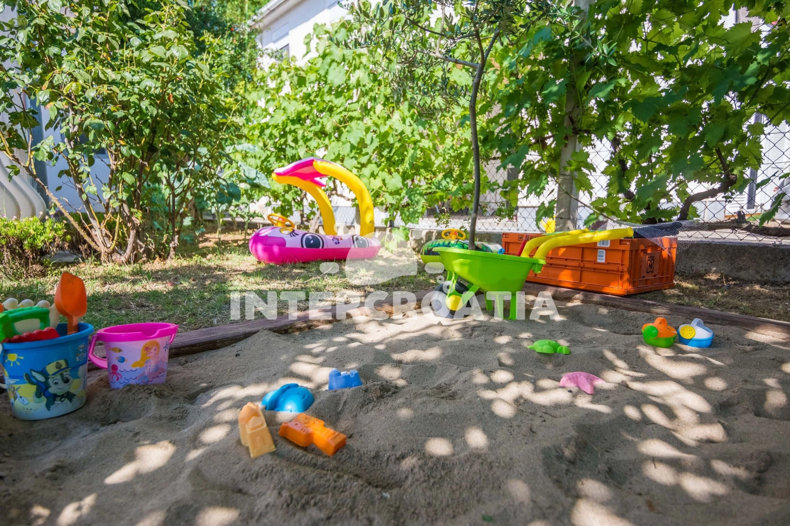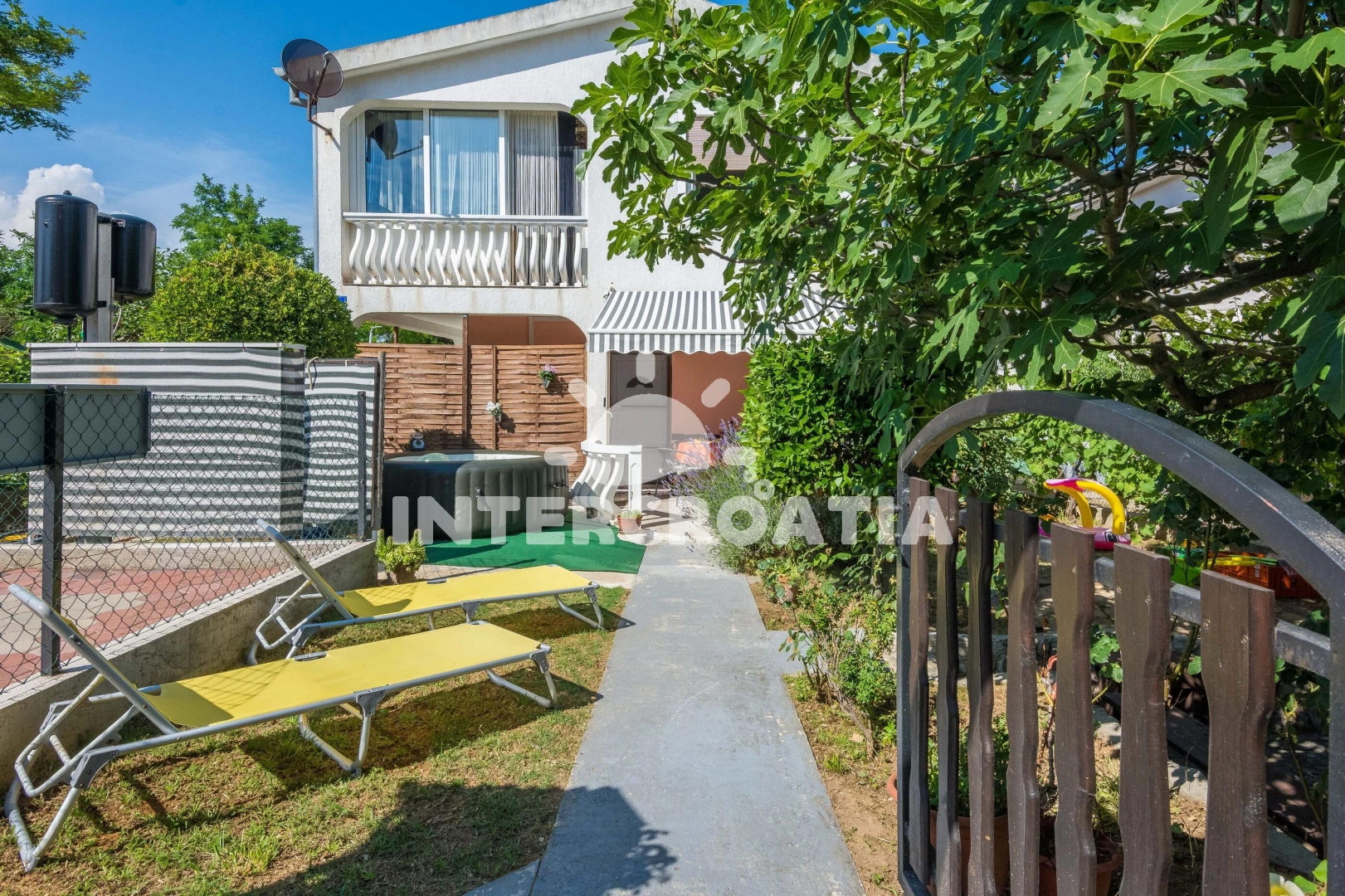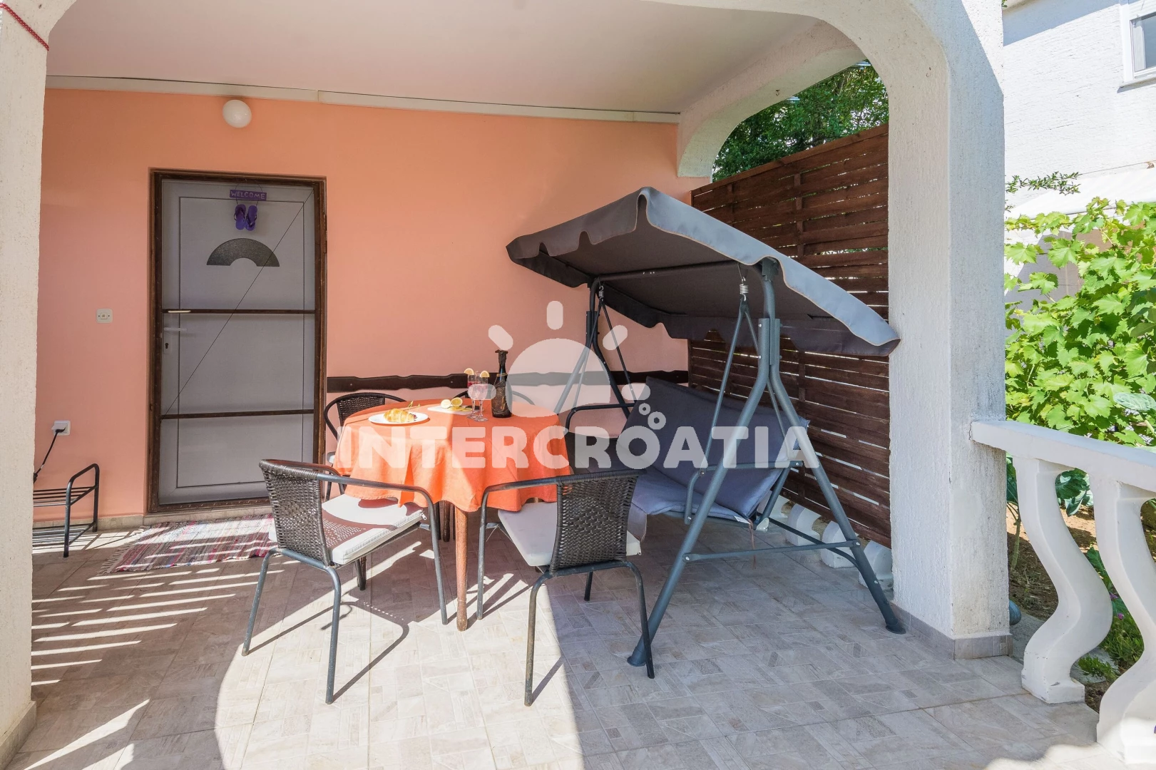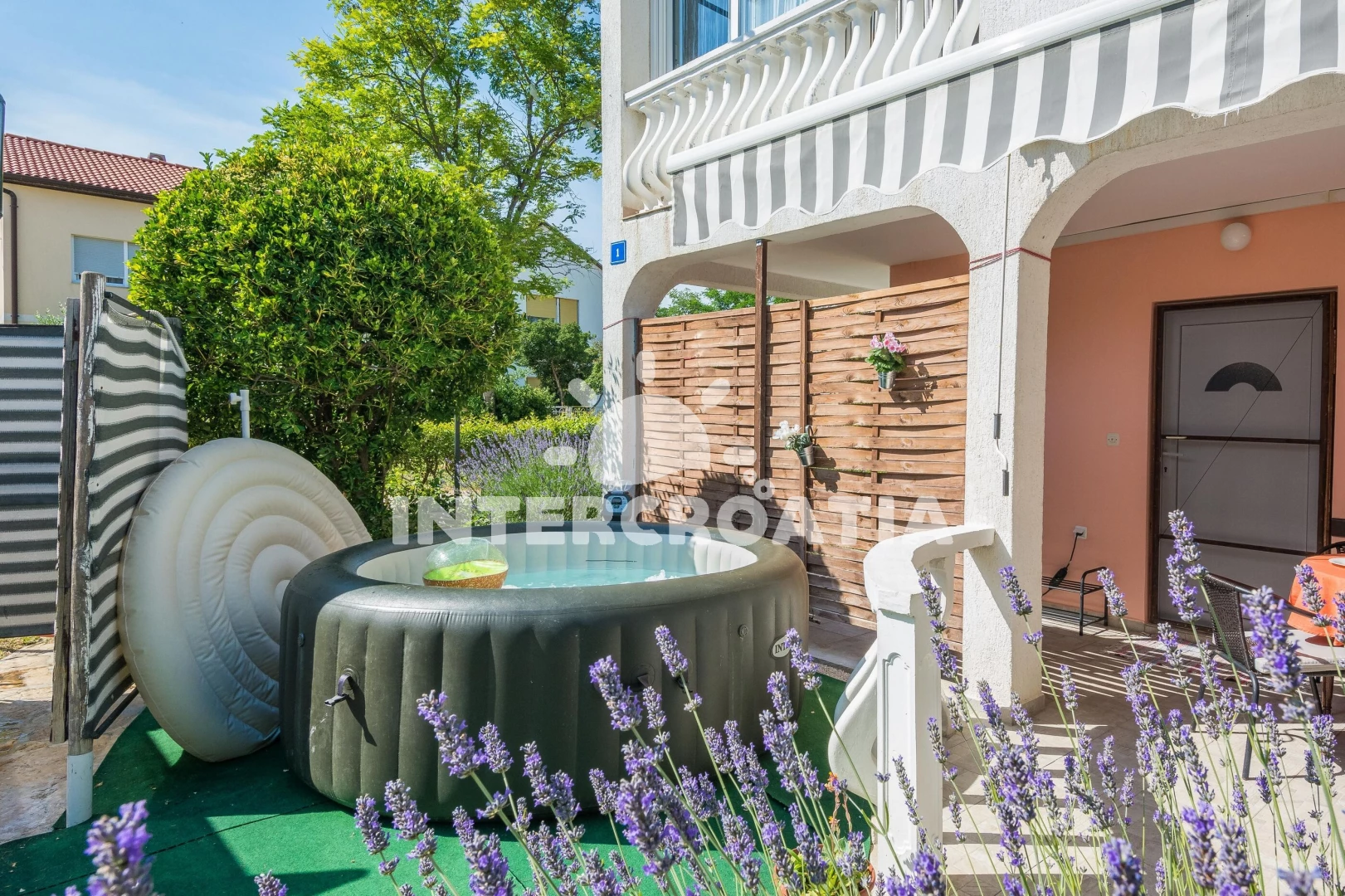 Dům v klidné lokalitě se nachází do 300 m pěší chůzí od moře a písečné pláže. Dům nabízí ubytování v klimatizovaném apartmánu s lodžiií a venkovním posezením. U domu je k dispozici zahrada s terasou, posezením, vířivkou, grilem a dětským hřištěm. Parkovací místa pro automobily u domu.