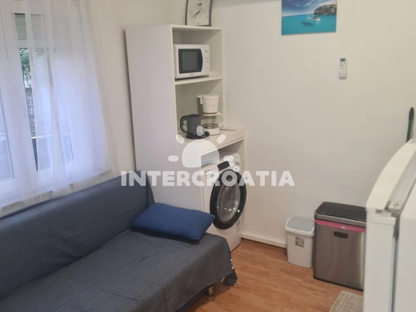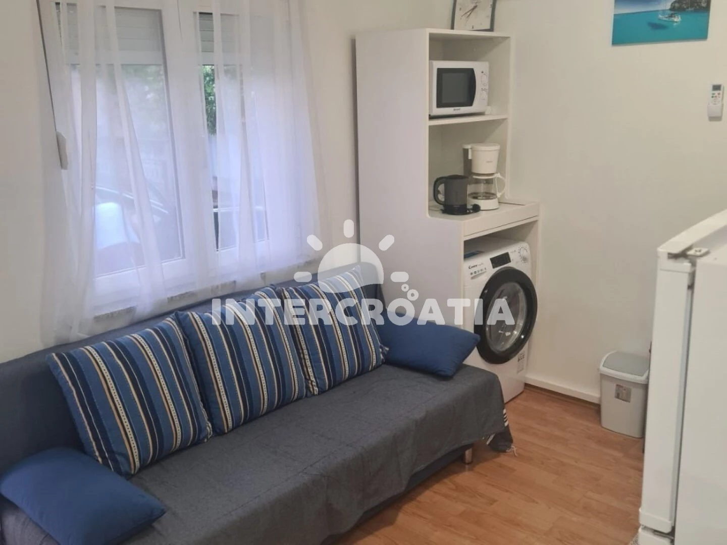 Vzdálenosti: Moře 40 m, pláž 40 m (oblázková a betonové desky), restaurace 500 m, veřejná doprava 500 m, centrum 600 m, ambulance 900 m, supermarket 950 m, park Plitvice 2 km, letiště 42 km,