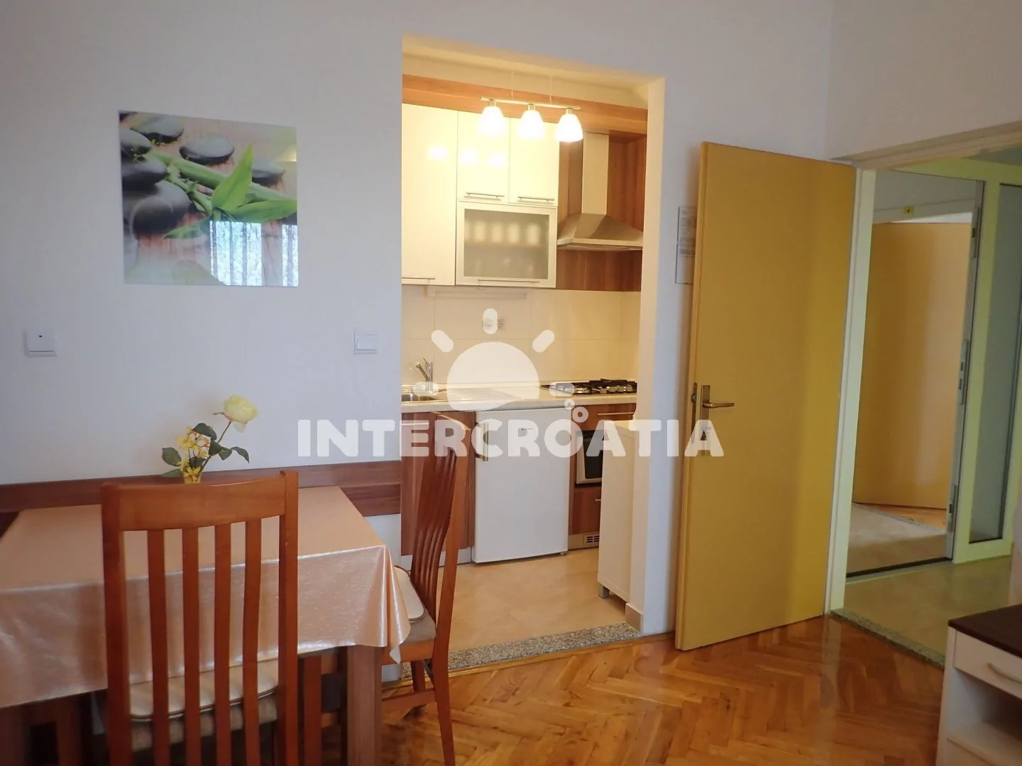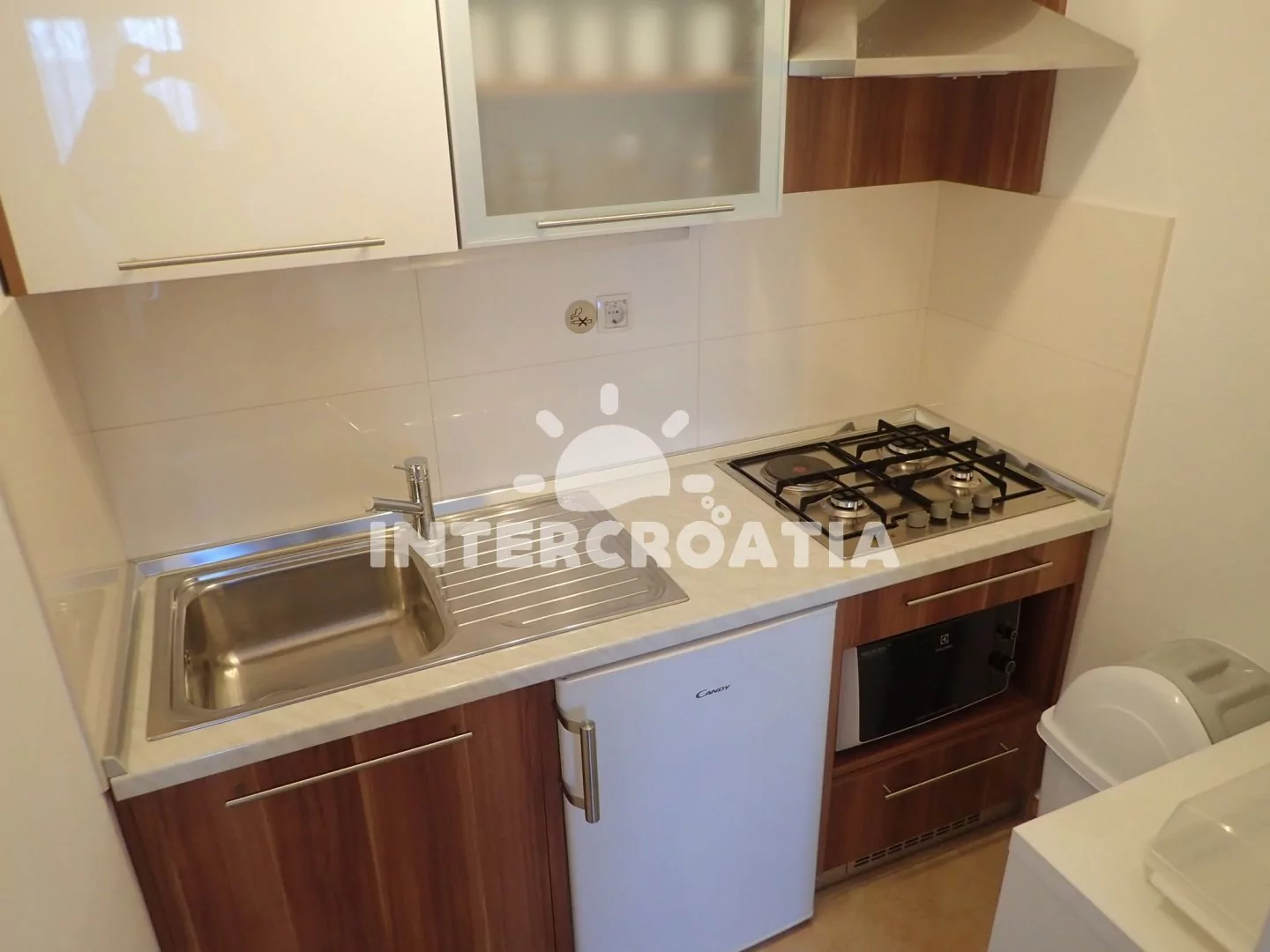 Apartmán v přízemí vily je vhodný pro 2 až 3 osoby. Obývací místnost je spojena s kuchyní. Kuchyňská linka je vybavena sporákem, digestoří, mikrovlnnou troubou, rychlovarnou konvicí, nádobím a…