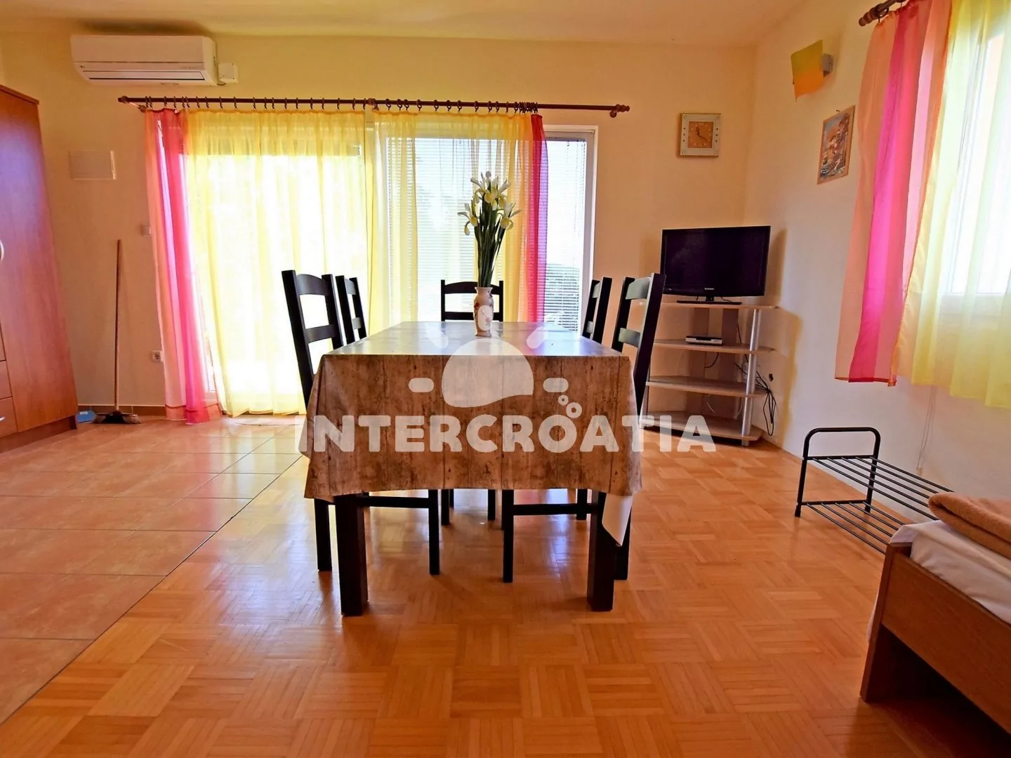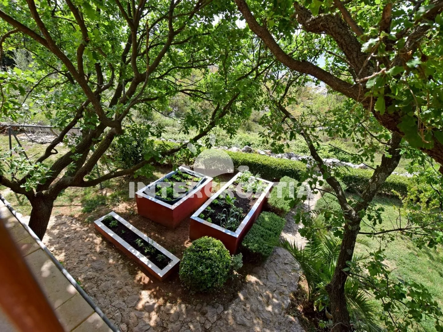 Samostatně stojící vilka se třemi apartmány a velkou zahradou. Nachází se v klidném prostředí a kousek od moře. Zahrada nabízí dostatek zeleně, venkovní posezení na terase a zděný gril. Parkování pro automobily na pozemku objektu.