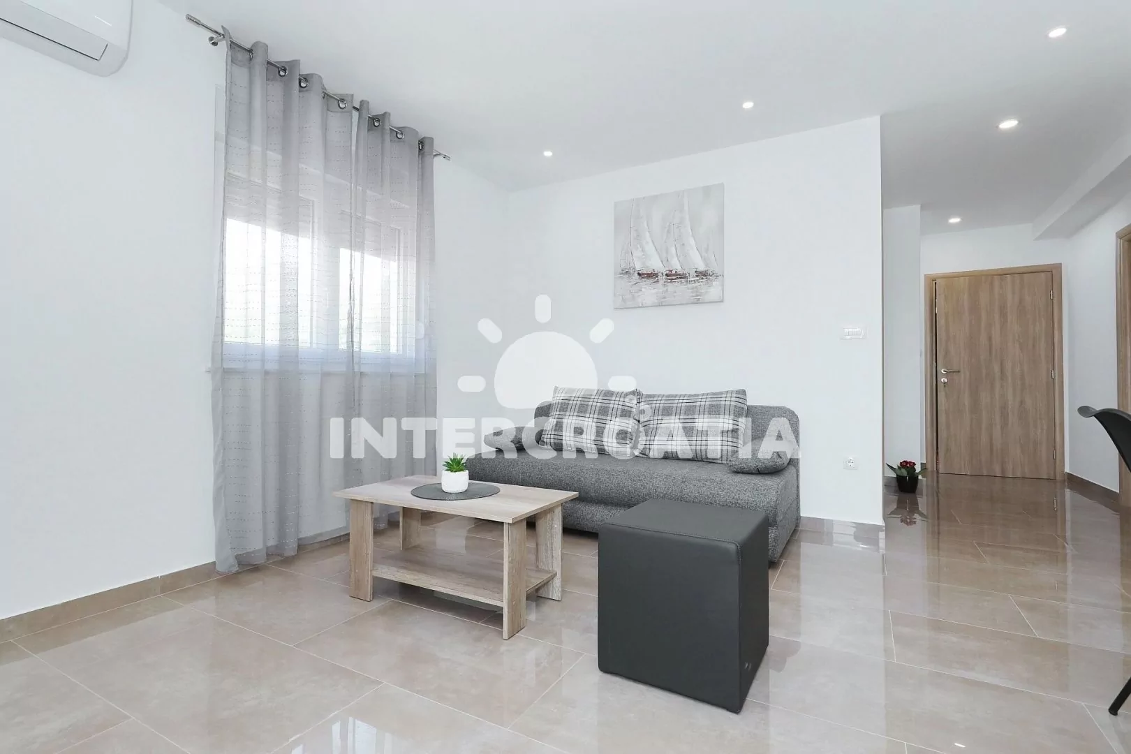 Vzdálenosti: Moře a oblázková-kamenitá pláž 200 m, centrum 600 m, půjčovna motorových člunů, restaurace 200 m, supermarket, veřejná doprava, bar 600 m, diskotéka 800 m, čerpací stanice 1 km, lékárna, tenis, minigolf 1,5 km, půjčovna cyklistických kol, směnárna, pošta, ambulance 2 km, letiště, trajekt 40 km.