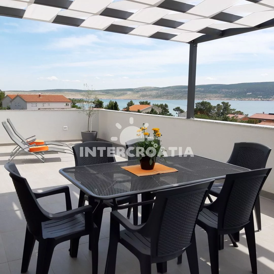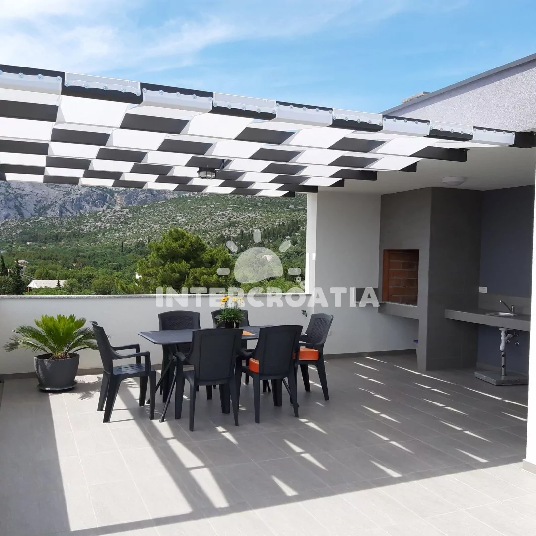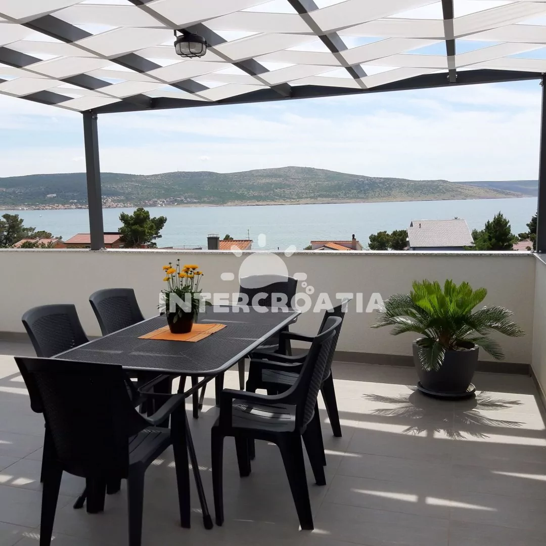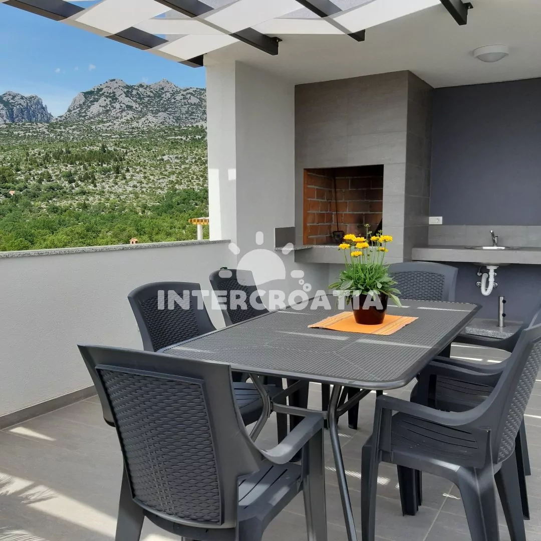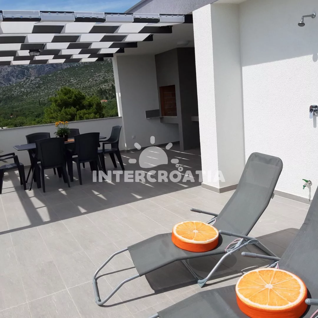 Moderně vystavěná apartmánová vila s venkovním bazénem, lehátky a výhledem na moře. Vila disponuje vlastním pozemkem s terasou, posezením a grilem. Parkovací místa u objektu.