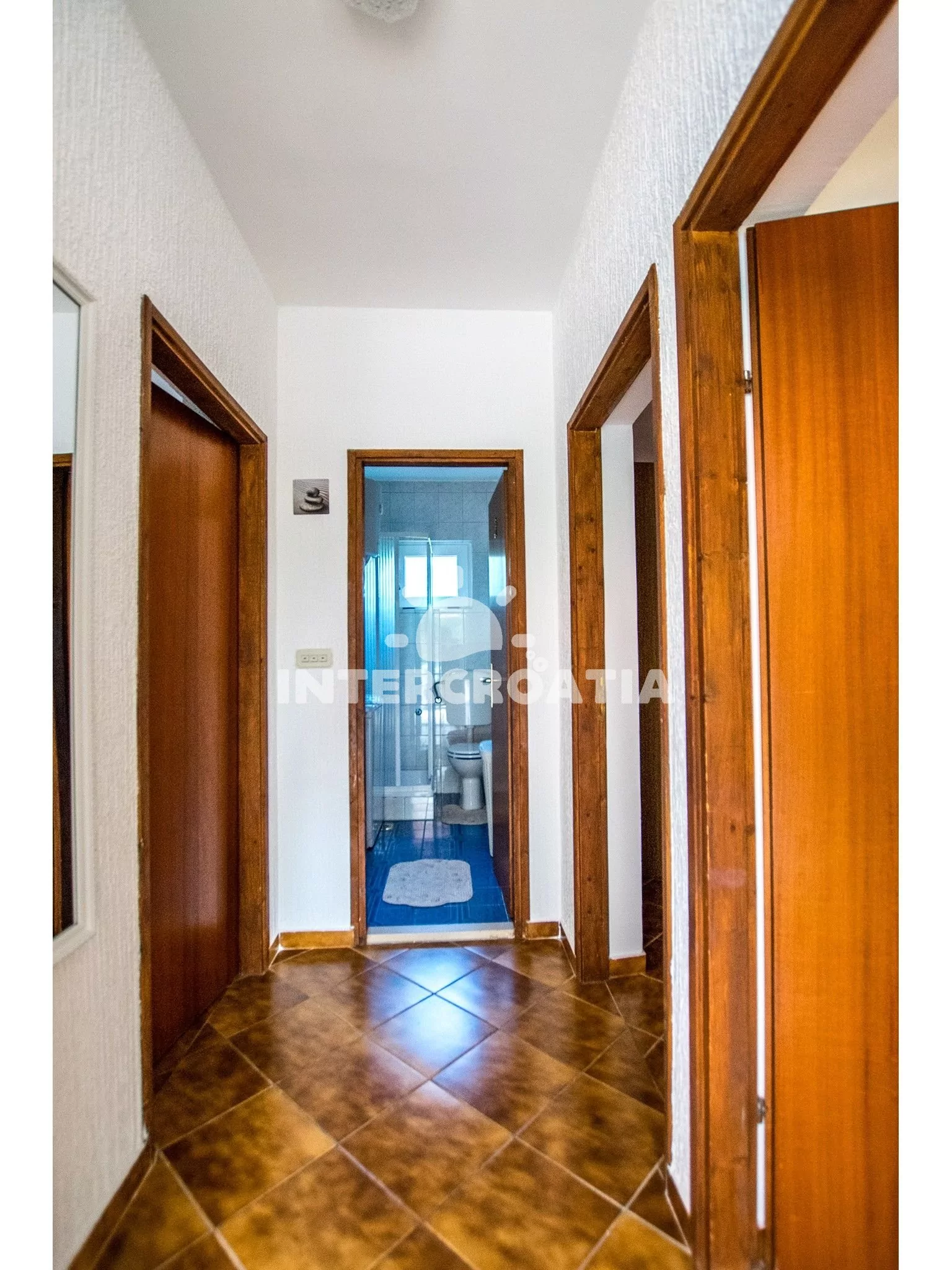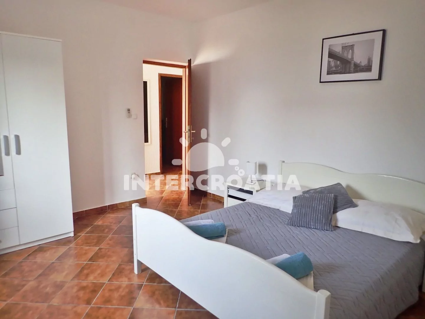 Apartmán (80 m2) s vlastní terasou a posezením se nachází v přízemí vily a je vhodný pro až 5 osob. Obývací pokoj je spojený s kuchyní. Kuchyňská linka je vybavena sklokeramickou varnou deskou, digestoří, vestavěnou troubou, myčkou na nádobí, rychlovarnou konvicí, toustovačem, nádobím a lednicí s mrazákem. Obývací pokoj s jídelním stolem pro 6 osob a pohovkou (rozložitelná na extra lůžko pro 1 osobu). První ložnice s dvoulůžkem, televizí se satelitním programem a klimatizací. Druhá ložnice s dvoulůžkem a klimatizací. Koupelna se sprchovým koutem, umyvadlem, pračkou a wc. Hostům je k dispozici parkování u objektu zdarma.